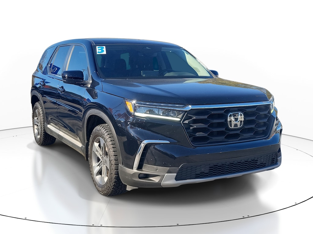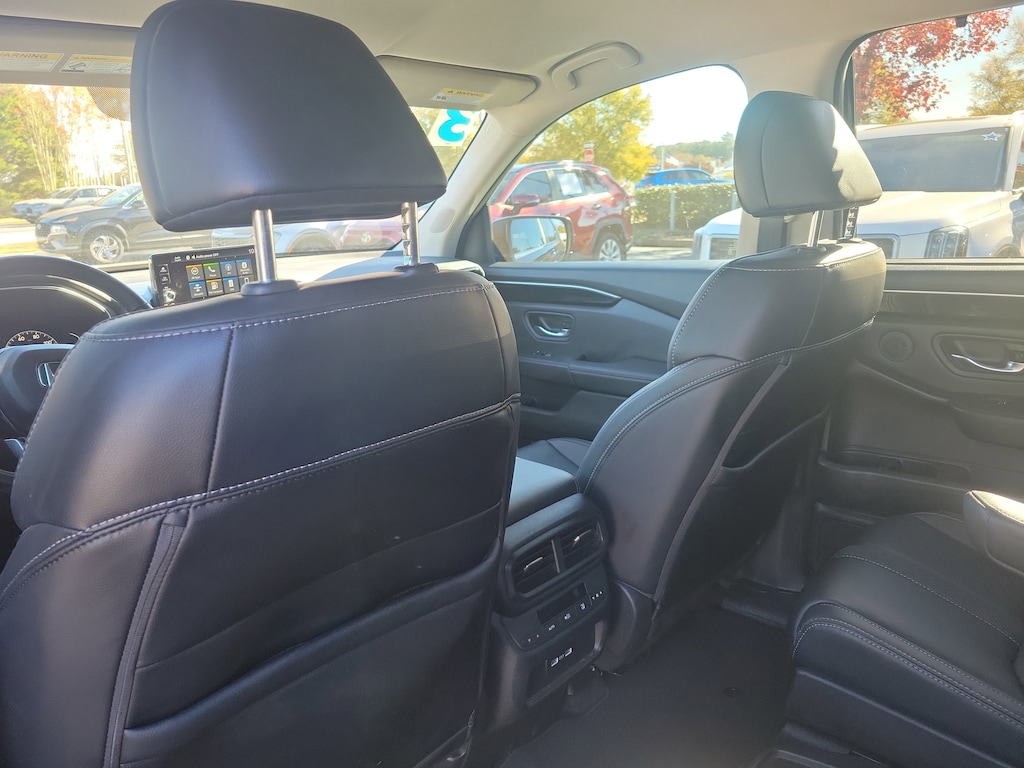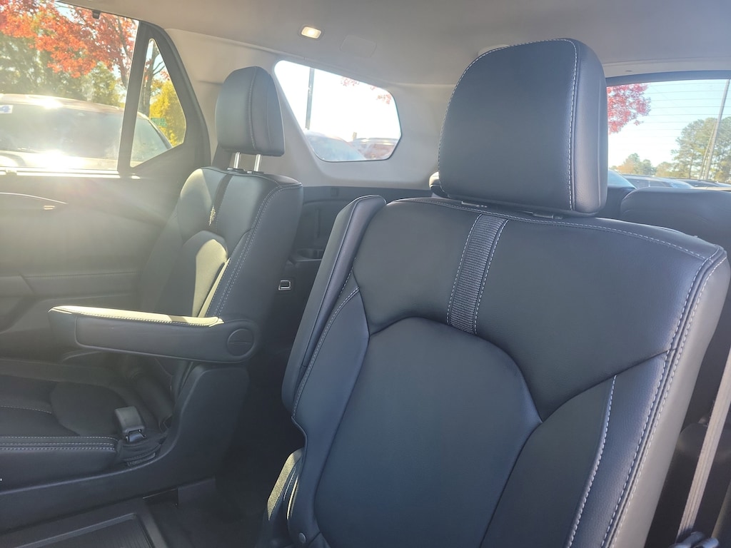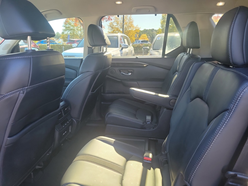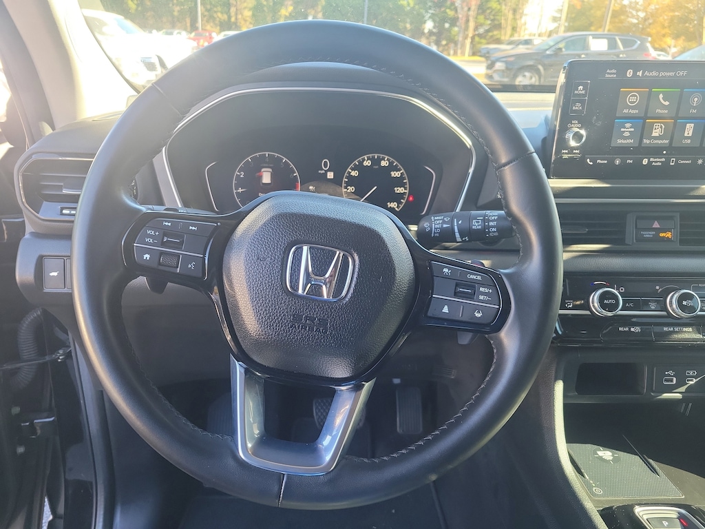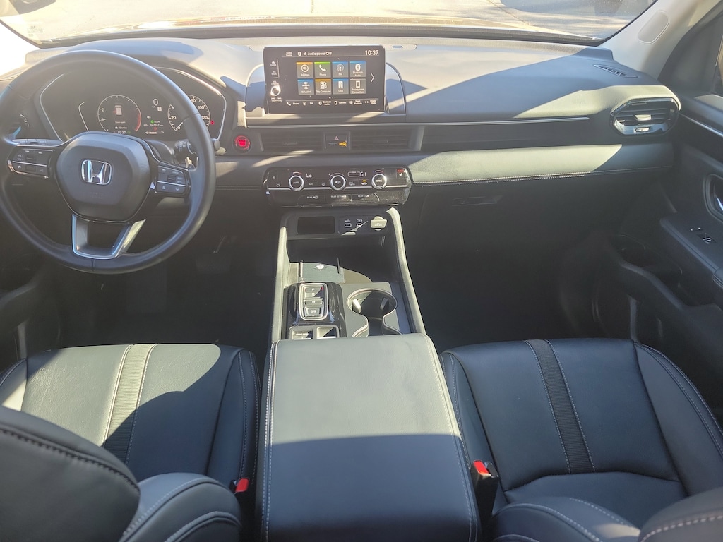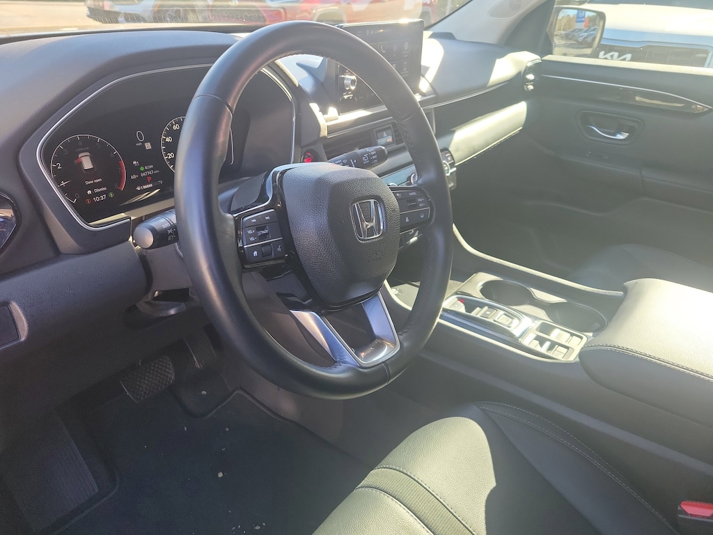 This Vehicle includes the following Options and Features 3rd row seats: split-bench, 4-Wheel Disc Brakes, 9 Speakers, ABS brakes, Adaptive Cruise Control: Adaptive Cruise Control (ACC) with Low-Speed Follow, Air Conditioning, Alloy wheels, AM/FM radio: SiriusXM, Apple CarPlay/Android Auto, Auto High-beam Headlights, Auto-dimming Rear-View mirror, Automatic temperature control, Axle Ratio: 4.167, Blind Spot Information (BSI) System warning, Brake assist, Bumpers: body-color, Delay-off headlights, Driver door bin, Driver vanity mirror, Dual front impact airbags, Dual front side impact airbags, Electronic Stability Control, Emergency communication system: HondaLink Assist, Four wheel independent suspension, Front anti-roll bar, Front Bucket Seats, Front Center Armrest, Front dual zone A/C, Front fog lights, Front reading lights, Fully automatic headlights, Garage door transmitter: HomeLink, Heated door mirrors, Heated Front Bucket Seats, Heated front seats, Illuminated entry, Knee airbag, Lane departure: Lane Keeping Assist System (LKAS) active, Leather Seat Trim, Low tire pressure warning, Memory seat, Occupant sensing airbag, Outside temperature display, Overhead airbag, Overhead console, Panic alarm, Passenger door bin, Passenger vanity mirror, Power door mirrors, Power driver seat, Power Liftgate, Power passenger seat, Power steering, Power windows, Radio data system, Radio: 245-Watt Audio System, Rear air conditioning, Rear anti-roll bar, Rear reading lights, Rear window defroster, Rear window wiper, Reclining 3rd row seat, Remote keyless entry, Security system, Speed control, Speed-sensing steering, Speed-Sensitive Wipers, Split folding rear seat, Spoiler, Steering wheel mounted audio controls, Tachometer, Telescoping steering wheel, Tilt steering wheel, Traction control, Trip computer, Turn signal indicator mirrors, Variably intermittent wipers, and Wheels: 18" Machined Face Pewter Gray.