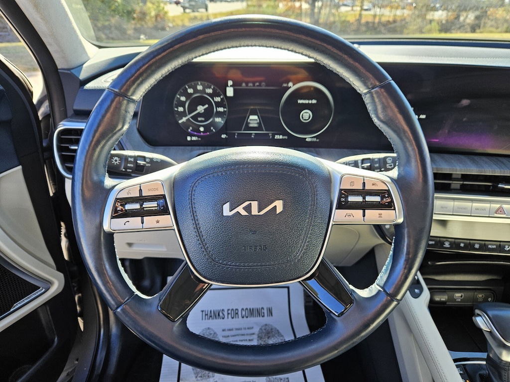 This vehicle comes equipped with Kia Certified Pre-Owned Certified, Navigation System, 10 Speakers, 3.648 Axle Ratio, 3rd row seats: split-bench, 4-Wheel Disc Brakes, ABS brakes, Air Conditioning, Alloy wheels, AM/FM radio: SiriusXM, Apple CarPlay & Android Auto, Auto High-beam Headlights, Auto-dimming Rear-View mirror, Automatic temperature control, Brake assist, Bumpers: body-color, Cargo Cover, Cargo Tray Seat Back, Carpet Floor Mats, Compass, Delay-off headlights, Driver door bin, Driver vanity mirror, Dual front impact airbags, Dual front side impact airbags, Electronic Stability Control, Emergency communication system: 911 Connect, Exterior Parking Camera Rear, Four wheel independent suspension, Front anti-roll bar, Front Bucket Seats, Front Center Armrest, Front dual zone A/C, Front fog lights, Front reading lights, Fully automatic headlights, Garage door transmitter: HomeLink, harman/kardon® Speakers, Heads-Up Display, Heated & Ventilated Front Bucket Seats, Heated door mirrors, Heated front seats, Heated rear seats, Heated steering wheel, Illuminated entry, Knee airbag, Leather Shift Knob, Leather steering wheel, Low tire pressure warning, Memory seat, Mud Guard Kit, Occupant sensing airbag, Outside temperature display, Overhead airbag, Overhead console, Panic alarm, Passenger door bin, Passenger vanity mirror, Power door mirrors, Power driver seat, Power Liftgate, Power moonroof, Power passenger seat, Power steering, Power windows, Premium Nappa Leather Seat Trim, Radio data system, Radio: AM/FM harman/kardon Audio System, Rain sensing wipers, Rear air conditioning, Rear anti-roll bar, Rear audio controls, Rear reading lights, Rear side impact airbag, Rear window defroster, Rear window wiper, Reclining 3rd row seat, Remote keyless entry, Roof rack: rails only, Security system, Smart Key w/ Push Button and Remote Start, Speed control, Speed-sensing steering, Split folding rear seat, Spoiler, Steering wheel mounted audio controls, Tachometer, Telescoping steering wheel, Tilt steering wheel, Traction control, Trip computer, Turn signal indicator mirrors, Variably intermittent wipers, Ventilated front seats, Ventilated rear seats, and Wheels: 20" x 7.5" Black Finish .**MARKET BASED PRICING** Fayetteville Automall prices all of our pre-owned vehicles according to the market. We scan over 10,000 websites every 30 minutes for similar vehicles within 250 miles of our location. This allows us to price our quality vehicles below the market value. A great vehicle at an amazing price, BUY WITH CONFIDENCE!!!