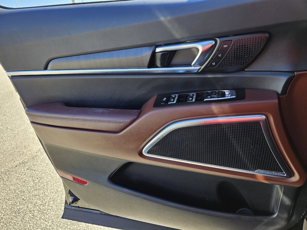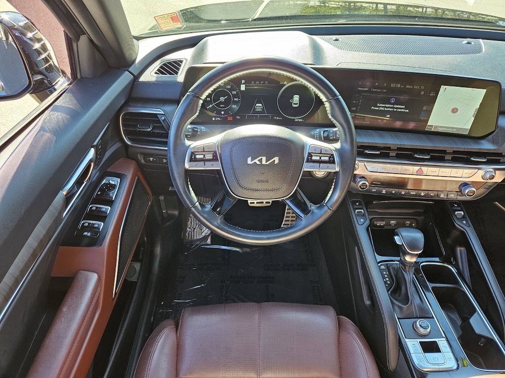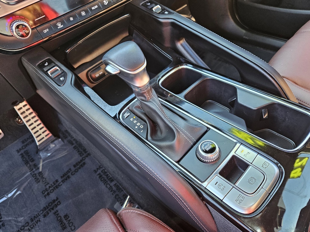 This vehicle comes equipped with Mahogany Interior Color Package, Kia Certified Pre-Owned Certified, Navigation System, 10 Speakers, 3.510 Axle Ratio, 3rd row seats: split-bench, 4-Wheel Disc Brakes, ABS brakes, Air Conditioning, Alloy wheels, AM/FM radio: SiriusXM, Apple CarPlay & Android Auto, Auto High-beam Headlights, Auto-dimming Rear-View mirror, Automatic temperature control, Brake assist, Bumpers: body-color, Carpet Floor Mats, Compass, Delay-off headlights, Driver door bin, Driver vanity mirror, Dual front impact airbags, Dual front side impact airbags, Electronic Stability Control, Emergency communication system: 911 Connect, Exterior Parking Camera Rear, Four wheel independent suspension, Front anti-roll bar, Front Bucket Seats, Front Center Armrest, Front dual zone A/C, Front fog lights, Front reading lights, Fully automatic headlights, Garage door transmitter: HomeLink, harman/kardon® Speakers, Heated & Ventilated Front Bucket Seats, Heated door mirrors, Heated front seats, Illuminated entry, Knee airbag, Leather Seat Trim, Leather Shift Knob, Leather steering wheel, Low tire pressure warning, Memory seat, Occupant sensing airbag, Outside temperature display, Overhead airbag, Overhead console, Panic alarm, Passenger door bin, Passenger vanity mirror, Power door mirrors, Power driver seat, Power Liftgate, Power moonroof, Power passenger seat, Power steering, Power windows, Radio data system, Radio: AM/FM Harman Kardon Premium Audio System, Rear air conditioning, Rear anti-roll bar, Rear audio controls, Rear reading lights, Rear side impact airbag, Rear window defroster, Rear window wiper, Reclining 3rd row seat, Remote keyless entry, Roof rack: rails only, Security system, Smart Key w/ Push Button and Remote Start, Speed control, Speed-sensing steering, Split folding rear seat, Spoiler, Steering wheel mounted audio controls, Tachometer, Telescoping steering wheel, Tilt steering wheel, Traction control, Trip computer, Turn signal indicator mirrors, Variably intermittent wipers, Ventilated front seats, and Wheels: 20" x 7.5" Black Finish .**MARKET BASED PRICING** Fayetteville Automall prices all of our pre-owned vehicles according to the market. We scan over 10,000 websites every 30 minutes for similar vehicles within 250 miles of our location. This allows us to price our quality vehicles below the market value. A great vehicle at an amazing price, BUY WITH CONFIDENCE!!!