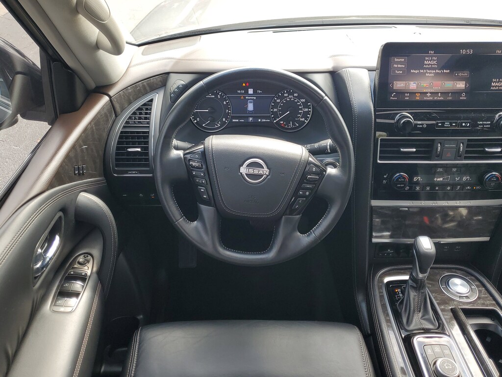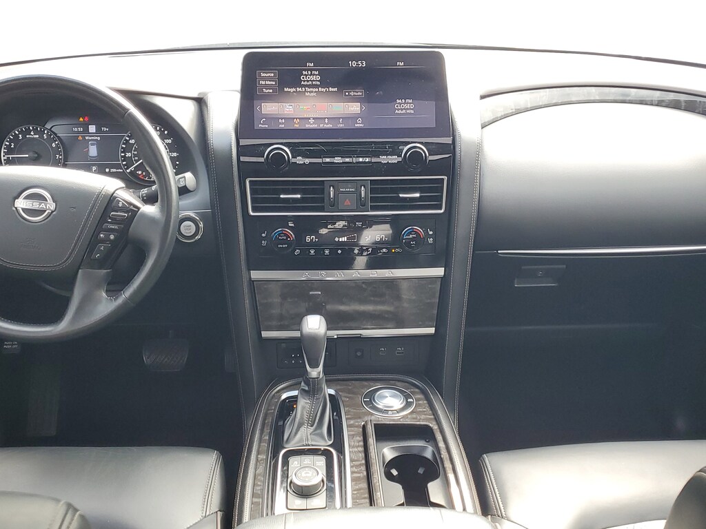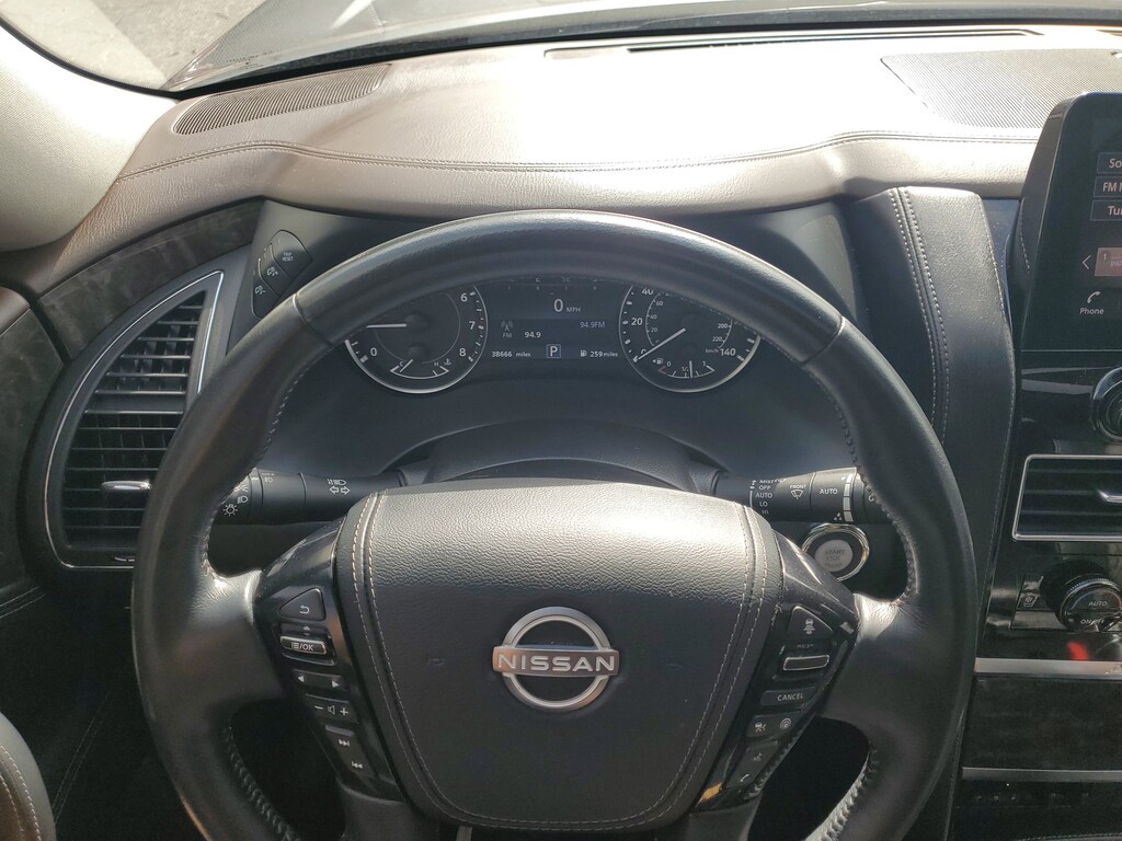 THIS VEHICLE IS EQUIPT WITH THE FOLLOWING FEATURES AND OPTIONS: Captain's Chairs Package (2nd Row Captain's Chairs and 2nd Row Center Console w/Padded Armrest), 13 Speakers, 2.94 Axle Ratio, 3rd Row Carpeted Floor Mats - Captain Seat, 3rd row seats: split-bench, 4-Wheel Disc Brakes, A/V remote, ABS brakes, Air Conditioning, Alloy wheels, AM/FM radio: SiriusXM, Anti-whiplash front head restraints, Auto High-beam Headlights, Auto tilt-away steering wheel, Auto-dimming door mirrors, Auto-dimming Rear-View mirror, Auto-leveling suspension, Automatic temperature control, Brake assist, Bumpers: body-color, Climate-Controlled Front Bucket Seats, Cross Bars, Delay-off headlights, Driver door bin, Driver vanity mirror, Dual front impact airbags, Dual front side impact airbags, Electronic Stability Control, Emergency communication system: NissanConnect Services, Exterior Parking Camera Rear, Four wheel independent suspension, Front anti-roll bar, Front Bucket Seats, Front Center Armrest, Front dual zone A/C, Front fog lights, Front reading lights, Fully automatic headlights, Garage door transmitter: HomeLink, Headphones, Heated door mirrors, Heated front seats, Heated rear seats, Heated steering wheel, Illuminated entry, Illuminated Kick Plates, Illuminated Scuff Plate, Leather Shift Knob, Low tire pressure warning, Memory seat, Navigation System, NissanConnect featuring Apple CarPlay and Android Auto, Occupant sensing airbag, Outside temperature display, Overhead airbag, Overhead console, Panic alarm, Passenger door bin, Passenger vanity mirror, Power door mirrors, Power driver seat, Power Liftgate, Power moonroof, Power passenger seat, Power steering, Power windows, Quilted Leather Seat Trim, Radio: NissanConnect w/SiriusXM, Rain sensing wipers, Rear air conditioning, Rear anti-roll bar, Rear reading lights, Rear seat center armrest, Rear window defroster, Rear window wiper, Reclining 3rd row seat, Remote keyless entry, Security system, Speed control, Speed-sensing steering, Speed-Sensitive Wipers, Split folding rear seat, Spoiler, Steering wheel memory, Steering wheel mounted audio controls, Tachometer, Telescoping steering wheel, Tilt steering wheel, Traction control, Trip computer, Turn signal indicator mirrors, Variably intermittent wipers, Ventilated front seats, Voltmeter, and Wheels: 22 Machine-Faced w/Tinted Clear Coat.