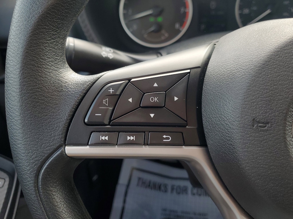 THIS VEHICLE IS EQUIPT WITH THE FOLLOWING FEATURES AND OPTIONS: 16 Steel Wheels w/Full Wheel Covers, 4 Speakers, ABS brakes, Air Conditioning, AM/FM radio, Auto High-beam Headlights, Blind Spot Warning, Brake assist, Bumpers: body-color, Cloth Seat Trim, Delay-off headlights, Driver door bin, Driver vanity mirror, Dual front impact airbags, Dual front side impact airbags, Electronic Stability Control, Four wheel independent suspension, Front anti-roll bar, Front Bucket Seats, Front Center Armrest, Front reading lights, Fully automatic headlights, Illuminated entry, Knee airbag, Low tire pressure warning, NissanConnect featuring Apple CarPlay and Android Auto, Occupant sensing airbag, Outside temperature display, Overhead airbag, Overhead console, Panic alarm, Passenger door bin, Passenger vanity mirror, Power door mirrors, Power steering, Power windows, Radio data system, Radio: AM/FM w/RDS/MP3/Aux-In, Rear anti-roll bar, Rear Parking Sensors, Rear side impact airbag, Rear window defroster, Remote keyless entry, Speed control, Speed-sensing steering, Split folding rear seat, Steering wheel mounted audio controls, Tachometer, Telescoping steering wheel, Tilt steering wheel, Traction control, Trip computer, and Variably intermittent wipers.