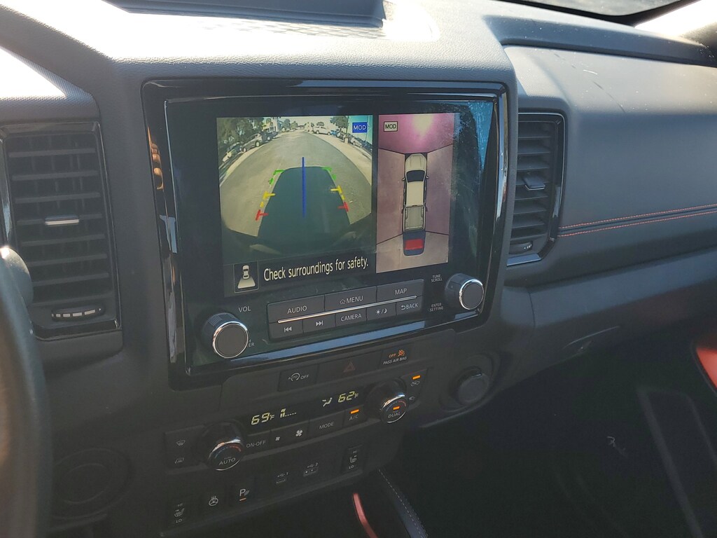 THIS VEHICLE IS EQUIPT WITH THE FOLLOWING FEATURES AND OPTIONS: Fender Audio Package, PRO Convenience Package (120V Power Outlet in Bed, 120V Power Outlet in Rear Center Console, Bed Under-Rail Lighting, Heated Front Seats, Heated Outside Mirrors, Heated Steering Wheel, Intelligent Around View Monitor (I-AVM), Remote Engine Starter, Spray-In Bedliner, Trailer Hitch w/Wiring Harness, Utili-Track System, and Wireless Charging For Personal Devices), Technology Package (Blind Spot Warning, High Beam Assist (HBA), Intelligent Cruise Control, Lane Departure Warning System, Rear Automatic Braking (RAB), Rear Cross Traffic Alert (RCTA), and Rear Sonar System), Tow Package: Hitch, Tow Harness, 17 Alloy Wheels, 3.692 Axle Ratio, 4-Wheel Disc Brakes, 6 Speakers, ABS brakes, Air Conditioning, Alloy wheels, AM/FM radio: SiriusXM, Anti-whiplash front head restraints, Automatic temperature control, Brake assist, Bumpers: body-color, Carpeted Floor Mats, Delay-off headlights, Driver door bin, Driver vanity mirror, Dual front impact airbags, Dual front side impact airbags, Electronic Stability Control, Electronic Tailgate Lock, Emergency communication system: NissanConnect Services, Front anti-roll bar, Front Bucket Seats, Front Center Armrest, Front dual zone A/C, Front fog lights, Front reading lights, Front wheel independent suspension, Fully automatic headlights, Illuminated entry, Knee airbag, Leather Shift Knob, Low tire pressure warning, Navigation system: Nissan Navigation with Voice Recognition, Occupant sensing airbag, Off-Road Style Step Rails, Overhead airbag, Overhead console, Panic alarm, Passenger door bin, Passenger vanity mirror, Power door mirrors, Power driver seat, Power steering, Power windows, PRO Embroidered Premium Cloth Seat Trim, PRO-X Mud Flaps, Radio data system, Radio: SXM/AM/FM/AUX/USB Audio System w/6 Speakers, Rear anti-roll bar, Rear seat center armrest, Rear step bumper, Remote keyless entry, Security system, Speed control, Speed-sensing steering, Split folding rear seat, Steering wheel mounted audio controls, Tachometer, Tilt steering wheel, Traction control, Trip computer, Variably intermittent wipers, and Voltmeter.