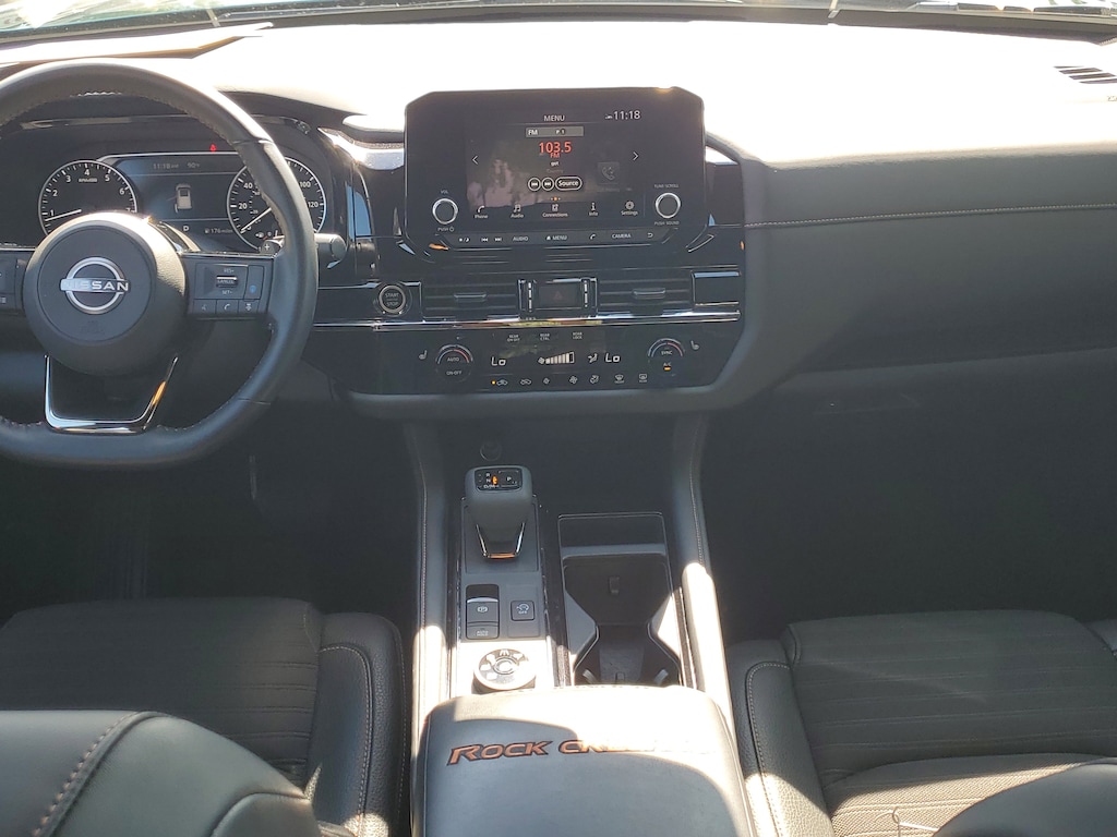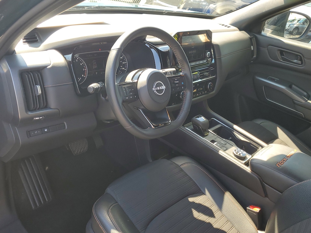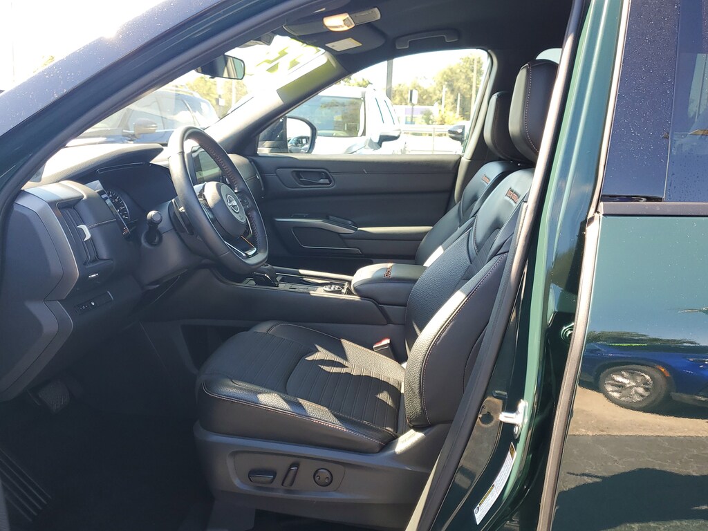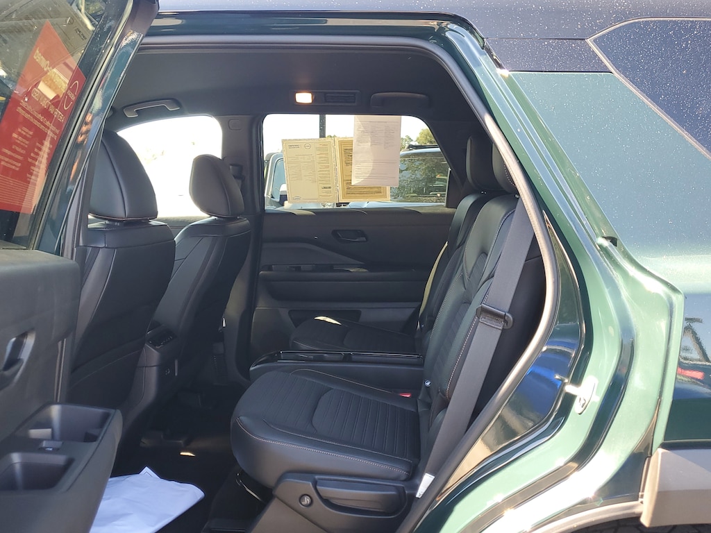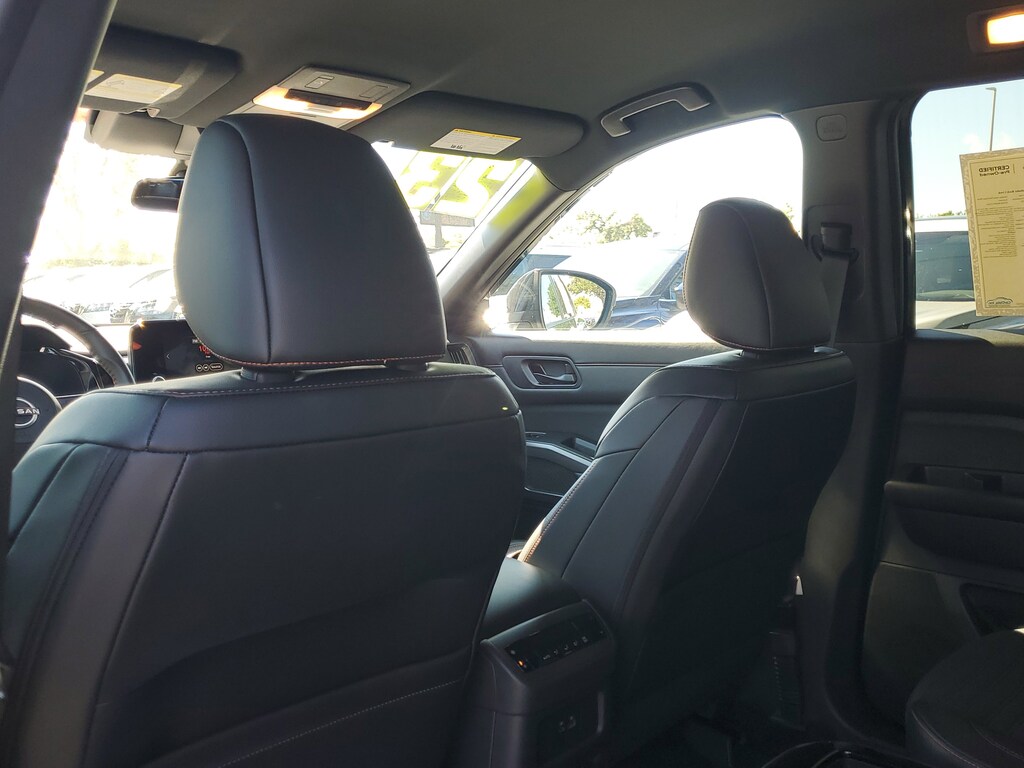 THIS VEHICLE IS EQUIPT WITH THE FOLLOWING FEATURES AND OPTIONS: 2-Tone Roof - Obsidian Green Pearl/Super Black Met, 3rd row seats: bench, 4-Wheel Disc Brakes, 6 Speakers, ABS brakes, Air Conditioning, Alloy wheels, AM/FM radio: SiriusXM, Auto High-beam Headlights, Automatic temperature control, Axle Ratio: 4.334, Black Splash Guards (Set of 4), Brake assist, Delay-off headlights, Driver door bin, Driver vanity mirror, Dual front impact airbags, Dual front side impact airbags, Electronic Stability Control, Emergency communication system: NissanConnect Services, Four wheel independent suspension, Front anti-roll bar, Front Bucket Seats, Front Center Armrest, Front dual zone A/C, Front fog lights, Front reading lights, Fully automatic headlights, Heated door mirrors, Heated Front Bucket Seats, Heated front seats, Illuminated entry, Knee airbag, Leather steering wheel, Leatherette Seating Surfaces, Low tire pressure warning, NissanConnect featuring Apple CarPlay and Android Auto, Occupant sensing airbag, Outside temperature display, Overhead airbag, Overhead console, Panic alarm, Passenger door bin, Passenger vanity mirror, Power door mirrors, Power driver seat, Power steering, Power windows, Radio data system, Radio: AM/FM Audio System w/NissanConnect, Rear air conditioning, Rear anti-roll bar, Rear Parking Sensors, Rear reading lights, Rear side impact airbag, Rear window defroster, Rear window wiper, Reclining 3rd row seat, Remote keyless entry, Rock Creek AS Floor Liners & Cargo Area Protector, Rock Creek Roof Rack, Roof rack, Security system, Speed control, Speed-sensing steering, Split folding rear seat, Spoiler, Steering wheel mounted audio controls, Tachometer, Telescoping steering wheel, Tilt steering wheel, Traction control, Trip computer, Turn signal indicator mirrors, Variably intermittent wipers, and Wheels: 18 Beadlock Styled Design.