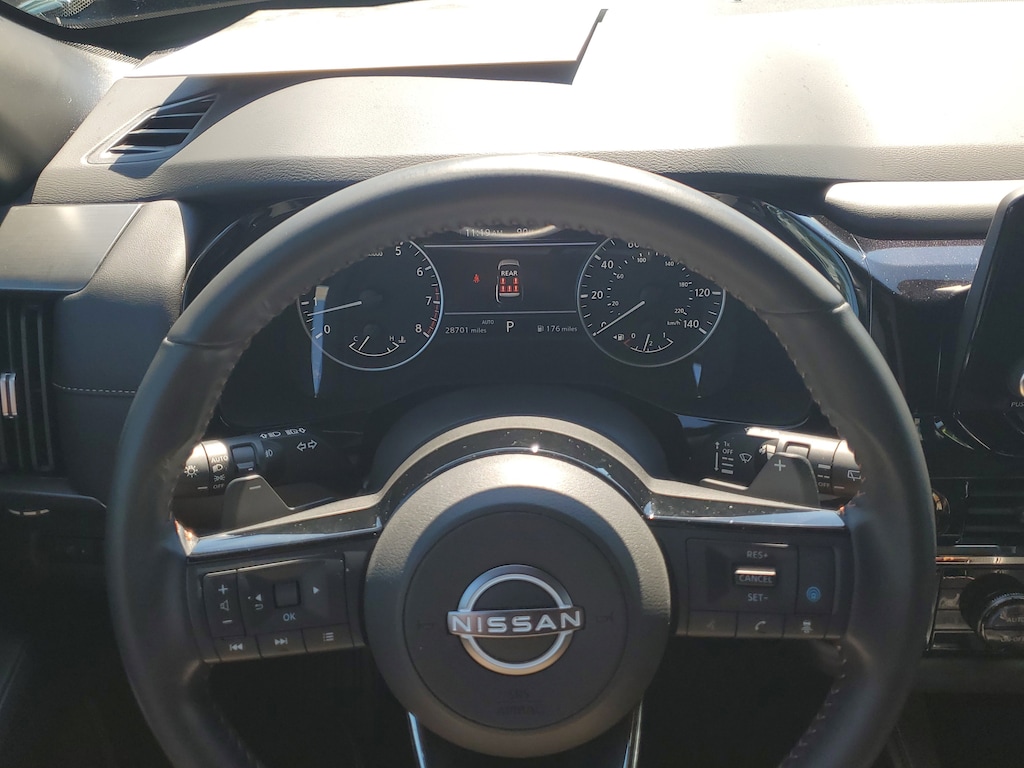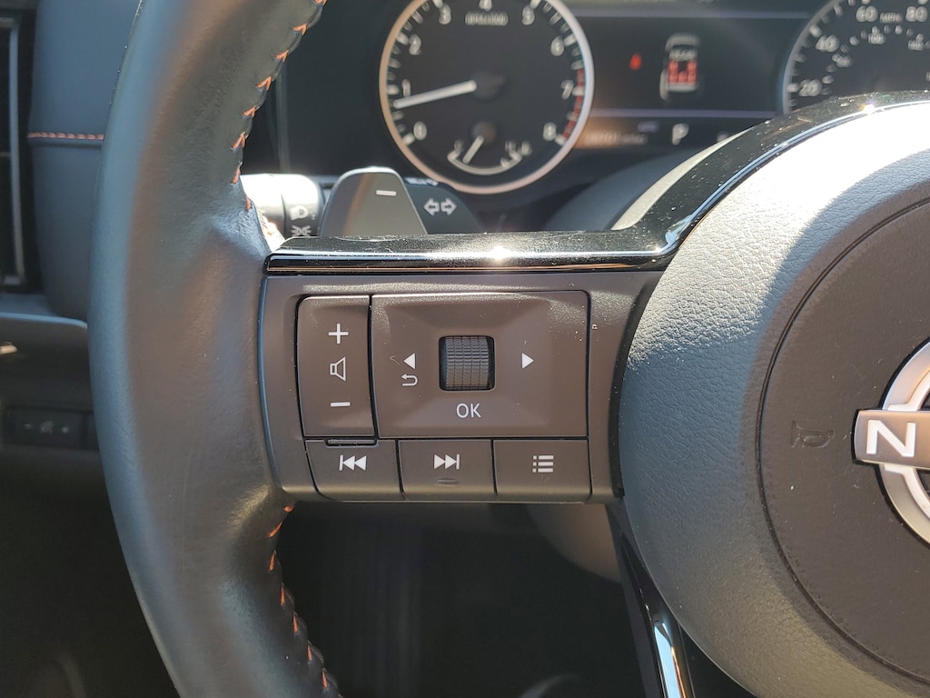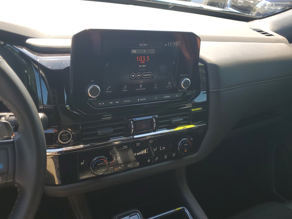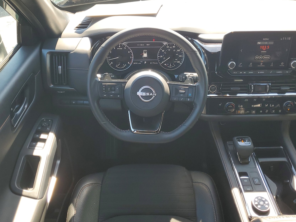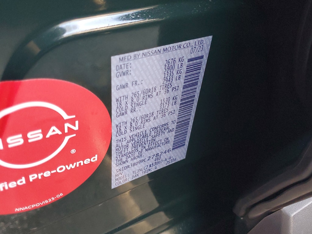 THIS VEHICLE IS EQUIPT WITH THE FOLLOWING FEATURES AND OPTIONS: 2-Tone Roof - Obsidian Green Pearl/Super Black Met, 3rd row seats: bench, 4-Wheel Disc Brakes, 6 Speakers, ABS brakes, Air Conditioning, Alloy wheels, AM/FM radio: SiriusXM, Auto High-beam Headlights, Automatic temperature control, Axle Ratio: 4.334, Black Splash Guards (Set of 4), Brake assist, Delay-off headlights, Driver door bin, Driver vanity mirror, Dual front impact airbags, Dual front side impact airbags, Electronic Stability Control, Emergency communication system: NissanConnect Services, Four wheel independent suspension, Front anti-roll bar, Front Bucket Seats, Front Center Armrest, Front dual zone A/C, Front fog lights, Front reading lights, Fully automatic headlights, Heated door mirrors, Heated Front Bucket Seats, Heated front seats, Illuminated entry, Knee airbag, Leather steering wheel, Leatherette Seating Surfaces, Low tire pressure warning, NissanConnect featuring Apple CarPlay and Android Auto, Occupant sensing airbag, Outside temperature display, Overhead airbag, Overhead console, Panic alarm, Passenger door bin, Passenger vanity mirror, Power door mirrors, Power driver seat, Power steering, Power windows, Radio data system, Radio: AM/FM Audio System w/NissanConnect, Rear air conditioning, Rear anti-roll bar, Rear Parking Sensors, Rear reading lights, Rear side impact airbag, Rear window defroster, Rear window wiper, Reclining 3rd row seat, Remote keyless entry, Rock Creek AS Floor Liners & Cargo Area Protector, Rock Creek Roof Rack, Roof rack, Security system, Speed control, Speed-sensing steering, Split folding rear seat, Spoiler, Steering wheel mounted audio controls, Tachometer, Telescoping steering wheel, Tilt steering wheel, Traction control, Trip computer, Turn signal indicator mirrors, Variably intermittent wipers, and Wheels: 18 Beadlock Styled Design.