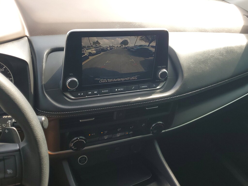 THIS VEHICLE IS EQUIPT WITH THE FOLLOWING FEATURES AND OPTIONS: 17 Aluminum Alloy Wheels, 4 Speakers, 4-Wheel Disc Brakes, 5.604 Axle Ratio, ABS brakes, Air Conditioning, Alloy wheels, AM/FM Radio, AM/FM radio: SiriusXM, Auto High-beam Headlights, Black Splash Guards (Set of 4), Blind Spot Warning, Brake assist, Bumpers: body-color, Cloth Seat Trim, Delay-off headlights, Driver door bin, Driver vanity mirror, Dual front impact airbags, Dual front side impact airbags, Electronic Stability Control, First Aid Kit, Floor Mats w/1-Piece Cargo Area Protector, Four wheel independent suspension, Front anti-roll bar, Front Bucket Seats, Front Center Armrest, Front reading lights, Fully automatic headlights, Illuminated entry, Knee airbag, Low tire pressure warning, NissanConnect featuring Apple CarPlay and Android Auto, Occupant sensing airbag, Outside temperature display, Overhead airbag, Overhead console, Panic alarm, Passenger door bin, Passenger vanity mirror, Power door mirrors, Power steering, Power windows, Radio data system, Rear anti-roll bar, Rear Parking Sensors, Rear seat center armrest, Rear side impact airbag, Rear window defroster, Rear window wiper, Remote keyless entry, Speed control, Speed-Sensitive Wipers, Split folding rear seat, Spoiler, Steering wheel mounted audio controls, Tachometer, Telescoping steering wheel, Tilt steering wheel, Traction control, Trip computer, and Variably intermittent wipers.