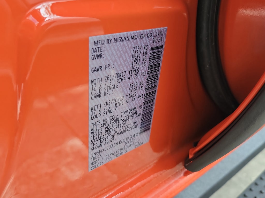 THIS VEHICLE IS EQUIPT WITH THE FOLLOWING FEATURES AND OPTIONS: Telematics Delete Package (NissanConnect Services & Wi-Fi Hotspot Delete), 17 Painted Alloy Wheels, 3.692 Axle Ratio, 4-Wheel Disc Brakes, 6 Speakers, ABS brakes, Air Conditioning, Alloy wheels, AM/FM radio: SiriusXM, Anti-whiplash front head restraints, Auto High-beam Headlights, Automatic temperature control, Blind Spot Warning, Brake assist, Bumpers: body-color, Carpeted Floor Mats, Delay-off headlights, Driver door bin, Driver vanity mirror, Dual front impact airbags, Dual front side impact airbags, Electronic Stability Control, Electronic Tailgate Lock, Emergency communication system, Front anti-roll bar, Front Bucket Seats, Front Center Armrest, Front dual zone A/C, Front fog lights, Front reading lights, Front wheel independent suspension, Fully automatic headlights, Illuminated entry, Knee airbag, Leather Shift Knob, Leather steering wheel, Low tire pressure warning, Occupant sensing airbag, Off-Road Style Step Rails, Overhead airbag, Overhead console, Panic alarm, Passenger door bin, Passenger vanity mirror, Power door mirrors, Power driver seat, Power passenger seat, Power steering, Power windows, Premium Paint, PRO Embroidered Premium Cloth Seat Trim, Radio data system, Radio: SXM/AM/FM/AUX/USB Audio System, Rear anti-roll bar, Rear seat center armrest, Rear side impact airbag, Rear step bumper, Remote Engine Starter Accessory, Remote keyless entry, Security system, Speed control, Speed-sensing steering, Splash Guards (DISC), Split folding rear seat, Steering wheel mounted audio controls, Tachometer, Telescoping steering wheel, Tilt steering wheel, Traction control, Trip computer, USB Charging Cable Kit, Variably intermittent wipers, Voltmeter, and Wireless Apple CarPlay/Wireless Android Auto.