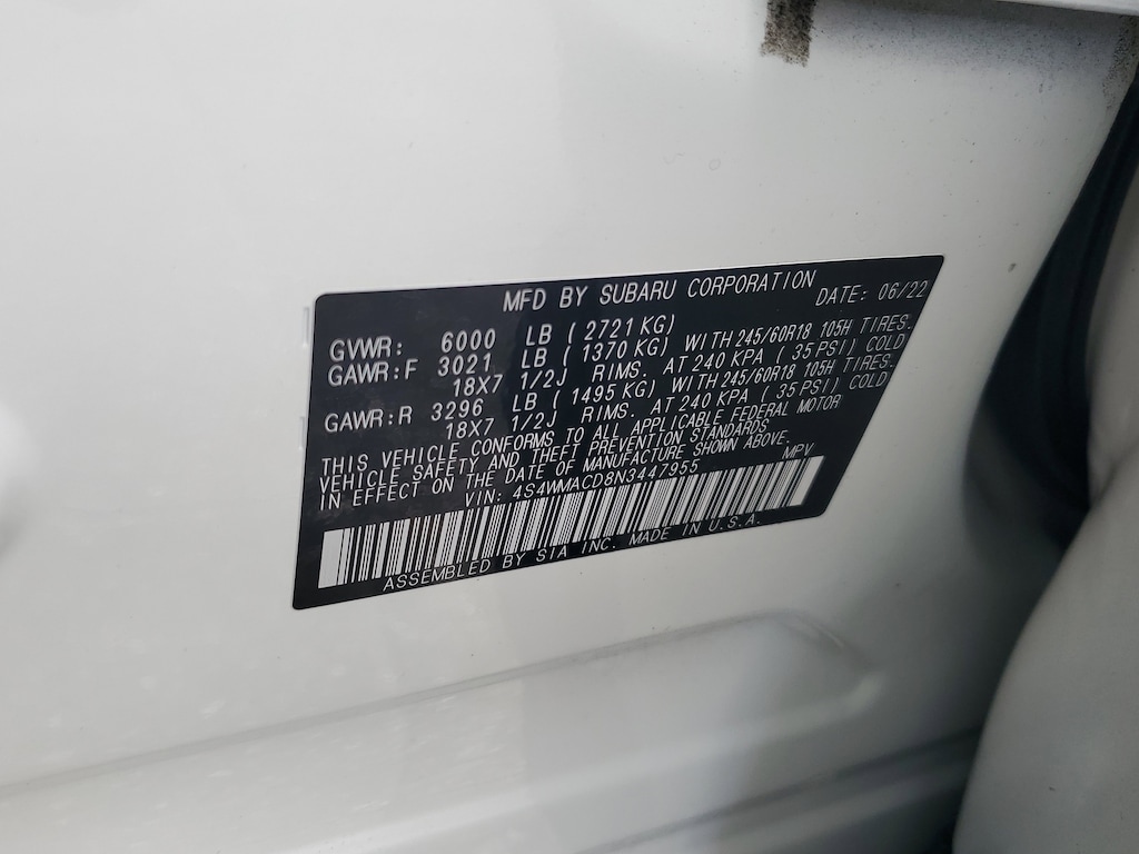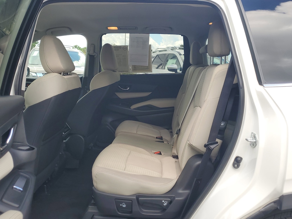THIS VEHICLE IS EQUIPT WITH THE FOLLOWING FEATURES AND OPTIONS: Convenience Package (Auto-Dimming Rear View Compass Mirror w/HomeLink, Keyless Access w/Push-Button Start, Power Rear Gate w/Automatic Close & Height Memory, and Reverse Automatic Braking (RAB) System), 3rd row seats: bench, 4-Wheel Disc Brakes, 6 Speakers, ABS brakes, Air Conditioning, Alloy wheels, AM/FM radio: SiriusXM, Auto High-beam Headlights, Automatic temperature control, Axle Ratio: 4.44, Brake assist, Bumpers: body-color, CD player, Delay-off headlights, Driver door bin, Driver vanity mirror, Dual front impact airbags, Dual front side impact airbags, Electronic Stability Control, Emergency communication system: STARLINK Safety and Security (Subscription Required), Exterior Parking Camera Rear, Four wheel independent suspension, Front anti-roll bar, Front Bucket Seats, Front Center Armrest, Front dual zone A/C, Front reading lights, Fully automatic headlights, Heated door mirrors, Heated Front Bucket Seats, Heated front seats, Illuminated entry, Knee airbag, Low tire pressure warning, Occupant sensing airbag, Outside temperature display, Overhead airbag, Overhead console, Panic alarm, Passenger door bin, Passenger vanity mirror, Power door mirrors, Power driver seat, Power steering, Power windows, Radio data system, Radio: Subaru STARLINK 8.0 Multimedia Plus System, Rear air conditioning, Rear anti-roll bar, Rear reading lights, Rear seat center armrest, Rear window defroster, Rear window wiper, Reclining 3rd row seat, Remote keyless entry, Security system, Speed control, Spill Resistant Coated Cloth Upholstery, Split folding rear seat, Spoiler, STARLINK/Apple CarPlay/Android Auto, Steering wheel mounted audio controls, Tachometer, Telescoping steering wheel, Tilt steering wheel, Traction control, Trip computer, Variably intermittent wipers, and Wheels: 18 x 7.5 J Gray Alloy w/Machine Finish.