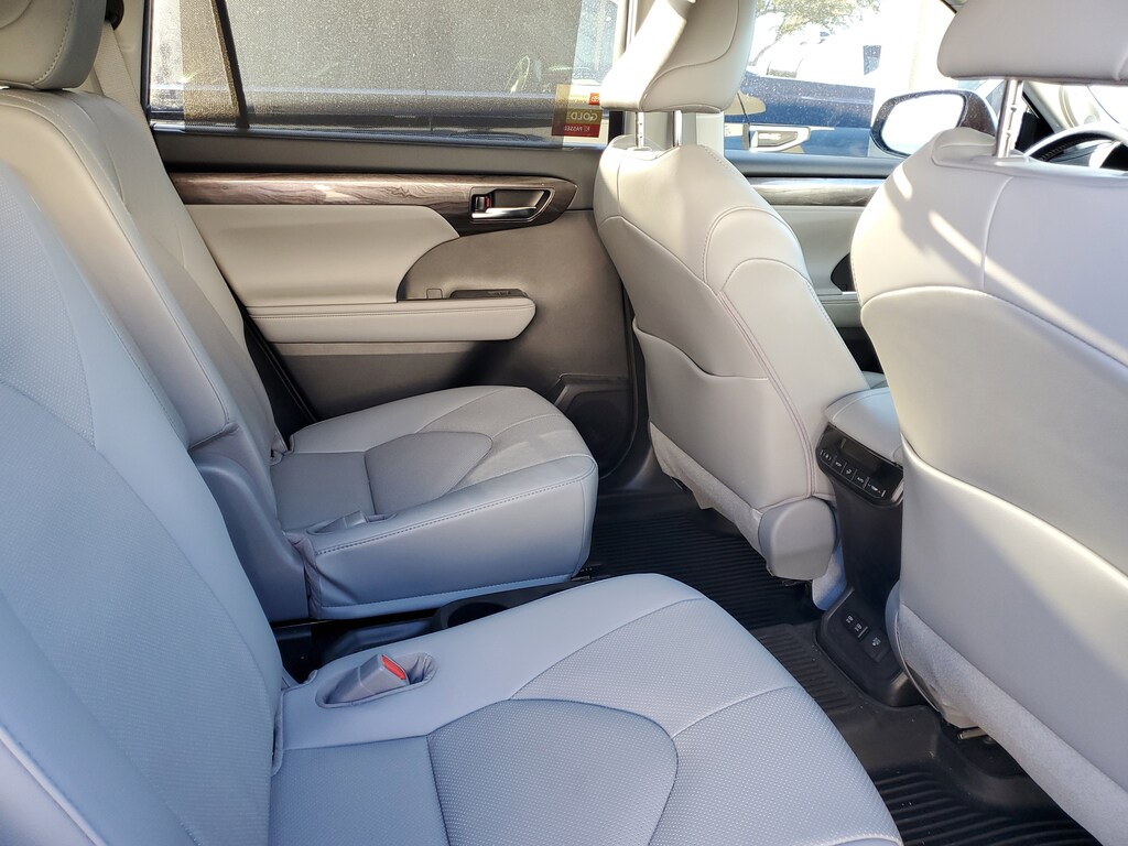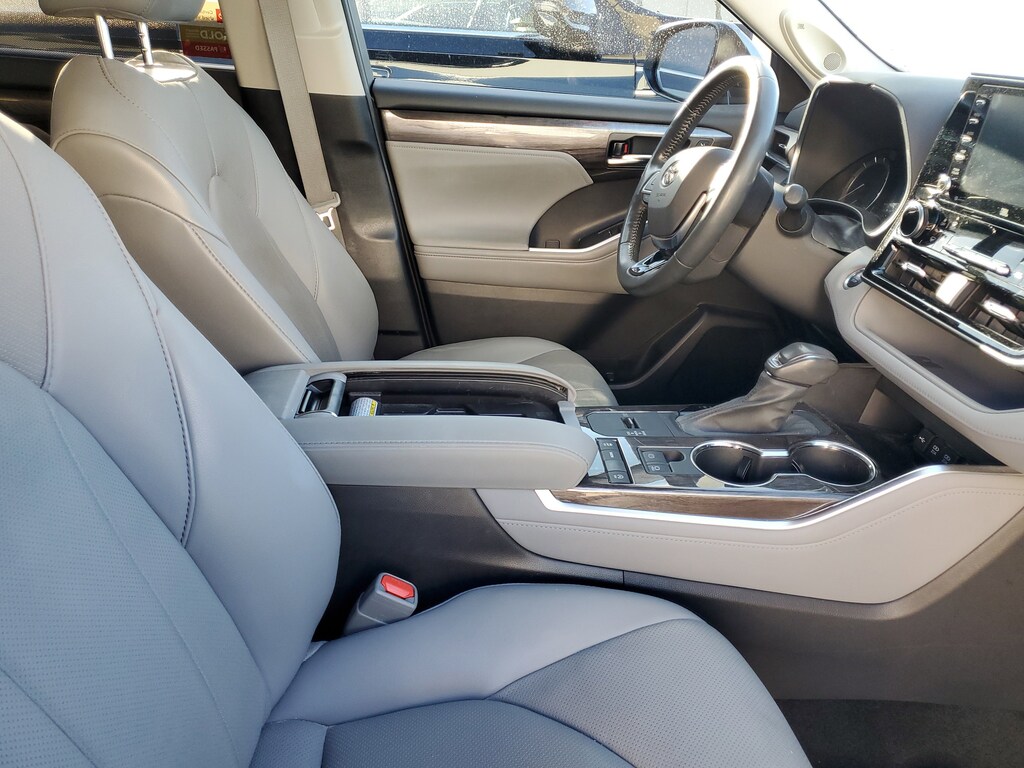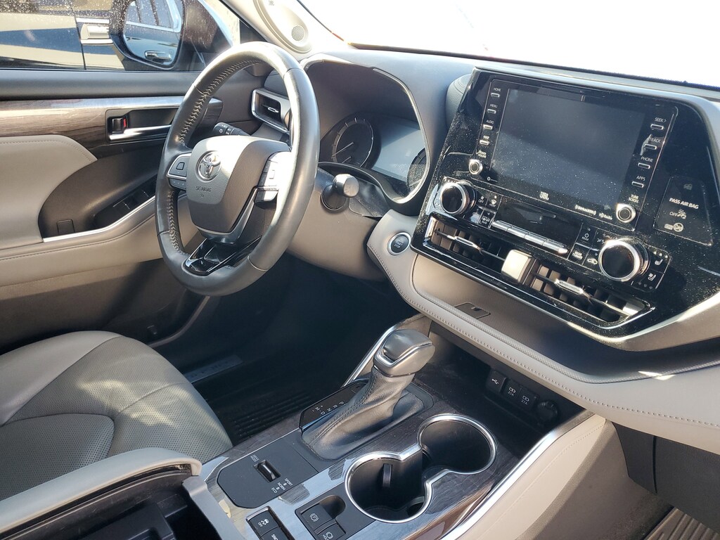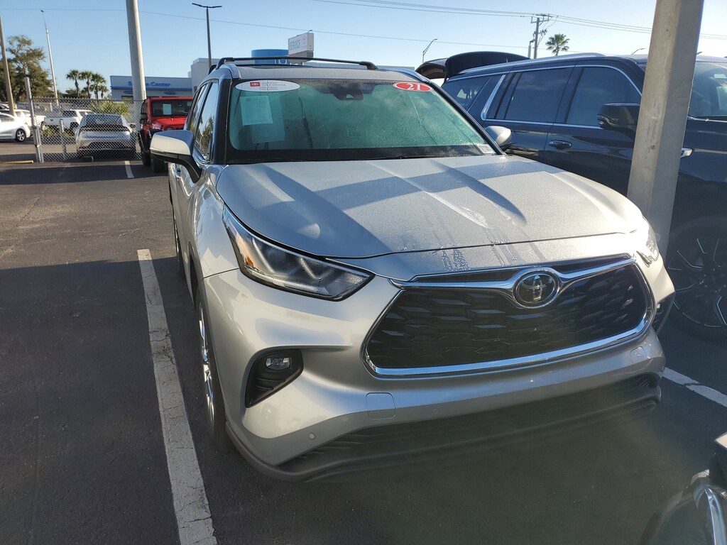 2021 Toyota Highlander 3.5L V6 DOHC Celestial Silver Metallic This vehicle also comes equipped with: Toyota Gold Certified Certified, 11 Speakers, 20 Alloy Wheels, 3.003 Axle Ratio, 3rd row seats: split-bench, 4-Wheel Disc Brakes, ABS brakes, Air Conditioning, Alloy wheels, AM/FM radio: SiriusXM, Apple CarPlay/Android Auto, Auto High-beam Headlights, Auto-dimming Rear-View mirror, Automatic temperature control, Brake assist, Bumpers: body-color, Chrome wheels, Delay-off headlights, Driver door bin, Driver vanity mirror, Dual front impact airbags, Dual front side impact airbags, Electronic Stability Control, Emergency communication system: Safety Connect with 1-year trial, Exterior Parking Camera Rear, Four wheel independent suspension, Front anti-roll bar, Front Bucket Seats, Front Center Armrest, Front dual zone A/C, Front fog lights, Front reading lights, Fully automatic headlights, Garage door transmitter: HomeLink, Heated door mirrors, Heated front seats, Heated steering wheel, Heated/Ventilated Front Bucket Seats, Illuminated entry, Knee airbag, Leather Seat Trim, Leather Shift Knob, Low tire pressure warning, Memory seat, Navigation system: Dynamic Navigation (3-year trial), Occupant sensing airbag, Outside temperature display, Overhead airbag, Overhead console, Panic alarm, Passenger door bin, Passenger vanity mirror, Power door mirrors, Power driver seat, Power Liftgate, Power moonroof, Power passenger seat, Power steering, Power windows, Radio: Premium Audio w/JBL Clari-Fi, Rear air conditioning, Rear anti-roll bar, Rear reading lights, Rear window defroster, Rear window wiper, Reclining 3rd row seat, Remote keyless entry, Roof rack: rails only, Security system, Speed control, Speed-sensing steering, Split folding rear seat, Spoiler, Steering wheel mounted audio controls, Tachometer, Telescoping steering wheel, Tilt steering wheel, Traction control, Trip computer, Turn signal indicator mirrors, Variably intermittent wipers, and Ventilated front seats. FWD 8-Speed Automatic Recent Arrival! Priced below KBB Fair Purchase Price! Odometer is 50046 miles below market average! 21/29 City/Highway MPG