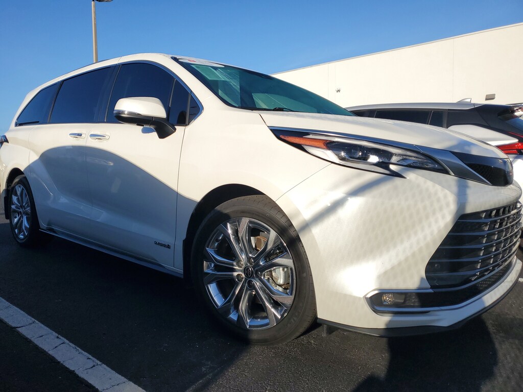 2021 Toyota Sienna 2.5L I4 Blizzard Pearl This vehicle also comes equipped with: Toyota Certified Used Hybrids Certified, 12 Speakers, 3-Spoke Leather-Wrapped Heated Steering Wheel, 3rd row seats: split-bench, 4-Wheel Disc Brakes, ABS brakes, Air Conditioning, Alloy wheels, AM/FM radio: SiriusXM, Apple CarPlay/Android Auto, Auto High-beam Headlights, Auto-dimming door mirrors, Auto-dimming Rear-View mirror, Automatic temperature control, Axle Ratio: TBA, Brake assist, Bumpers: body-color, Compass, Delay-off headlights, Door auto-latch, Driver door bin, Driver vanity mirror, Driver's Seat Mounted Armrest, Dual front impact airbags, Dual front side impact airbags, Electronic Stability Control, Emergency communication system: Safety Connect with 3-year trial, Four wheel independent suspension, Front anti-roll bar, Front Bucket Seats, Front dual zone A/C, Front fog lights, Front Heated & Ventilated Bucket Seats, Front reading lights, Fully automatic headlights, Garage door transmitter: HomeLink, Head-Up Display, Heads-Up Display, Heated door mirrors, Heated front seats, Heated rear seats, Heated steering wheel, Illuminated entry, Knee airbag, Lane Departure Warning System, Leather Seat Material, Leather Shift Knob, Leather steering wheel, Low tire pressure warning, Memory seat, Navigation System, Occupant sensing airbag, Outside temperature display, Overhead airbag, Overhead console, Panic alarm, Parking Camera, Passenger door bin, Passenger seat mounted armrest, Passenger vanity mirror, Power door mirrors, Power driver seat, Power Liftgate, Power moonroof, Power passenger seat, Power steering, Power windows, Radio data system, Radio: Premium JBL Audio, Rain sensing wipers, Rear air conditioning, Rear anti-roll bar, Rear dual zone A/C, Rear reading lights, Rear side impact airbag, Rear window defroster, Rear window wiper, Reclining 3rd row seat, Remote keyless entry, Roof rack: rails only, Second Row Heated Seats, Speed control, Speed-sensing steering, Split folding rear seat, Spoiler, Steering wheel memory, Steering wheel mounted audio controls, Tachometer, Telescoping steering wheel, Tilt steering wheel, Traction control, Trip computer, Turn signal indicator mirrors, Variably intermittent wipers, Ventilated front seats, Wheels: 20 Metallic Alloy, and Wide Angle Backup Monitor. FWD CVT Recent Arrival! 36/36 City/Highway MPG