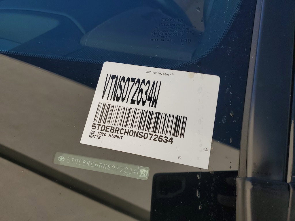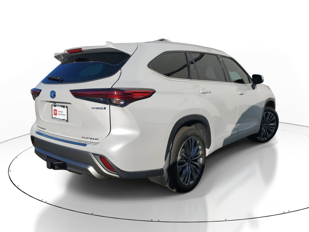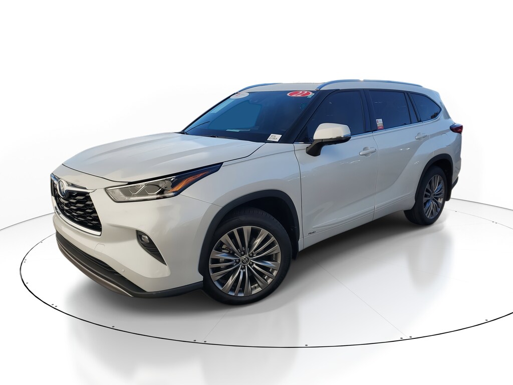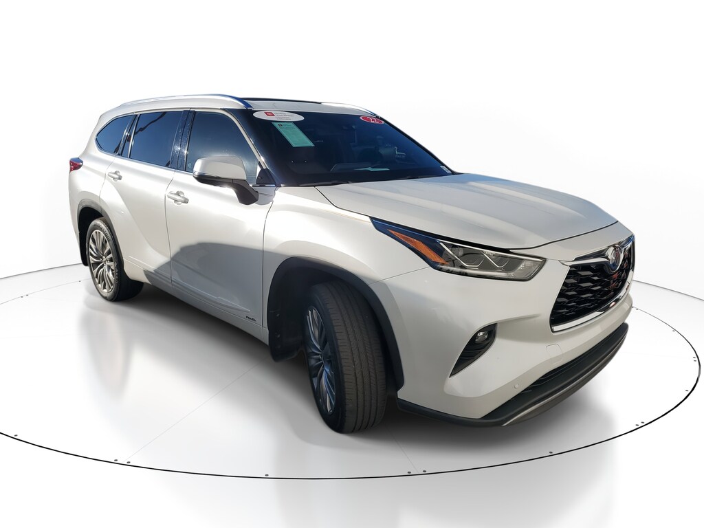 2022 Toyota Highlander Hybrid 2.5L I4 PDI Hybrid DOHC 16V LEV3-SULEV30 186hp. This vehicle also comes equipped with: Toyota Certified Used Hybrids Certified, 2.5L I4 PDI Hybrid DOHC 16V LEV3-SULEV30 186hp, 11 Speakers, 20 Alloy Wheels, 3rd row seats: split-bench, 4-Wheel Disc Brakes, ABS brakes, Air Conditioning, Alloy wheels, AM/FM radio: SiriusXM, Apple CarPlay/Android Auto, Auto High-beam Headlights, Auto-dimming Rear-View mirror, Automatic temperature control, Axle Ratio TBD, Brake assist, Bumpers: body-color, Delay-off headlights, Driver door bin, Driver vanity mirror, Dual front impact airbags, Dual front side impact airbags, Electronic Stability Control, Emergency communication system: Safety Connect with 1-year trial, Four wheel independent suspension, Front anti-roll bar, Front Bucket Seats, Front Center Armrest, Front dual zone A/C, Front fog lights, Front reading lights, Fully automatic headlights, Garage door transmitter: HomeLink, Heads-Up Display, Heated door mirrors, Heated Front Bucket Seats, Heated front seats, Heated rear seats, Heated steering wheel, High Grade LED, Illuminated entry, Knee airbag, Leather Seat Trim, Leather Shift Knob, Low tire pressure warning, Memory seat, Navigation system: Dynamic Navigation (3-year trial), Occupant sensing airbag, Outside temperature display, Overhead airbag, Overhead console, Panic alarm, Panoramic Moonroof, Panoramic View Monitor, Passenger door bin, Passenger vanity mirror, Power door mirrors, Power driver seat, Power Liftgate, Power moonroof, Power passenger seat, Power steering, Power windows, Radio: JBL Premium Audio System, Rain sensing wipers, Rear air conditioning, Rear anti-roll bar, Rear reading lights, Rear window defroster, Rear window wiper, Reclining 3rd row seat, Remote keyless entry, Roof rack: rails only, Security system, Speed control, Speed-sensing steering, Split folding rear seat, Spoiler, Steering wheel mounted audio controls, Telescoping steering wheel, Tilt steering wheel, Traction control, Trip computer, Turn signal indicator mirrors, Variably intermittent wipers, and Ventilated front seats. AWD eCVT Recent Arrival! 35/34 City/Highway MPG