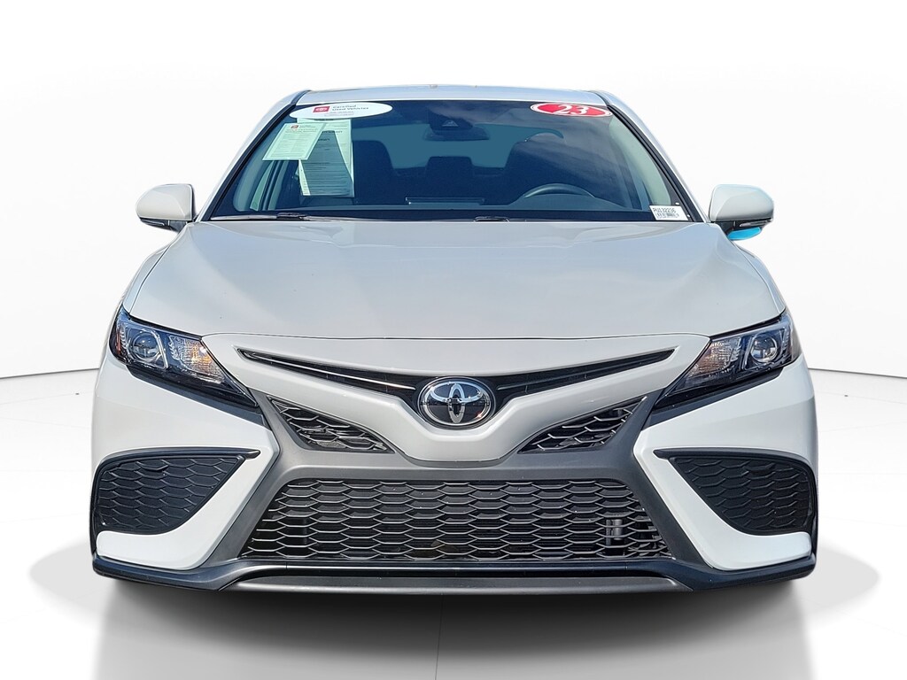 2023 Toyota Camry 2.5L I4 DOHC 16V Ice Edge Black Artificial Leather. This vehicle also comes equipped with: Toyota Gold Certified Certified, Black Artificial Leather, 4-Wheel Disc Brakes, 6 Speakers, 8.0J x 18 Alloy Wheels, ABS brakes, Air Conditioning, Alloy wheels, AM/FM radio: SiriusXM, Apple CarPlay/Android Auto, Auto High-beam Headlights, Automatic temperature control, Brake assist, Bumpers: body-color, Delay-off headlights, Driver door bin, Driver vanity mirror, Dual front impact airbags, Dual front side impact airbags, Electronic Stability Control, Emergency communication system: Safety Connect (1-year trial), Exterior Parking Camera Rear, Four wheel independent suspension, Front anti-roll bar, Front Bucket Seats, Front Center Armrest, Front dual zone A/C, Front reading lights, Fully automatic headlights, Heated door mirrors, Illuminated entry, Knee airbag, Leather steering wheel, Low tire pressure warning, Occupant sensing airbag, Outside temperature display, Overhead airbag, Overhead console, Panic alarm, Passenger door bin, Passenger vanity mirror, Power door mirrors, Power driver seat, Power steering, Power windows, Radio data system, Radio: Audio, Rear anti-roll bar, Rear seat center armrest, Rear side impact airbag, Rear window defroster, Remote keyless entry, Security system, Speed control, Speed-sensing steering, Split folding rear seat, Spoiler, Sport SofTex Seat Trim w/Fabric Inserts, Steering wheel mounted audio controls, Tachometer, Telescoping steering wheel, Tilt steering wheel, Traction control, Trip computer, Turn signal indicator mirrors, and Variably intermittent wipers. FWD 8-Speed Automatic Recent Arrival! Priced below KBB Fair Purchase Price! Odometer is 21626 miles below market average! 28/39 City/Highway MPG
