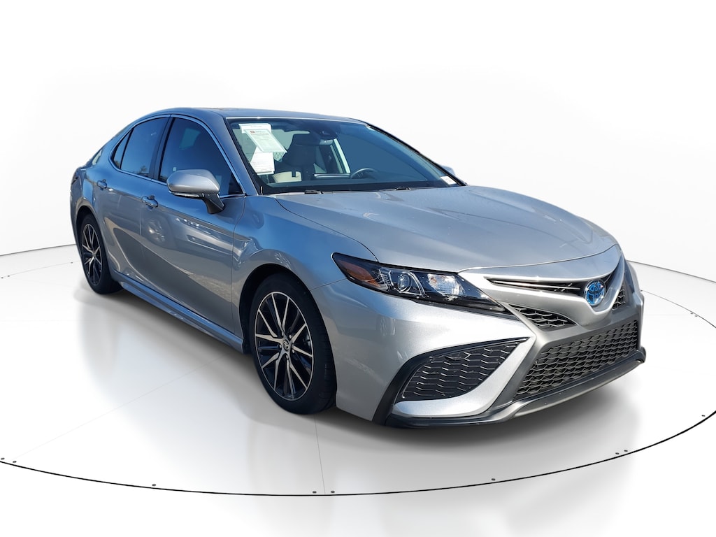 2023 Toyota Camry Hybrid 2.5L I4 DOHC 16V Celestial Silver Metallic 2.5L I4 DOHC 16V, Power Tilt/Slide Moonroof. This vehicle also comes equipped with: Toyota Certified Used Hybrids Certified, 2.5L I4 DOHC 16V, Power Tilt/Slide Moonroof, 4-Wheel Disc Brakes, 6 Speakers, ABS brakes, Air Conditioning, Alloy wheels, AM/FM radio: SiriusXM, Apple CarPlay/Android Auto, Auto High-beam Headlights, Automatic temperature control, Brake assist, Bumpers: body-color, Delay-off headlights, Driver door bin, Driver vanity mirror, Dual front impact airbags, Dual front side impact airbags, Electronic Stability Control, Emergency communication system: Safety Connect (1-year trial), Exterior Parking Camera Rear, Four wheel independent suspension, Front anti-roll bar, Front Bucket Seats, Front Center Armrest, Front dual zone A/C, Front reading lights, Fully automatic headlights, Heated door mirrors, Illuminated entry, Knee airbag, Leather steering wheel, Low tire pressure warning, Occupant sensing airbag, Outside temperature display, Overhead airbag, Overhead console, Panic alarm, Passenger door bin, Passenger vanity mirror, Power door mirrors, Power driver seat, Power steering, Power windows, Radio data system, Radio: Audio, Rear anti-roll bar, Rear reading lights, Rear seat center armrest, Rear side impact airbag, Rear window defroster, Remote keyless entry, Security system, Speed control, Speed-sensing steering, Split folding rear seat, Spoiler, Sport SofTex Seat Trim w/Fabric Inserts, Steering wheel mounted audio controls, Telescoping steering wheel, Tilt steering wheel, Traction control, Trip computer, Turn signal indicator mirrors, and Variably intermittent wipers. FWD eCVT Recent Arrival! 44/47 City/Highway MPG