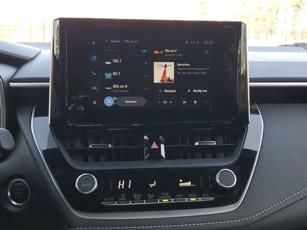 This Vehicle is nicely equipped with the following features: Toyota Gold Certified Certified, 16 10-Spoke Aluminum Wheels, 4-Wheel Disc Brakes, 6 Speakers, ABS brakes, Air Conditioning, Alloy wheels, AM/FM radio: SiriusXM, Auto High-beam Headlights, Automatic temperature control, Brake assist, Bumpers: body-color, Compass, Delay-off headlights, Driver door bin, Driver vanity mirror, Dual front impact airbags, Dual front side impact airbags, Electronic Stability Control, Emergency communication system: Safety Connect (up to 10-year trial subscription), Exterior Parking Camera Rear, Fabric Seat Trim, Four wheel independent suspension, Front anti-roll bar, Front Bucket Seats, Front Center Armrest, Front reading lights, Heated door mirrors, Illuminated entry, Knee airbag, Leather Shift Knob, Leather steering wheel, Low tire pressure warning, Occupant sensing airbag, Outside temperature display, Overhead airbag, Overhead console, Panic alarm, Passenger door bin, Passenger vanity mirror, Power door mirrors, Power steering, Power windows, Radio data system, Radio: 8 Toyota Audio Multimedia, Rear anti-roll bar, Rear seat center armrest, Rear side impact airbag, Rear window defroster, Rear window wiper, Remote keyless entry, Security system, Speed control, Speed-sensing steering, Split folding rear seat, Spoiler, Sport Front Seats, Steering wheel mounted audio controls, Tachometer, Telescoping steering wheel, Tilt steering wheel, Traction control, Trip computer, Turn signal indicator mirrors, and Variably intermittent wipers.