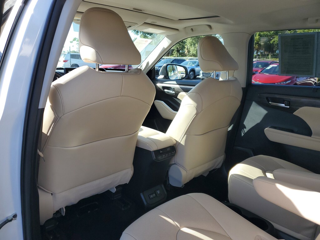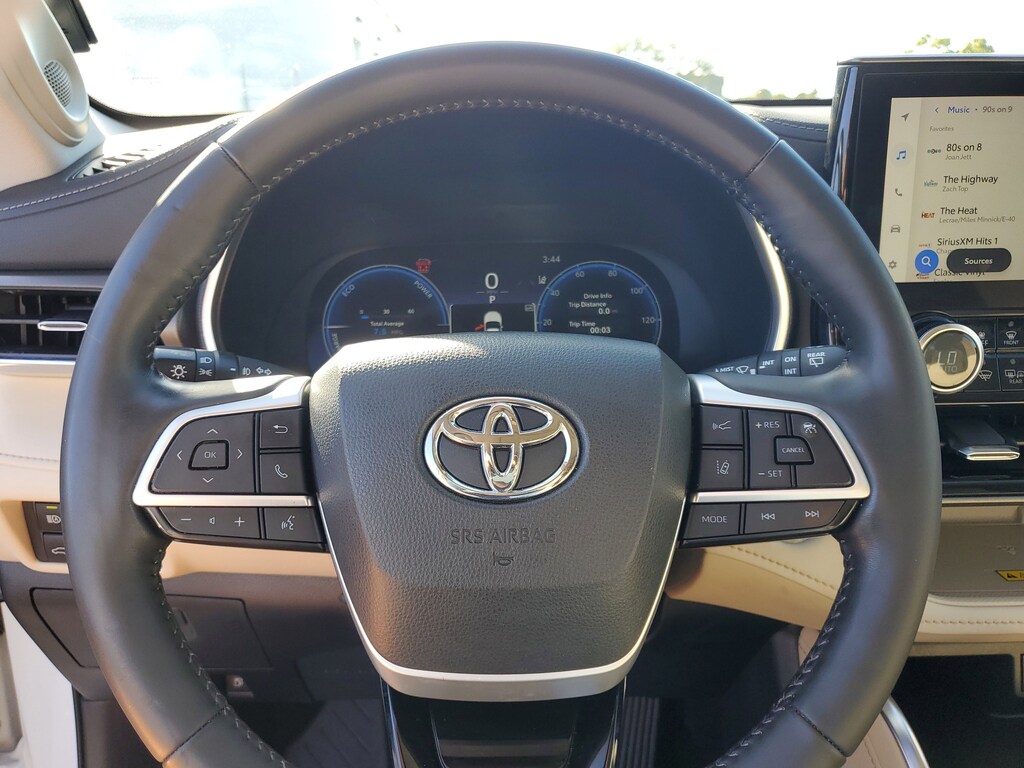 2023 Toyota Highlander Hybrid 2.5L I4 PDI Hybrid DOHC 16V LEV3-SULEV30 Wind Chill Pearl. This vehicle also comes equipped with 11 Speakers, 20 Alloy Wheels, 3rd row seats: split-bench, 4-Wheel Disc Brakes, ABS brakes, Air Conditioning, Alloy wheels, AM/FM radio: SiriusXM, Apple CarPlay/Android Auto, Auto High-beam Headlights, Auto-dimming Rear-View mirror, Automatic temperature control, Axle Ratio: TBD, Brake assist, Bumpers: body-color, Chrome wheels, Delay-off headlights, Driver door bin, Driver vanity mirror, Dual front impact airbags, Dual front side impact airbags, Electronic Stability Control, Emergency communication system: Safety Connect (up to 10-year trial subscription), Exterior Parking Camera Rear, Four wheel independent suspension, Front anti-roll bar, Front Bucket Seats, Front Center Armrest, Front dual zone A/C, Front fog lights, Front reading lights, Fully automatic headlights, Garage door transmitter: HomeLink, Heated door mirrors, Heated Front Bucket Seats, Heated front seats, Heated steering wheel, Illuminated entry, Knee airbag, Leather Seat Trim, Leather Shift Knob, Leather steering wheel, Low tire pressure warning, Memory seat, Navigation system: Drive Connect Cloud Navigation (1-year trial subscription), Occupant sensing airbag, Outside temperature display, Overhead airbag, Overhead console, Panic alarm, Passenger door bin, Passenger vanity mirror, Power door mirrors, Power driver seat, Power Liftgate, Power moonroof, Power passenger seat, Power steering, Power windows, Radio: 12.3 Toyota Audio Multimedia w/JBL Premium, Rear air conditioning, Rear anti-roll bar, Rear reading lights, Rear window defroster, Rear window wiper, Reclining 3rd row seat, Remote keyless entry, Roof rack: rails only, Security system, Speed control, Speed-sensing steering, Split folding rear seat, Spoiler, Steering wheel mounted audio controls, Telescoping steering wheel, Tilt steering wheel, Traction control, Trip computer, Turn signal indicator mirrors, Variably intermittent wipers, and Ventilated front seats. FWD eCVT Recent Arrival! 36/35 City/Highway MPG