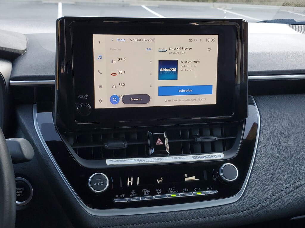 This Vehicle is nicely equipped with the following features: Toyota Gold Certified Certified, 6 Speakers, Alloy wheels, Wheels: 18 Alloy w/Graphite-Colored Finish, 4-Wheel Disc Brakes, ABS brakes, Air Conditioning, AM/FM radio: SiriusXM, Auto High-beam Headlights, Automatic temperature control, Brake assist, Bumpers: body-color, Delay-off headlights, Driver door bin, Driver vanity mirror, Dual front impact airbags, Dual front side impact airbags, Electronic Stability Control, Emergency communication system: Safety Connect (up to 10-year trial subscription), Exterior Parking Camera Rear, Fabric Seat Trim, Four wheel independent suspension, Front anti-roll bar, Front Bucket Seats, Front Center Armrest, Front reading lights, Front Sport Seats, Fully automatic headlights, Heated door mirrors, Illuminated entry, Knee airbag, Leather steering wheel, Low tire pressure warning, Occupant sensing airbag, Outside temperature display, Overhead airbag, Panic alarm, Passenger door bin, Passenger vanity mirror, Power door mirrors, Power steering, Power windows, Radio data system, Radio: 8 Toyota Audio Multimedia, Rear anti-roll bar, Rear seat center armrest, Rear side impact airbag, Rear window defroster, Remote keyless entry, Speed control, Split folding rear seat, Spoiler, Steering wheel mounted audio controls, Tachometer, Telescoping steering wheel, Tilt steering wheel, Traction control, Trip computer, Turn signal indicator mirrors, and Variably intermittent wipers.