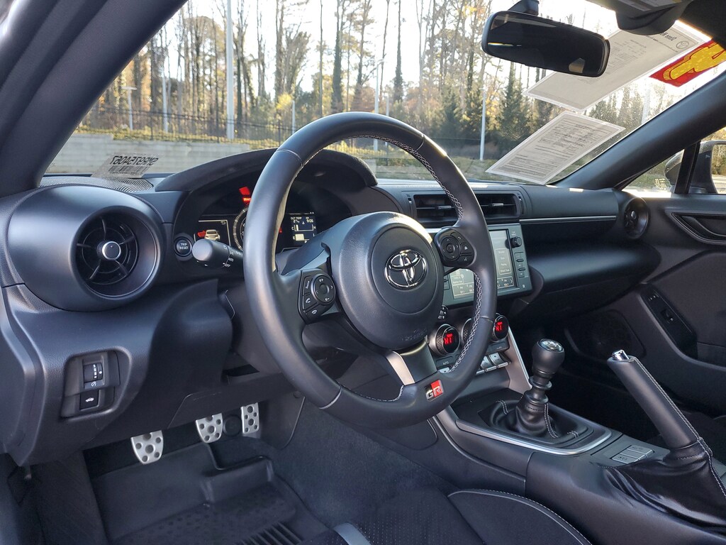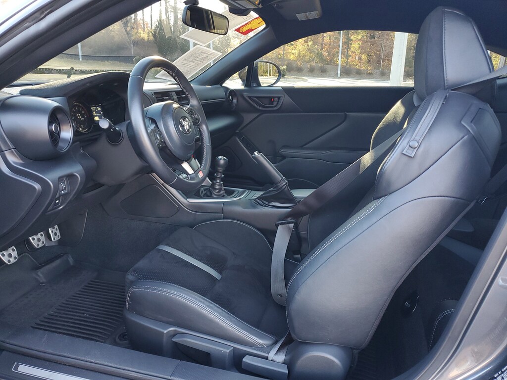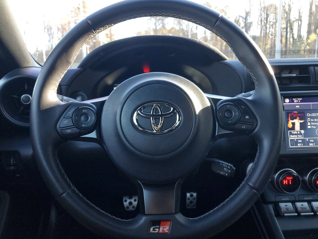 This Vehicle is nicely equipped with the following features: Toyota Gold Certified Certified, 2-Stage Heated Sport Front Seats, 4-Wheel Disc Brakes, 8 Speakers, ABS brakes, Air Conditioning, Alloy wheels, AM/FM radio: SiriusXM, Apple CarPlay/Android Auto, Automatic temperature control, Brake assist, Bumpers: body-color, Delay-off headlights, Driver door bin, Driver vanity mirror, Dual front impact airbags, Dual front side impact airbags, Electronic Stability Control, Emergency communication system: Safety Connect (1-year trial), Exterior Parking Camera Rear, Four wheel independent suspension, Front anti-roll bar, Front Bucket Seats, Front dual zone A/C, Front reading lights, Fully automatic headlights, Heated door mirrors, Heated front seats, Illuminated entry, Knee airbag, Leather Shift Knob, Leather steering wheel, Low tire pressure warning, Occupant sensing airbag, Outside temperature display, Overhead airbag, Panic alarm, Passenger door bin, Passenger vanity mirror, Power door mirrors, Power steering, Power windows, Radio data system, Radio: GR86 Audio, Rear anti-roll bar, Rear window defroster, Remote keyless entry, Security system, Speed control, Spoiler, Steering wheel mounted audio controls, Tachometer, Telescoping steering wheel, Tilt steering wheel, Traction control, Trip computer, Ultrasuede Seat Trim w/Leather Bolsters, Variably intermittent wipers, and Wheels: 18 Matte-Black-Painted Alloy.