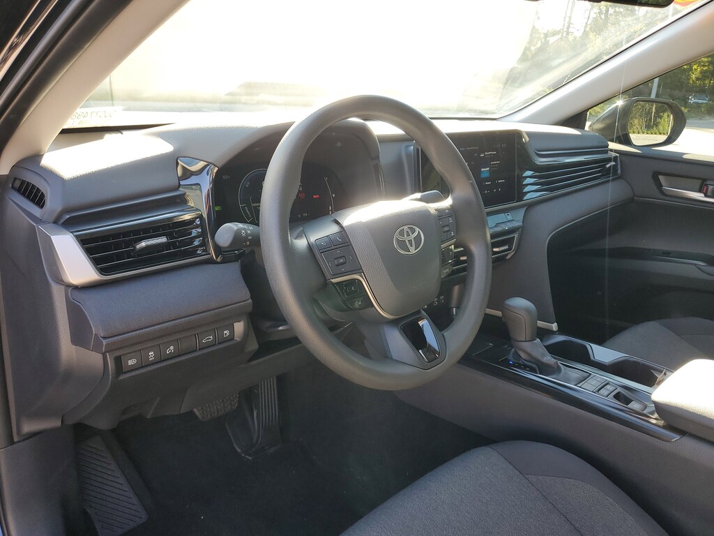 Certified. Midnight Black 2025 Toyota Camry LE eCVT 2.5L 4-Cylinder 16V DOHC CERTIFED TOYOTA, 2.5L 4-Cylinder 16V DOHC, Black w/Fabric Seat Trim, ABS brakes, Active Cruise Control, Alloy wheels, Electronic Stability Control, Front dual zone A/C, Heated door mirrors, Illuminated entry, Low tire pressure warning, Remote keyless entry, Traction control.