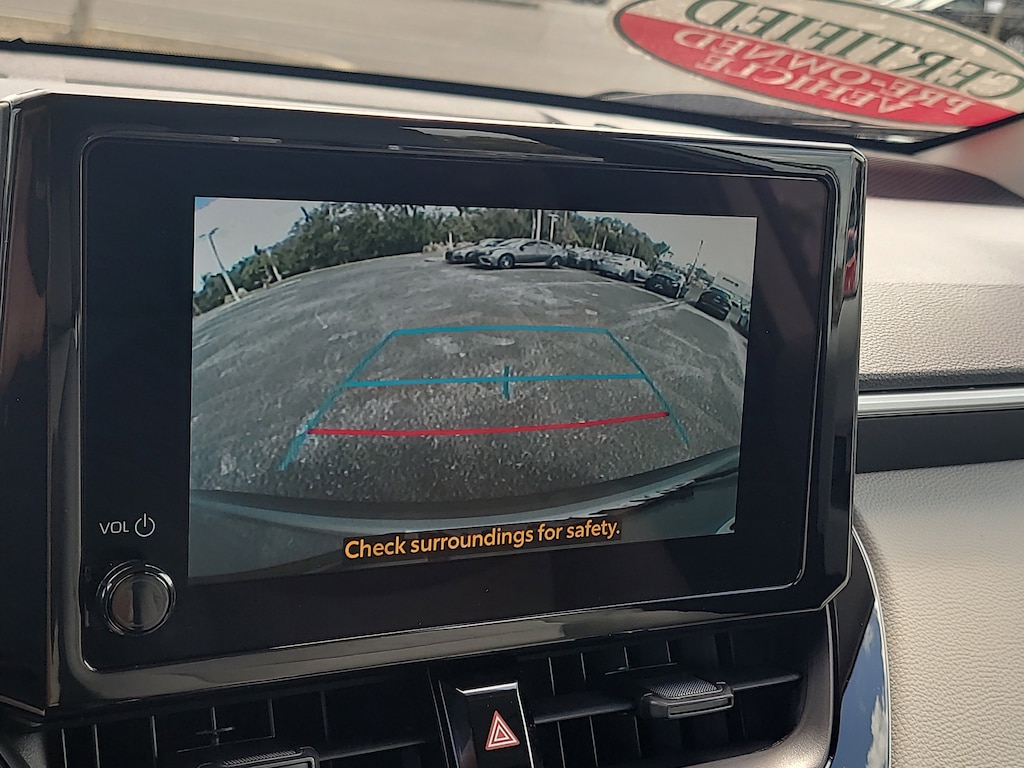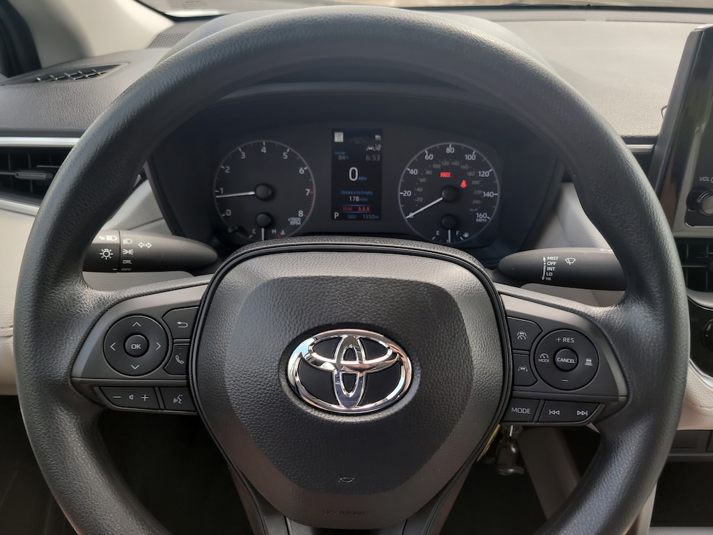 This Vehicle is nicely equipped with the following features: 4-Wheel Disc Brakes, 6 Speakers, ABS brakes, Air Conditioning, AM/FM radio: SiriusXM, Auto High-beam Headlights, Brake assist, Bumpers: body-color, Delay-off headlights, Driver door bin, Driver vanity mirror, Dual front impact airbags, Dual front side impact airbags, Electronic Stability Control, Emergency communication system: Safety Connect (10-year trial), Exterior Parking Camera Rear, Fabric Seat Trim, Front anti-roll bar, Front Bucket Seats, Front Center Armrest, Front reading lights, Front wheel independent suspension, Heated door mirrors, Illuminated entry, Knee airbag, Low tire pressure warning, Occupant sensing airbag, Outside temperature display, Overhead airbag, Panic alarm, Passenger door bin, Passenger vanity mirror, Power door mirrors, Power steering, Power windows, Radio data system, Radio: 8" Toyota Audio Multimedia with 6 Speakers, Rear anti-roll bar, Rear side impact airbag, Rear window defroster, Remote keyless entry, Speed control, Split folding rear seat, Spoiler, Steering wheel mounted audio controls, Tachometer, Telescoping steering wheel, Tilt steering wheel, Traction control, Trip computer, and Wheels: 17" Steel with Silver Covers. Odometer is 8142 miles below market average! 31/33 City/Highway MPG