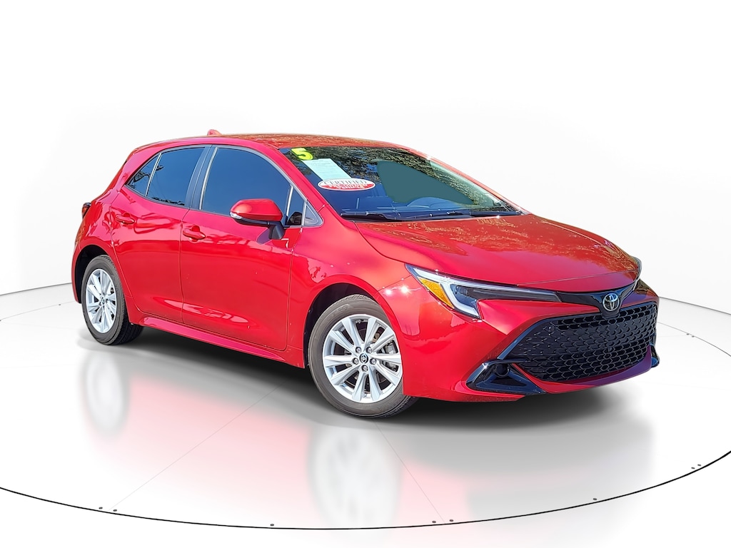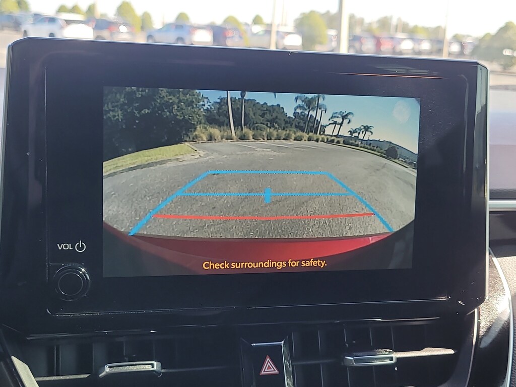 This Vehicle is nicely equipped with the following features: 16" Alloy Wheels, 4-Wheel Disc Brakes, 6 Speakers, ABS brakes, Air Conditioning, Alloy wheels, AM/FM radio: SiriusXM, Auto High-beam Headlights, Automatic temperature control, Brake assist, Bumpers: body-color, Compass, Delay-off headlights, Driver door bin, Driver vanity mirror, Dual front impact airbags, Dual front side impact airbags, Electronic Stability Control, Emergency communication system: Safety Connect (up to 10-year trial subscription), Exterior Parking Camera Rear, Fabric Seat Trim, Four wheel independent suspension, Front anti-roll bar, Front Bucket Seats, Front Center Armrest, Front reading lights, Heated door mirrors, Illuminated entry, Knee airbag, Leather Shift Knob, Leather steering wheel, Low tire pressure warning, Occupant sensing airbag, Outside temperature display, Overhead airbag, Overhead console, Panic alarm, Passenger door bin, Passenger vanity mirror, Power door mirrors, Power steering, Power windows, Radio data system, Radio: 8" Toyota Audio Multimedia, Rear anti-roll bar, Rear seat center armrest, Rear side impact airbag, Rear window defroster, Rear window wiper, Remote keyless entry, Security system, Speed control, Speed-sensing steering, Split folding rear seat, Spoiler, Sport Front Seats, Steering wheel mounted audio controls, Tachometer, Telescoping steering wheel, Tilt steering wheel, Traction control, Trip computer, Turn signal indicator mirrors, and Variably intermittent wipers. 32/41 City/Highway MPG