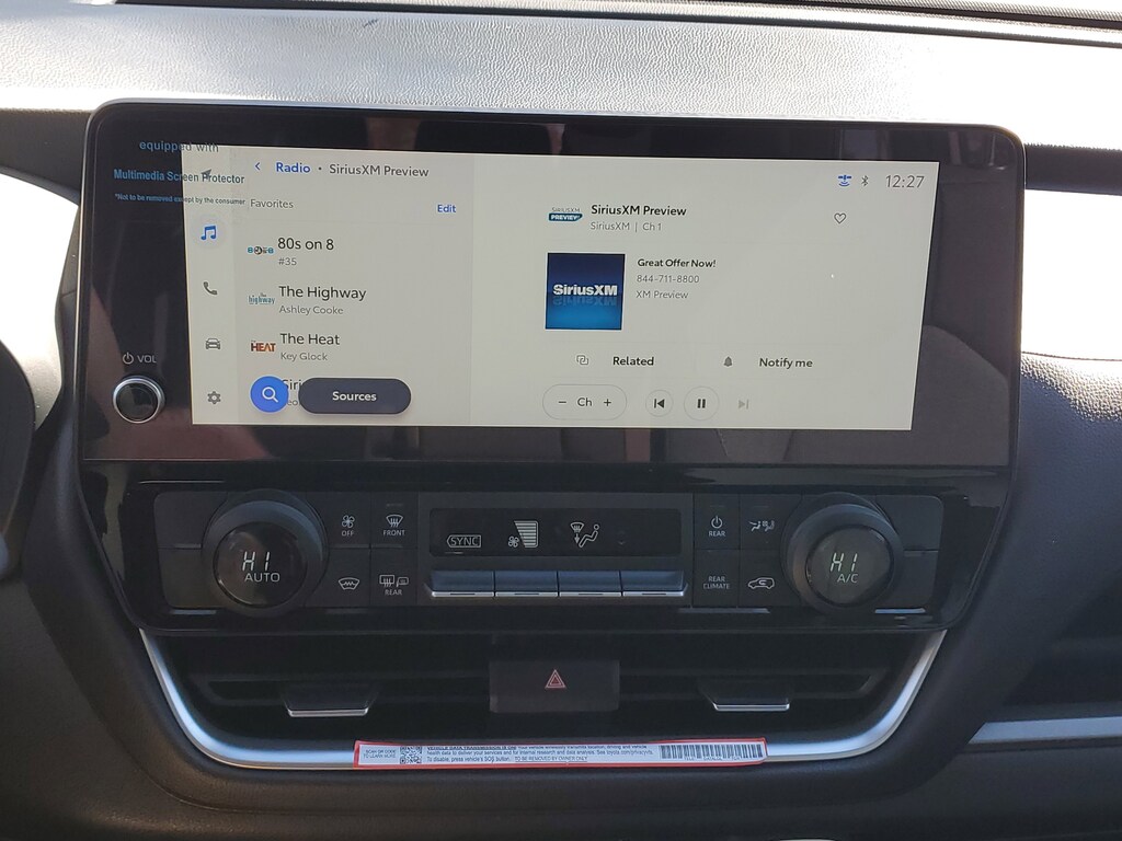 This Vehicle is nicely equipped with the following features: Toyota Gold Certified Certified, 3rd row seats: split-bench, 6 Speakers, Apple CarPlay/Android Auto, Driver door bin, Driver vanity mirror, Fabric Seat Trim, Front Bucket Seats, Front Center Armrest, Front reading lights, Front Seats, Illuminated entry, Leather Shift Knob, Navigation system: Drive Connect Cloud Navigation capable (paid subscription required), Power driver seat, Power steering, Power windows, Reclining 3rd row seat, Remote keyless entry, Split folding rear seat, Steering wheel mounted audio controls, 4-Wheel Disc Brakes, ABS brakes, Air Conditioning, Alloy wheels, AM/FM radio: SiriusXM, Auto High-beam Headlights, Automatic temperature control, Brake assist, Bumpers: body-color, Delay-off headlights, Dual front impact airbags, Dual front side impact airbags, Electronic Stability Control, Emergency communication system: Safety Connect (up to 10-year trial subscription), Exterior Parking Camera Rear, Four wheel independent suspension, Front anti-roll bar, Front dual zone A/C, Fully automatic headlights, Heated door mirrors, Knee airbag, Low tire pressure warning, Occupant sensing airbag, Outside temperature display, Overhead airbag, Overhead console, Panic alarm, Passenger door bin, Passenger vanity mirror, Power door mirrors, Power Liftgate, Rear air conditioning, Rear anti-roll bar, Rear reading lights, Rear seat center armrest, Rear window defroster, Rear window wiper, Security system, Speed control, Speed-sensing steering, Spoiler, Tachometer, Telescoping steering wheel, Tilt steering wheel, Traction control, Trip computer, Turn signal indicator mirrors, Variably intermittent wipers, and Wheels: 18 Silver Painted 5-Spoke Alloy.