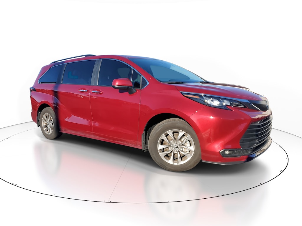 2025 Toyota Sienna 2.5L I4 Hybrid w/VVT-iE DOHC 16V Ruby Flare Pearl 2.5L I4 Hybrid w/VVT-iE DOHC 16V. This vehicle also comes equipped with: Toyota Certified Used Hybrids Certified, 2.5L I4 Hybrid w/VVT-iE DOHC 16V, 17 Alloy Wheels, 3rd row seats: split-bench, 4-Wheel Disc Brakes, 8 Speakers, ABS brakes, Air Conditioning, Alloy wheels, AM/FM radio: SiriusXM, Apple CarPlay/Android Auto, Auto High-beam Headlights, Auto-dimming door mirrors, Auto-dimming Rear-View mirror, Automatic temperature control, Axle Ratio: TBD, Brake assist, Bumpers: body-color, Compass, Delay-off headlights, Driver door bin, Driver vanity mirror, Driver's Seat Mounted Armrest, Dual front impact airbags, Dual front side impact airbags, Electronic Stability Control, Emergency communication system: Safety Connect (3-year trial), Exterior Parking Camera Rear, Four wheel independent suspension, Front anti-roll bar, Front Bucket Seats, Front dual zone A/C, Front fog lights, Front Heated Bucket Seats, Front reading lights, Fully automatic headlights, Garage door transmitter: HomeLink, Heated door mirrors, Heated front seats, Illuminated entry, Knee airbag, Lane Departure Warning System, Leather Shift Knob, Leather steering wheel, Low tire pressure warning, Occupant sensing airbag, Outside temperature display, Overhead airbag, Overhead console, Panic alarm, Passenger door bin, Passenger seat mounted armrest, Passenger vanity mirror, Power door mirrors, Power driver seat, Power Liftgate, Power moonroof, Power passenger seat, Power steering, Power windows, Radio data system, Radio: Toyota Audio Multimedia w/8 Speakers, Rear air conditioning, Rear anti-roll bar, Rear dual zone A/C, Rear reading lights, Rear seat center armrest, Rear side impact airbag, Rear window defroster, Rear window wiper, Reclining 3rd row seat, Remote keyless entry, SofTex Seat Trim, Speed control, Speed-sensing steering, Split folding rear seat, Spoiler, Steering wheel mounted audio controls, Tachometer, Telescoping steering wheel, Tilt steering wheel, Traction control, Trip computer, Turn signal indicator mirrors, and Variably intermittent wipers. FWD CVT Recent Arrival! Odometer is 1970 miles below market average! 36/36 City/Highway MPG