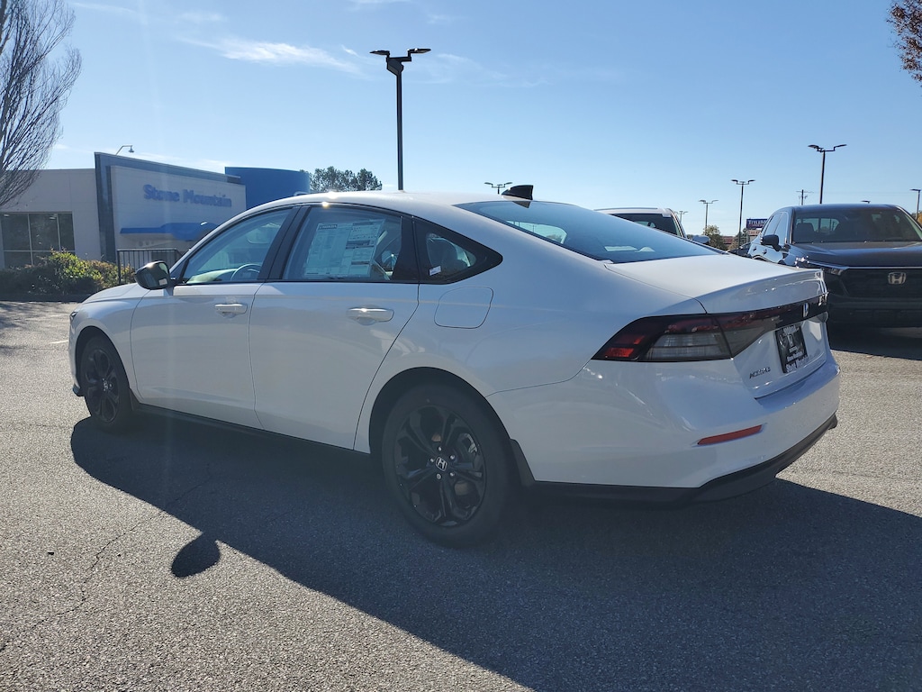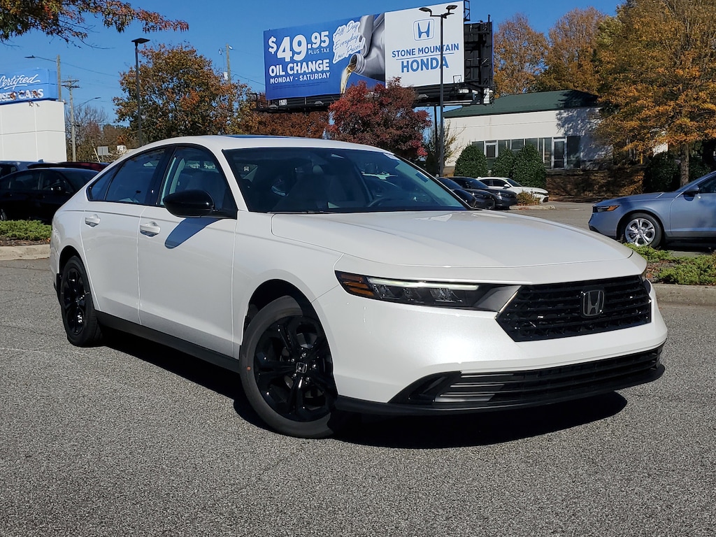 At Stone Mountain Honda, we pride ourselves in having the Largest Selection of New Hondas and the Best Prices in Gwinnett County and the Atlanta Metro. We have over 30 Lenders looking to compete for your business, so if you're looking for the best rate, First Time Buyer or looking to rebuild.. We Have a lender for you! 2025 Honda Accord SE FWD Platinum CVT 1.5T I4 DOHC 16V Turbocharged VTEC Cloth.