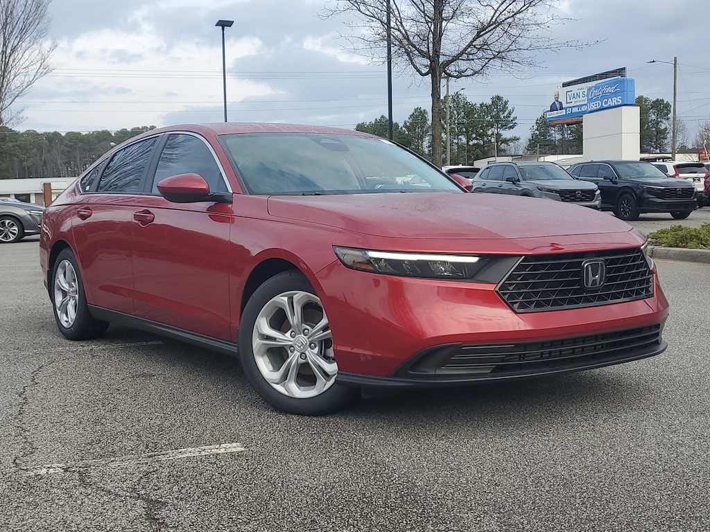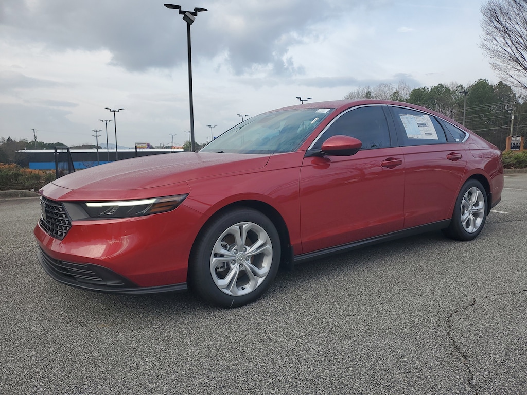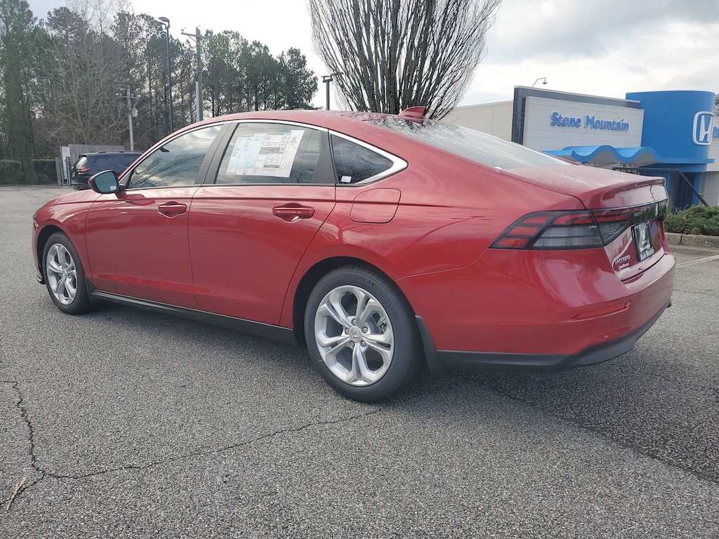 At Stone Mountain Honda, we pride ourselves in having the Largest Selection of New Hondas and the Best Prices in Gwinnett County and the Atlanta Metro. We have over 30 Lenders looking to compete for your business, so if you're looking for the best rate, First Time Buyer or looking to rebuild.. We Have a lender for you! 2025 Honda Accord LX FWD Radiant Red Metallic CVT 1.5T I4 DOHC 16V Turbocharged VTEC Gray w/Fabric Seat Trim.
