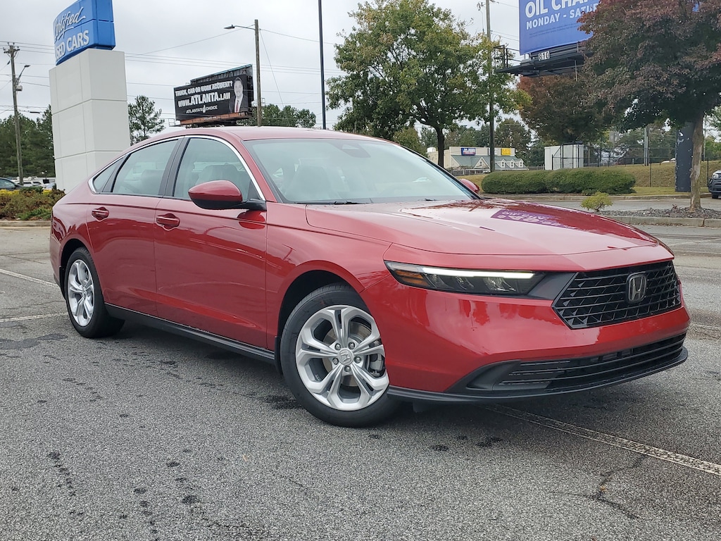 At Stone Mountain Honda, we pride ourselves in having the Largest Selection of New Hondas and the Best Prices in Gwinnett County and the Atlanta Metro. We have over 30 Lenders looking to compete for your business, so if you're looking for the best rate, First Time Buyer or looking to rebuild.. We Have a lender for you! 2025 Honda Accord LX FWD San Marino Red CVT 1.5T I4 DOHC 16V Turbocharged VTEC Cloth.