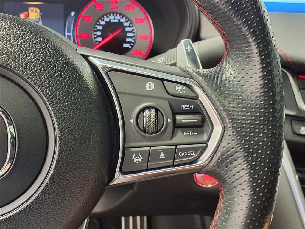 This vehicle comes equipped with: 17 Speakers, 4-Wheel Disc Brakes, ABS brakes, Acura Navigation System w/3D View, Air Conditioning, Alloy wheels, AM/FM radio: SiriusXM, Anti-whiplash front head restraints, Apple CarPlay/Android Auto, Auto High-beam Headlights, Auto-dimming Rear-View mirror, Automatic temperature control, Brake assist, Bumpers: body-color, Compass, Delay-off headlights, Driver door bin, Driver vanity mirror, Dual front impact airbags, Dual front side impact airbags, Electronic Stability Control, Emergency communication system: AcuraLink, Exterior Parking Camera Rear, Four wheel independent suspension, Front anti-roll bar, Front Bucket Seats, Front Center Armrest w/Storage, Front dual zone A/C, Front fog lights, Front reading lights, Garage door transmitter: HomeLink, Heated & Ventilated Front Sport Seats, Heated door mirrors, Heated front seats, HVAC memory, Illuminated entry, Knee airbag, Lane departure: Lane Keeping Assist System (LKAS) active, Leather steering wheel, Low tire pressure warning, Memory seat, Navigation system: Acura Navigation System with 3D View, Occupant sensing airbag, Outside temperature display, Overhead airbag, Overhead console, Panic alarm, Passenger door bin, Passenger vanity mirror, Power door mirrors, Power driver seat, Power moonroof, Power passenger seat, Power steering, Power windows, Prem Perf Milano & Ultrasuede Trimmed Interior, Premium audio system: Acura/ELS Surround, Radio data system, Radio: ELS Studio 3D Premium Audio System, Rear anti-roll bar, Rear reading lights, Rear seat center armrest, Rear window defroster, Remote keyless entry, Security system, Speed control, Speed-sensing steering, Speed-Sensitive Wipers, Split folding rear seat, Spoiler, Sport steering wheel, Steering wheel mounted audio controls, Tachometer, Telescoping steering wheel, Tilt steering wheel, Traction control, Trip computer, Turn signal indicator mirrors, Variably intermittent wipers, Ventilated front seats, and Wheels: 19 x 8.5 Shark Gray Interwoven.