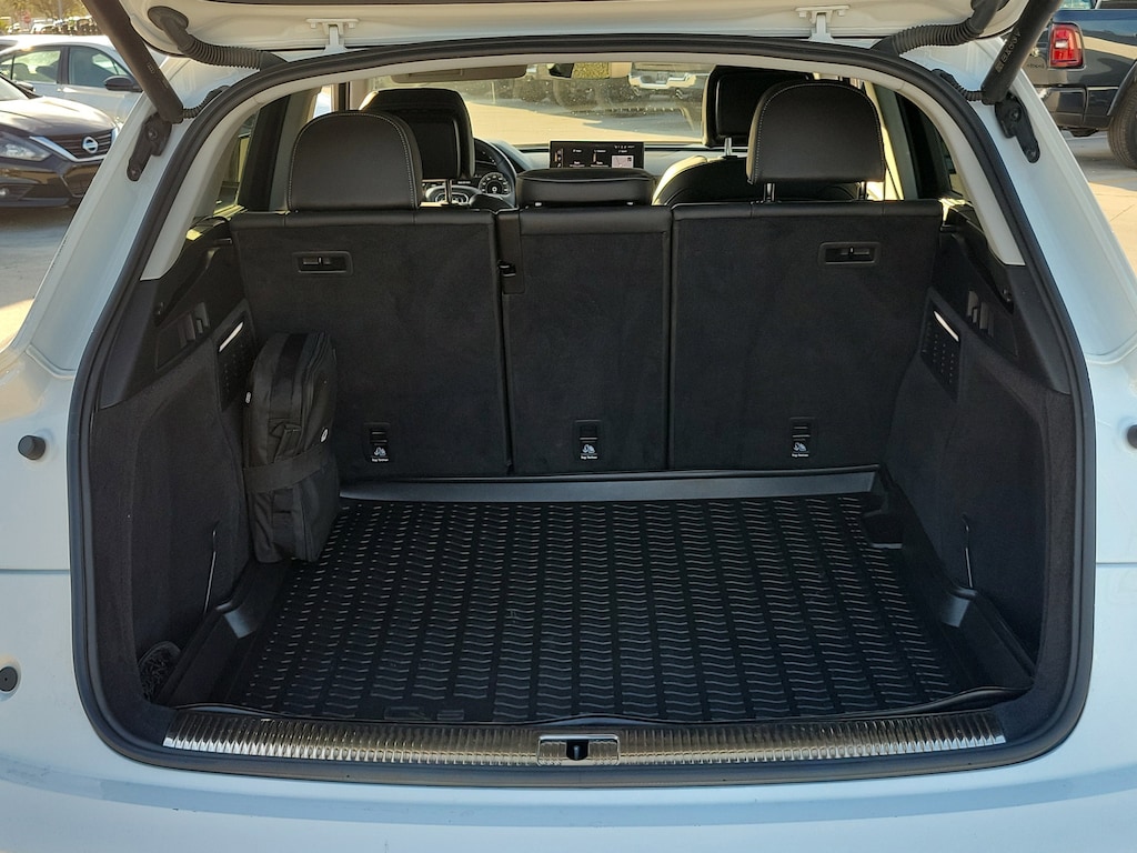 2021 Audi Q5 2.0L Turbocharged White Leather. This vehicle also comes equipped with: Leather, 10 Speakers, 4-Wheel Disc Brakes, 5.302 Axle Ratio, ABS brakes, Air Conditioning, Alloy wheels, AM/FM radio, Auto High-beam Headlights, Auto-dimming Rear-View mirror, Automatic temperature control, Brake assist, Bumpers: body-color, Compass, Delay-off headlights, Driver door bin, Driver vanity mirror, Dual front impact airbags, Dual front side impact airbags, Electronic Stability Control, Emergency communication system: Audi connect CARE, Exterior Parking Camera Rear, Four wheel independent suspension, Front anti-roll bar, Front Bucket Seats, Front Center Armrest, Front dual zone A/C, Front fog lights, Front reading lights, Garage door transmitter: HomeLink, Genuine wood console insert, Genuine wood dashboard insert, Genuine wood door panel insert, Heated 8-Way Power Front Bucket Seats, Heated door mirrors, Heated front seats, Illuminated entry, Leather Seating Surfaces, Leather Shift Knob, Low tire pressure warning, Occupant sensing airbag, Outside temperature display, Overhead airbag, Overhead console, Panic alarm, Passenger door bin, Passenger vanity mirror, Power door mirrors, Power driver seat, Power Liftgate, Power passenger seat, Power steering, Power windows, Radio data system, Radio: Audi Sound System, Rain sensing wipers, Rear air conditioning, Rear anti-roll bar, Rear fog lights, Rear reading lights, Rear seat center armrest, Rear window defroster, Rear window wiper, Remote keyless entry, Roof rack, Security system, Speed control, Speed-sensing steering, Speed-Sensitive Wipers, Split folding rear seat, Spoiler, Steering wheel mounted audio controls, Tachometer, Telescoping steering wheel, Tilt steering wheel, Traction control, Trip computer, Turn signal indicator mirrors, Variably intermittent wipers, and Wheels: 18 5-Arm-Star Design. quattro 7-Speed Automatic S tronic Recent Arrival! Odometer is 7463 miles below market average! 23/28 City/Highway MPG