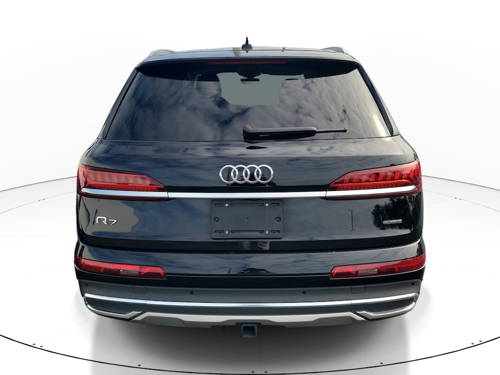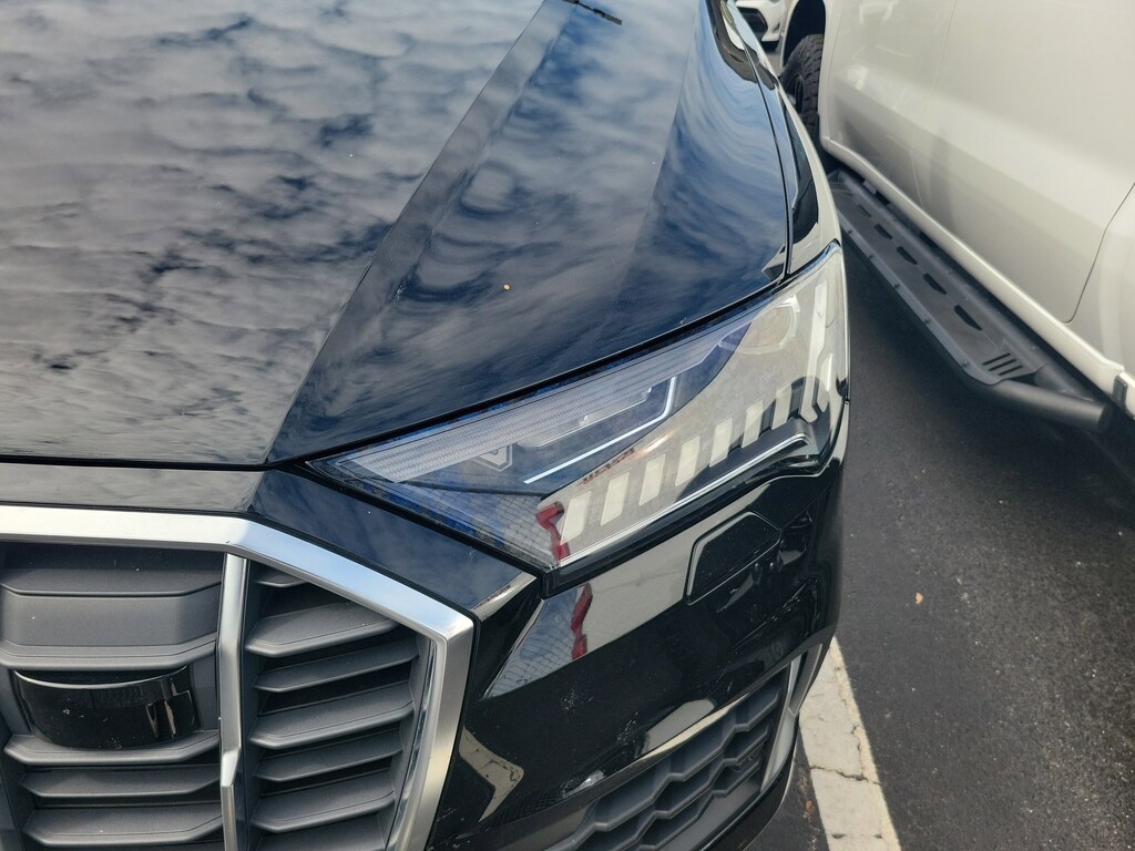 2023 Audi Q7 3.0L TFSI Black This vehicle also comes equipped with: 10 Speakers, 3.204 Axle Ratio, 3rd row seats: bench, 4-Wheel Disc Brakes, ABS brakes, Air Conditioning, Alloy wheels, AM/FM radio: SiriusXM w/ 360L, Auto High-beam Headlights, Auto-dimming door mirrors, Auto-dimming Rear-View mirror, Automatic temperature control, Brake assist, Bumpers: body-color, Compass, Delay-off headlights, Driver door bin, Driver vanity mirror, Dual front impact airbags, Dual front side impact airbags, Electronic Stability Control, Emergency communication system: Audi connect CARE, Exterior Parking Camera Rear, Four wheel independent suspension, Front anti-roll bar, Front Bucket Seats, Front Center Armrest, Front dual zone A/C, Front fog lights, Front reading lights, Fully automatic headlights, Garage door transmitter: HomeLink, Genuine wood door panel insert, Heated door mirrors, Heated Front Bucket Seats, Heated front seats, Illuminated entry, Leather Seating Surfaces, Leather Shift Knob, Leather steering wheel, Low tire pressure warning, Memory seat, Navigation system: Audi MMI Navigation plus with Touch Response, Occupant sensing airbag, Outside temperature display, Overhead airbag, Overhead console, Panic alarm, Passenger door bin, Passenger vanity mirror, Power door mirrors, Power driver seat, Power Liftgate, Power moonroof: Panoramic, Power passenger seat, Power steering, Power windows, Radio data system, Radio: Audi Sound System, Rain sensing wipers, Rear air conditioning, Rear anti-roll bar, Rear fog lights, Rear reading lights, Rear seat center armrest, Rear side impact airbag, Rear window defroster, Rear window wiper, Reclining 3rd row seat, Remote keyless entry, Roof rack: rails only, Security system, Speed control, Speed-sensing steering, Split folding rear seat, Spoiler, Steering wheel memory, Steering wheel mounted audio controls, Tachometer, Telescoping steering wheel, Tilt steering wheel, Traction control, Trip computer, Turn signal indicator mirrors, Variably intermittent wipers, and Wheels: 19 5-Arm-Star Design. quattro 8-Speed Automatic with Tiptronic Recent Arrival!