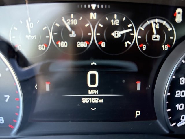 This vehicle comes equipped with: Advanced Security Package (Door Lock & Latch Shields, Inclination Sensor, Locking Wheel Lugs, Self-Powered Theft-Deterrent Alarm System, Steering Column Lock Control, and Vehicle Interior Movement Sensor), Driver Assist Package (Adaptive Full-Speed Range Cruise Control, Automatic Collision Braking, Automatic Parking Assist, Automatic Safety Belt Tightening, and Forward & Reverse Automatic Braking), Platinum Package 1SH (155 Amp Alternator, 8 Color Driver Information Center Display, Body-Color Heated Power-Adjustable Outside Mirrors, Front & Rear Park Assist, and Low Speed Forward Automatic Braking), 14 Speakers, 2-Way Power Driver Lumbar Control Seat Adjuster, 2-Way Power Passenger Lumbar Control Seat Adjuster, 3.20 Axle Ratio, 4-Wheel Disc Brakes, 8-Way Power Front Passenger Seat Adjuster, ABS brakes, Adaptive suspension, Air Conditioning, Alloy wheels, AM/FM radio: SiriusXM, Apple CarPlay/Android Auto, Auto High-beam Headlights, Auto-dimming door mirrors, Auto-dimming Rear-View mirror, Automatic temperature control, Bodyside moldings, Bose Studio Surround Sound w/14 Speakers, Brake assist, Bumpers: body-color, Compass, Delay-off headlights, Driver & Front Passenger Heated Seats, Driver door bin, Driver vanity mirror, Dual front impact airbags, Dual front side impact airbags, Electronic Stability Control, Emergency communication system: OnStar and Cadillac connected services capable, Exterior Parking Camera Rear, Four wheel independent suspension, Front anti-roll bar, Front Bucket Seats, Front Center Armrest, Front dual zone A/C, Front License Plate Bracket, Front reading lights, Fully automatic headlights, Garage door transmitter, Heated door mirrors, Heated front seats, Heated Rear Outboard Seating Positions, Heated rear seats, Heated steering wheel, Illuminated entry, Knee airbag, Lateral Mesh Cargo Net, Leather steering wheel, Low tire pressure warning, Memory seat, Navigation System, Occupant sensing airbag, Outside temperature display, Overhead airbag, Overhead console, Panic alarm, Passenger door bin, Passenger vanity mirror, Performance Suspension, Power door mirrors, Power driver seat, Power Liftgate, Power moonroof, Power passenger seat, Power steering, Power windows, Radio data system, Radio: Cadillac User Experience w/Embedded Nav, Rain sensing wipers, Rear air conditioning, Rear anti-roll bar, Rear reading lights, Rear seat center armrest, Rear window defroster, Rear window wiper, Remote keyless entry, Road Emergency Tool Kit, Roof rack: rails only, Security system, Semi-Aniline Full Leather Seats w/Chevron Perf Inserts, SiriusXM Satellite Radio, Speed control, Speed-sensing steering, Split folding rear seat, Spoiler, Steering wheel memory, Steering wheel mounted audio controls, Tachometer, Telescoping steering wheel, Tilt steering wheel, Traction control, Trip computer, Variably intermittent wipers, Ventilated Driver & Front Passenger Seats, Ventilated front seats, Voltmeter, Wheels: 20 Polished (LPO), and Wheels: 20 x 8 12-Spoke Fully Polished.