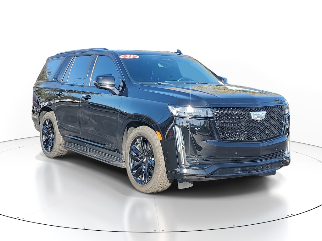 2021 Cadillac Escalade 6.2L V8 Black Raven Black Leather. This vehicle also comes equipped with: Driver Assist Tech Package (Adaptive Cruise Control, Air Ride Adaptive Suspension, Automatic Seat Belt Tightening, Enhanced Automatic Emergency Braking, Illuminating Front & Rear Sill Plates, Reverse Automatic Braking, and Soft Closing Front & Rear Doors), Preferred Equipment Group 1SC (Air Ionizer, AKG Studio 19-Speaker Audio System, Automatic Emergency Braking, Body-Color Door Handles, Door Lock & Latch Shields, Electronic Cruise Control w/Set & Resume Speed, Electronic Limited-Slip Differential, Enhanced Automatic Parking Assist, Glass Breakage Sensor, Hitch Guidance w/Hitch View, In-Vehicle Trailering System App, Integrated Trailer Brake Controller, Lane Keep Assist w/Lane Departure Warning, Power Panoramic Tilt-Sliding Sunroof, Rear Camera Mirror, Rear Camera Mirror Washer, Rear Cross Traffic Alert, Reconfigurable Full-Color Head-Up Display, Running Board Assist Steps, Theft-Deterrent Alarm System, Trailer Side Blind Zone Alert, Vehicle Inclination Sensor, and Vehicle Interior Movement Sensor), Black Leather, 16.9 Diagonal OLED Infotainment Screen, 19 Speakers, 2-Presets Memory For Driver Seat Adjuster, 3.23 Axle Ratio, 3rd row seats: split-bench, 4-Way Power Driver Lumbar Seat Adjuster, 4-Way Power Front Passenger Lumbar Seat Adjuster, 4-Wheel Disc Brakes, 8-Way Power Driver Seat Adjuster, 8-Way Power Front Passenger Seat Adjuster, ABS brakes, Adaptive suspension, Air Conditioning, Alloy wheels, AM/FM radio: SiriusXM with 360L, Apple CarPlay/Android Auto, Audio memory, Auto High-beam Headlights, Auto tilt-away steering wheel, Auto-dimming door mirrors, Auto-dimming Rear-View mirror, Automatic temperature control, Brake assist, Bumpers: body-color, Compass, Delay-off headlights, Driver door bin, Driver vanity mirror, Dual front impact airbags, Dual front side impact airbags, Electronic Stability Control, Emergency communication system: OnStar and Cadillac connected services capable, Four wheel independent suspension, Front anti-roll bar, Front Bucket Seats, Front Center Armrest w/Storage, Front dual zone A/C, Front reading lights, Fully automatic headlights, Garage door transmitter, HD Radio, Heads-Up Display, Heated & Ventilated Driver & Front Passenger Seats, Heated door mirrors, Heated Driver & Front Passenger Seats, Heated front seats, Heated rear seats, Heated steering wheel, Illuminated entry, Leather Seating Surfaces w/Precision Perf Inserts, Leather steering wheel, Low tire pressure warning, Magnetic Ride Control Suspension, Memory seat, Navigation System, Occupant sensing airbag, Outside temperature display, Overhead airbag, Overhead console, Panic alarm, Passenger door bin, Passenger vanity mirror, Power door mirrors, Power driver seat, Power Liftgate, Power moonroof, Power passenger seat, Power steering, Power windows, Radio data system, Radio: AM/FM/SiriusXM w/Navigation, Rain sensing wipers, Rear air conditioning, Rear anti-roll bar, Rear reading lights, Rear window defroster, Rear window wiper, Remote keyless entry, Roof rack: rails only, Security system, SiriusXM w/360L, Speed control, Split folding rear seat, Spoiler, Steering wheel memory, Steering wheel mounted audio controls, Tachometer, Teen Driver, Telescoping steering wheel, Tilt steering wheel, Traction control, Trip computer, Turn signal indicator mirrors, Variably intermittent wipers, Ventilated front seats, Voltmeter, Wheels: 22 12-Spoke Polished Alloy, and Wireless Apple CarPlay/Wireless Android Auto. RWD 10-Speed Automatic with Overdrive Priced below KBB Fair Purchase Price! Odometer is 7147 miles below market average!