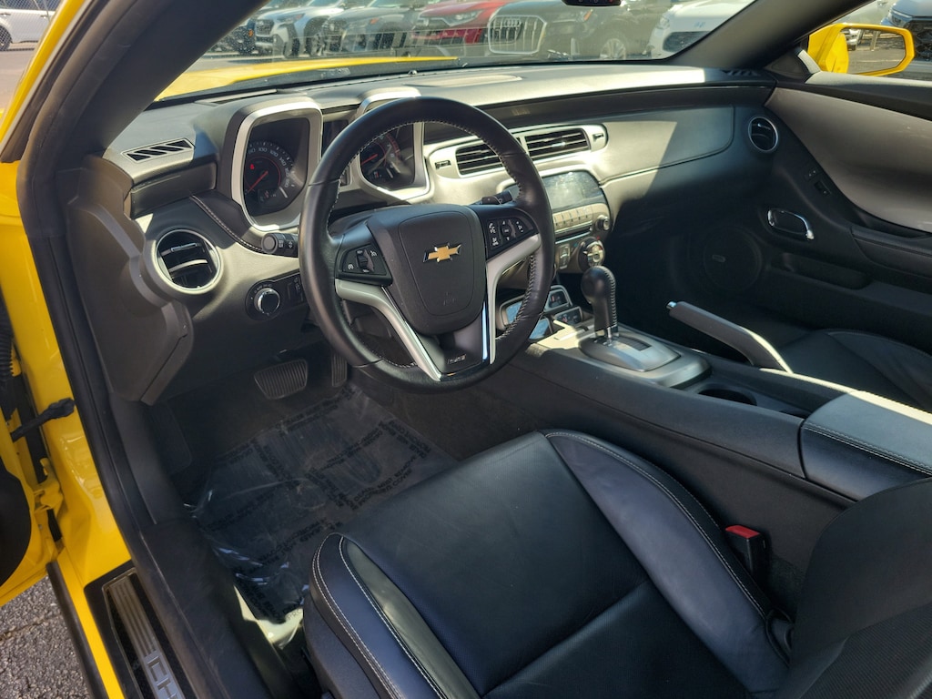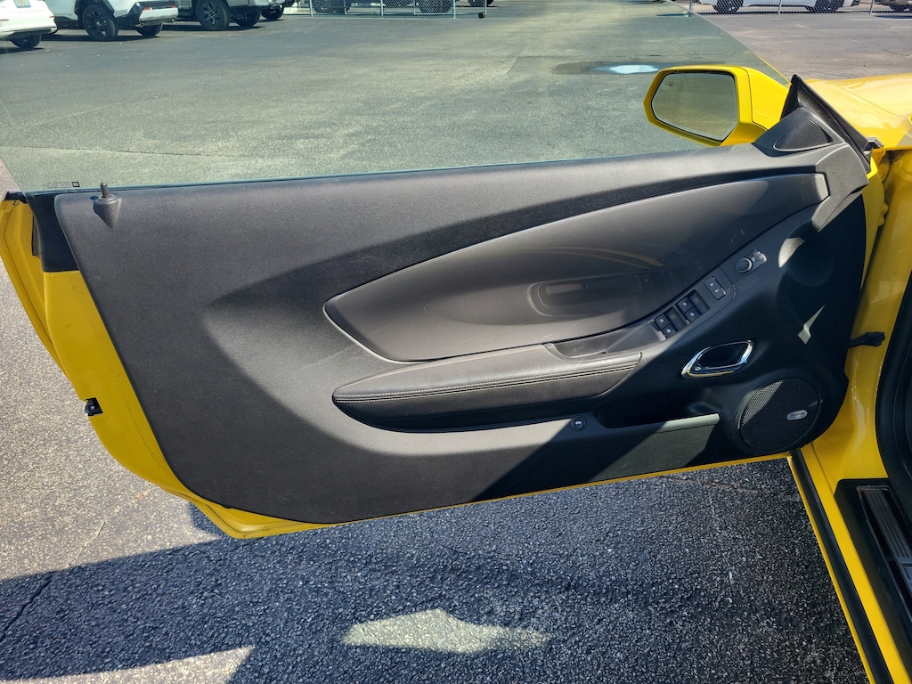 2012 Chevrolet Camaro 6.2L V8 SFI Rally Yellow This vehicle also comes equipped with: Black Hockey Stripe Package, Preferred Equipment Group 2SS (2 Front Cup Holders, 3-Spoke Leather-Wrapped Steering Wheel, 4-Wheel Antilock 4-Wheel Disc Brakes, Analog Instrumentation, Auxiliary Multi-Function Gauges, Bluetooth® For Phone, Boston Acoustics Premium 8-Speaker System, Carpeted Front Floor Mats, Electric Rear-Window Defogger, Electronic Cruise Control, Head-Up Display, Heated Driver & Front Passenger Seats, LATCH System, Leather Seat Trim, Leather-Wrapped Shift Knob, Maintenance-Free Battery, Manual Rake & Telescopic Steering Column, OnStar 6 Months Directions & Connections Plan, Power Programmable Door Locks, Remote Keyless Entry, SIRIUSXM Satellite Radio, StabiliTrak, Stainless-Steel Dual-Outlet Exhaust, Steering Wheel Mounted Audio Controls, Tonneau Cover, Ultrasonic Rear Park Assist, Universal Home Remote, USB Port Audio System Feature, and Wireless PDIM), RS Package (High-Intensity Discharge Headlamps), 20 x 8 Front & 20 x 9 Rear Aluminum Wheels, 3.27 Axle Ratio, 4-Wheel Disc Brakes, 9 Speakers, ABS brakes, Air Conditioning, Alloy wheels, AM/FM radio: SiriusXM, Auto-dimming door mirrors, Auto-dimming Rear-View mirror, Brake assist, Bumpers: body-color, CD player, Compass, Convertible roof lining, Delay-off headlights, Driver door bin, Driver vanity mirror, Dual front impact airbags, Dual front side impact airbags, Electronic Stability Control, Emergency communication system: OnStar Directions & Connections, Exterior Parking Camera Rear, Four wheel independent suspension, Front anti-roll bar, Front Bucket Seats, Front Center Armrest, Front fog lights, Front License Plate Bracket, Front reading lights, Front Sport Bucket Seats, Fully automatic headlights, Garage door transmitter, Glass rear window, Heads-Up Display, Heated door mirrors, Heated front seats, Illuminated entry, Leather Seating Surfaces, Leather Shift Knob, Low tire pressure warning, Occupant sensing airbag, Outside temperature display, Panic alarm, Passenger door bin, Passenger vanity mirror, Power convertible roof, Power door mirrors, Power driver seat, Power passenger seat, Power steering, Power windows, Radio data system, Radio: AM/FM Stereo w/CD-ROM/MP3 Playback, Rear anti-roll bar, Rear window defroster, Remote keyless entry, Remote Vehicle Starter System, Security system, Speed control, Speed-sensing steering, Spoiler, Steering wheel mounted audio controls, Tachometer, Telescoping steering wheel, Tilt steering wheel, Traction control, Trip computer, Variably intermittent wipers, and Voltmeter. RWD 6-Speed Automatic with TapShift Odometer is 42648 miles below market average!