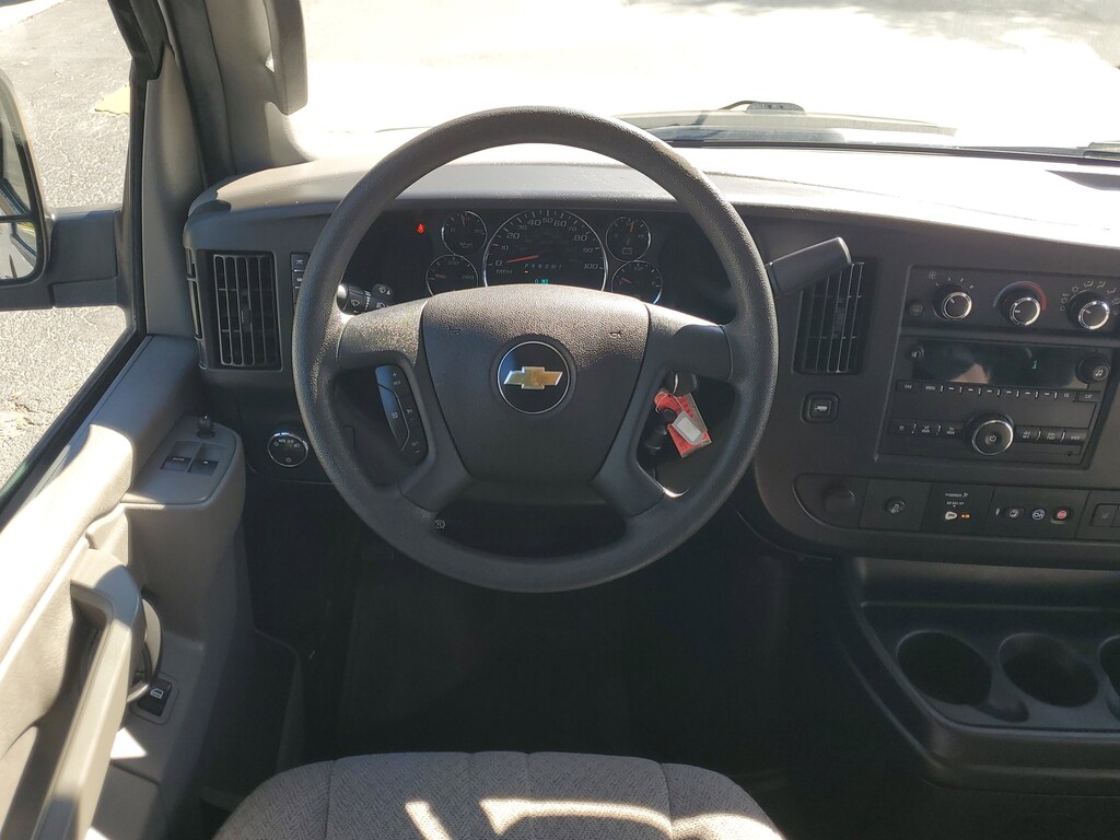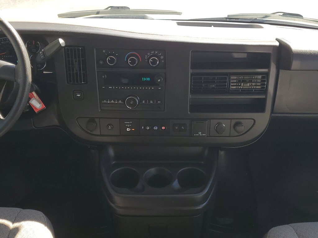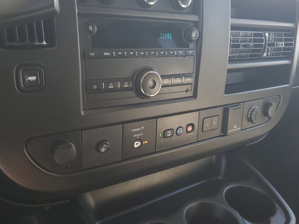 THIS VEHICLE IS EQUIPT WITH THE FOLLOWING FEATURES AND OPTIONS: Chrome Appearance Package (Chrome Grille and Front & Rear Chrome Bumpers w/Step-Pad), Preferred Equipment Group 1LT (Deluxe Console w/Swing Out Storage Bin, Forward Collision Alert, Full-Floor Color-Keyed Carpeting, Lane Departure Warning System, Remote Keyless Entry, Theft Alarm Notification, and Wheel Trim w/Chrome Center Caps), 12-Passenger Seating (2-3-3-4 Seating Config), 16 x 6.5 Steel Wheels, 2 Speakers, 3.42 Rear Axle Ratio, 3rd row seats: bench, 4-Wheel Disc Brakes, 4th-Row Bench Seat, 6-Way Power Driver Seat Adjuster, ABS brakes, Air Conditioning, AM/FM radio, AM/FM Stereo w/MP3 Player, Bumpers: chrome, Compass, Custom Cloth Seat Trim, Delay-off headlights, Driver door bin, Driver vanity mirror, Driver's Seat Mounted Armrest, Dual front impact airbags, Dual front side impact airbags, Electric Rear-Window Defogger, Electronic Stability Control, Emergency communication system, Exterior Parking Camera Rear, Front anti-roll bar, Front Bucket Seats, Front reading lights, Front wheel independent suspension, Fully automatic headlights, Heavy-Duty Rear Locking Differential, Illuminated entry, Low tire pressure warning, Occupant sensing airbag, Overhead airbag, Panic alarm, Passenger cancellable airbag, Passenger door bin, Passenger seat mounted armrest, Passenger vanity mirror, Power steering, Power windows, Power-Adjustable Black Outside Heated Mirrors, Radio: AM/FM Stereo w/MP3 Player/Seek & Scan, Rear air conditioning, Rear reading lights, Reclining Front Bucket Seats w/Inboard Armrests, Remote keyless entry, Security system, Sliding Passenger-Side Door, Speed control, Tachometer, Tilt steering wheel, Traction control, Trip computer, USB Port, Variably intermittent wipers, and Voltmeter.