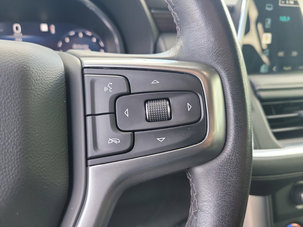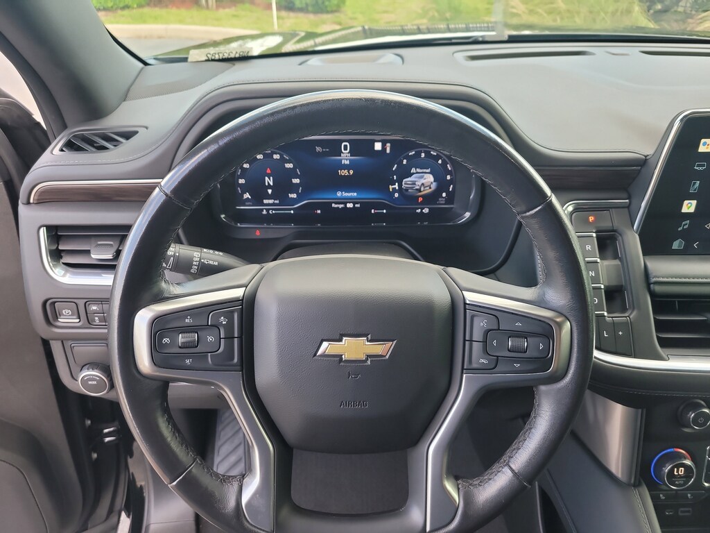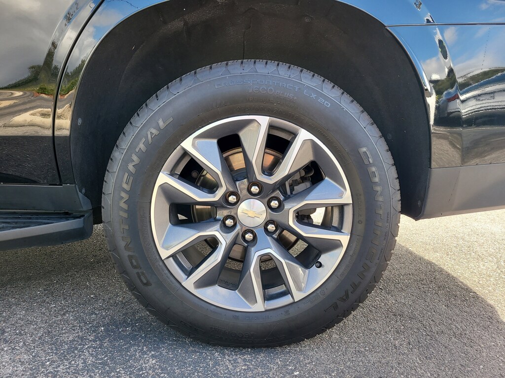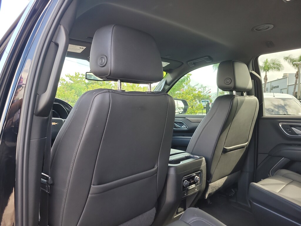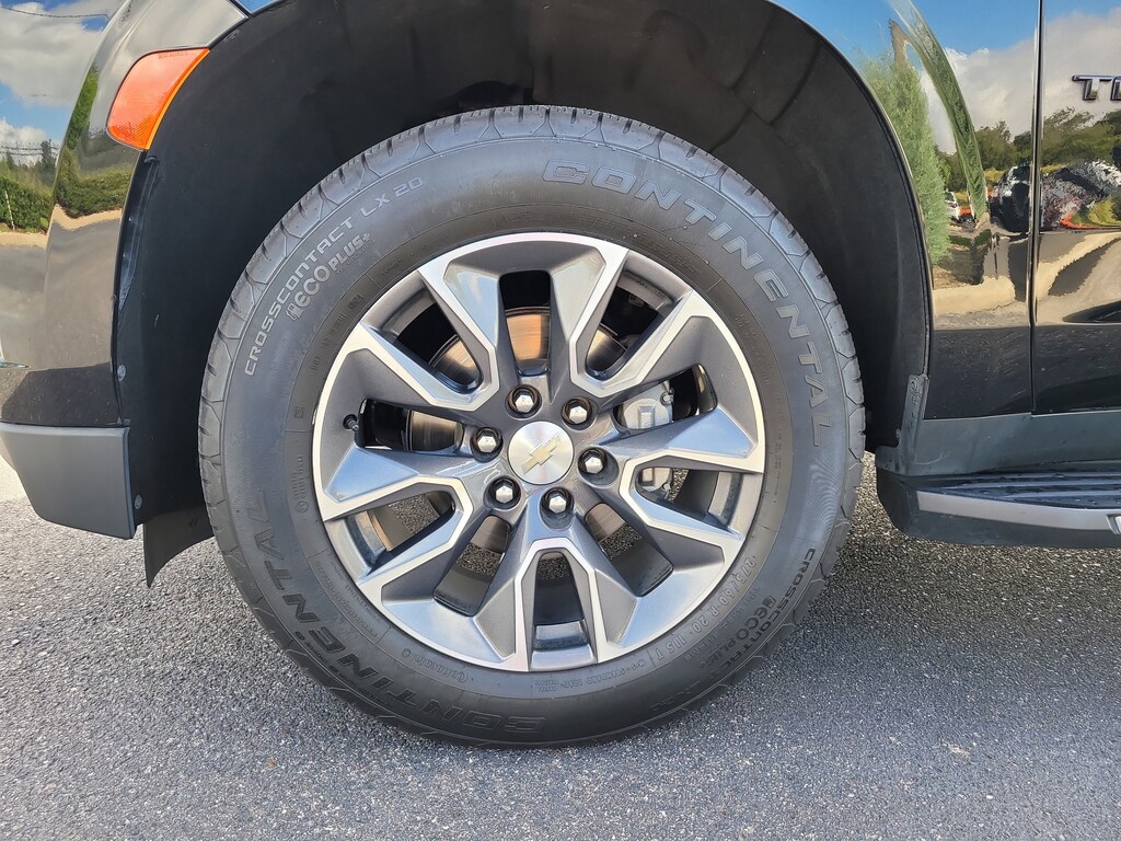 This Vehicle is nicely equipped with the following features: Preferred Equipment Group 1LT (1st & 2nd Row Color-Keyed Carpeted Floor Mats, Auto-Dimming Inside Rear-View Mirror, Automatic Stop/Start, Bose 9-Speaker Stereo Audio System Feature, Bright Front & Rear Door Sill Plates, Color-Keyed Carpeting Floor Covering, Driver & Front Outboard Passenger Airbags, Enhanced Driver Information Center, Floor Console w/Storage Area, Hands-Free Rear Power Programmable Liftgate, Infotainment Display, Leather-Wrapped Steering Wheel, LED Daytime Running Lamps, Memory Settings for Driver, Remote Start, SiriusXM Radio w/360L, Start/Stop System Disable Button, Universal Home Remote, and Wireless Charging), Black Leather, 10-Way Power Driver & Passenger Seat Adjusters, 2nd Row Manual Bucket Seats, 3.23 Rear Axle Ratio, 3rd row seats: split-bench, 4-Wheel Disc Brakes, 9 Speakers, ABS brakes, Air Conditioning, Alloy wheels, AM/FM radio: SiriusXM with 360L, Apple CarPlay/Android Auto, Auto High-beam Headlights, Auto-dimming Rear-View mirror, Automatic temperature control, Black Name Plates (LPO), Brake assist, Bumpers: body-color, Compass, Delay-off headlights, Driver door bin, Driver vanity mirror, Dual front impact airbags, Dual front side impact airbags, Electronic Stability Control, Emergency communication system: OnStar and Chevrolet connected services capable, Four wheel independent suspension, Front & Rear Black Bowtie Emblems (LPO), Front anti-roll bar, Front Bucket Seats, Front Center Armrest, Front dual zone A/C, Front High-Back Reclining Bucket Seats, Front reading lights, Fully automatic headlights, Garage door transmitter, Heated door mirrors, Heated Driver & Front Passenger Seats, Heated front seats, Illuminated entry, Leather steering wheel, Leather-Appointed Seat Trim, Low tire pressure warning, Memory seat, Navigation System, Not Equipped w/Steering Column Lock, Occupant sensing airbag, Outside temperature display, Overhead airbag, Overhead console, Panic alarm, Passenger door bin, Passenger vanity mirror, Power door mirrors, Power driver seat, Power Liftgate, Power passenger seat, Power steering, Power windows, Premium audio system: Chevrolet Infotainment System 3, Premium Smooth Ride Suspension, Radio: Chevrolet Infotainment 3 Premium System, Rain sensing wipers, Rear air conditioning, Rear anti-roll bar, Rear reading lights, Rear seat center armrest, Rear window defroster, Rear window wiper, Remote keyless entry, Roof rack: rails only, Security system, Speed control, Speed-sensing steering, Split folding rear seat, Spoiler, Steering wheel mounted audio controls, Tachometer, Telescoping steering wheel, Tilt steering wheel, Traction control, Trip computer, Variably intermittent wipers, Voltmeter, Wheels: 18" x 8.5" Bright Silver Painted Aluminum, and Wheels: 20" x 9" Painted Aluminum.