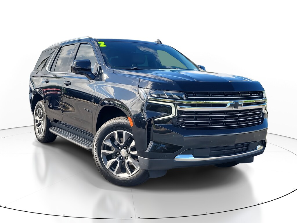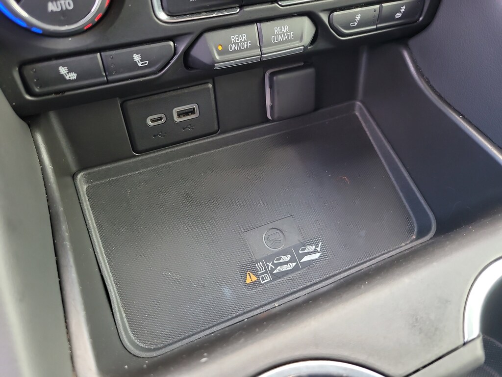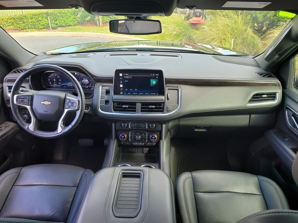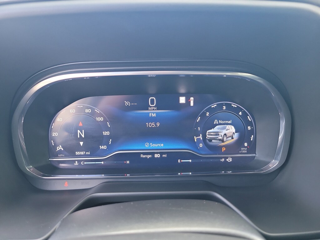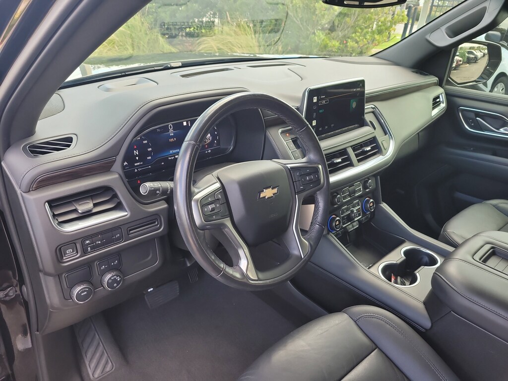 This Vehicle is nicely equipped with the following features: Preferred Equipment Group 1LT (1st & 2nd Row Color-Keyed Carpeted Floor Mats, Auto-Dimming Inside Rear-View Mirror, Automatic Stop/Start, Bose 9-Speaker Stereo Audio System Feature, Bright Front & Rear Door Sill Plates, Color-Keyed Carpeting Floor Covering, Driver & Front Outboard Passenger Airbags, Enhanced Driver Information Center, Floor Console w/Storage Area, Hands-Free Rear Power Programmable Liftgate, Infotainment Display, Leather-Wrapped Steering Wheel, LED Daytime Running Lamps, Memory Settings for Driver, Remote Start, SiriusXM Radio w/360L, Start/Stop System Disable Button, Universal Home Remote, and Wireless Charging), Black Leather, 10-Way Power Driver & Passenger Seat Adjusters, 2nd Row Manual Bucket Seats, 3.23 Rear Axle Ratio, 3rd row seats: split-bench, 4-Wheel Disc Brakes, 9 Speakers, ABS brakes, Air Conditioning, Alloy wheels, AM/FM radio: SiriusXM with 360L, Apple CarPlay/Android Auto, Auto High-beam Headlights, Auto-dimming Rear-View mirror, Automatic temperature control, Black Name Plates (LPO), Brake assist, Bumpers: body-color, Compass, Delay-off headlights, Driver door bin, Driver vanity mirror, Dual front impact airbags, Dual front side impact airbags, Electronic Stability Control, Emergency communication system: OnStar and Chevrolet connected services capable, Four wheel independent suspension, Front & Rear Black Bowtie Emblems (LPO), Front anti-roll bar, Front Bucket Seats, Front Center Armrest, Front dual zone A/C, Front High-Back Reclining Bucket Seats, Front reading lights, Fully automatic headlights, Garage door transmitter, Heated door mirrors, Heated Driver & Front Passenger Seats, Heated front seats, Illuminated entry, Leather steering wheel, Leather-Appointed Seat Trim, Low tire pressure warning, Memory seat, Navigation System, Not Equipped w/Steering Column Lock, Occupant sensing airbag, Outside temperature display, Overhead airbag, Overhead console, Panic alarm, Passenger door bin, Passenger vanity mirror, Power door mirrors, Power driver seat, Power Liftgate, Power passenger seat, Power steering, Power windows, Premium audio system: Chevrolet Infotainment System 3, Premium Smooth Ride Suspension, Radio: Chevrolet Infotainment 3 Premium System, Rain sensing wipers, Rear air conditioning, Rear anti-roll bar, Rear reading lights, Rear seat center armrest, Rear window defroster, Rear window wiper, Remote keyless entry, Roof rack: rails only, Security system, Speed control, Speed-sensing steering, Split folding rear seat, Spoiler, Steering wheel mounted audio controls, Tachometer, Telescoping steering wheel, Tilt steering wheel, Traction control, Trip computer, Variably intermittent wipers, Voltmeter, Wheels: 18" x 8.5" Bright Silver Painted Aluminum, and Wheels: 20" x 9" Painted Aluminum.