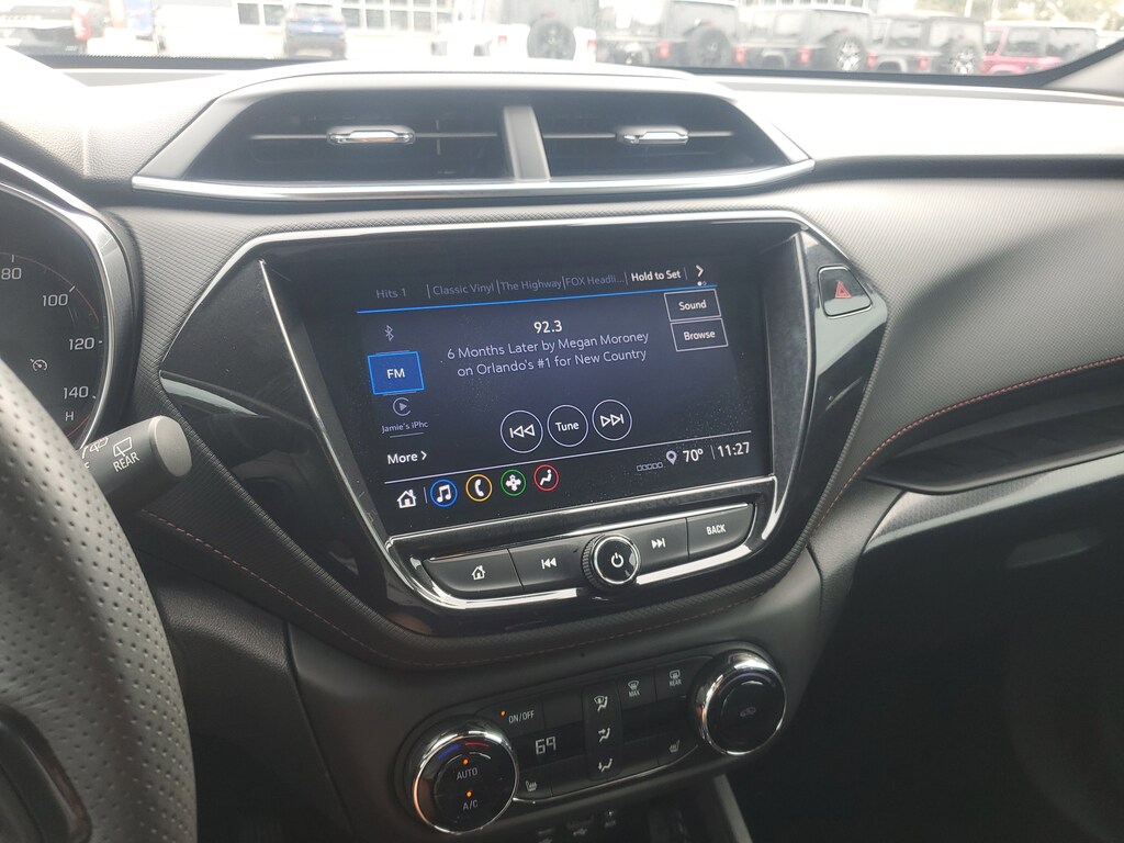 This Vehicle comes equipped with: Convenience Package (1 Type-A & 1 Type-C USB Charging-Only Ports, 120-Volt Power Outlet, 8" Diagonal Color Touchscreen Display, Cabin Humidity Sensor, Driver & Front Passenger Illuminated Vanity Mirrors, Inside Rear-View Auto-Dimming Mirror, and Single-Zone Auto Climate Control Air Conditioning), Driver Confidence Package (Lane Change Alert w/Side Blind Zone Alert, Rear Cross Traffic Alert, and Rear Park Assist), Preferred Equipment Group 1RS (Heated Steering Wheel), 2-Way Power Driver Lumbar Seat Adjuster, 4-Way Manual Front Passenger Seat Adjuster, 4-Wheel Disc Brakes, 5.45 Axle Ratio, 6 Speakers, 6-Speaker Audio System Feature, 8-Way Power Driver Seat Adjuster, ABS brakes, Air Conditioning, Alloy wheels, AM/FM radio: SiriusXM, Auto High-beam Headlights, Brake assist, Bumpers: body-color, Cloth w/Leatherette Seat Trim, Compass, Delay-off headlights, Driver door bin, Driver vanity mirror, Dual front impact airbags, Dual front side impact airbags, Electronic Stability Control, Emergency communication system: OnStar and Chevrolet connected services capable, Exterior Parking Camera Rear, Flat-Folding Front Passenger Seatback, Front anti-roll bar, Front Bucket Seats, Front Center Armrest, Front fog lights, Front License Plate Bracket, Front reading lights, Front wheel independent suspension, Fully automatic headlights, Heated door mirrors, Heated Driver & Front Passenger Seats, Heated front seats, Heated steering wheel, Illuminated entry, Knee airbag, Leather Shift Knob, Leather steering wheel, Low tire pressure warning, Mosaic Black Metallic Two-Tone Roof, Occupant sensing airbag, Overhead airbag, Overhead console, Panic alarm, Passenger door bin, Passenger vanity mirror, Power door mirrors, Power driver seat, Power steering, Power windows, Radio data system, Radio: Chevrolet Infotainment 3 System, Rear seat center armrest, Rear side impact airbag, Rear window defroster, Rear window wiper, Remote keyless entry, Ride & Handling Suspension, Roof rack: rails only, Security system, SiriusXM Radio, Speed control, Split folding rear seat, Spoiler, Steering wheel mounted audio controls, Tachometer, Telescoping steering wheel, Tilt steering wheel, Traction control, Trip computer, Variably intermittent wipers, Wheels: 18" High Gloss Black Machined Aluminum, and Wireless Apple CarPlay/Android Auto.