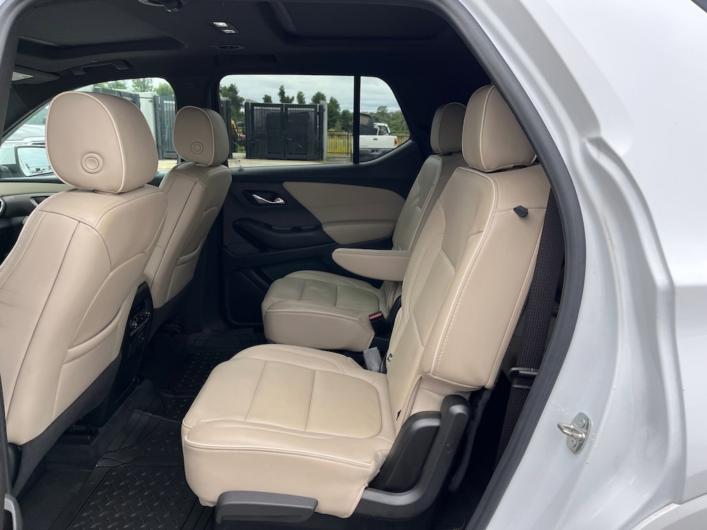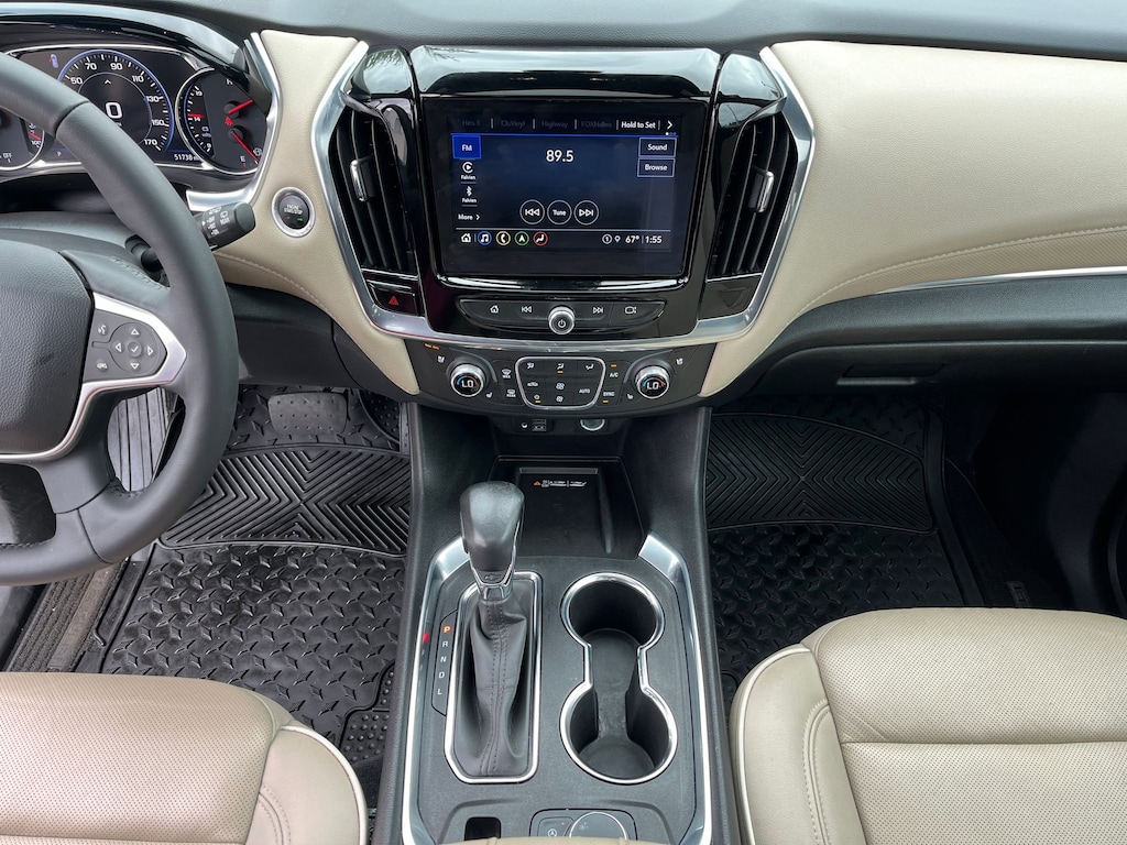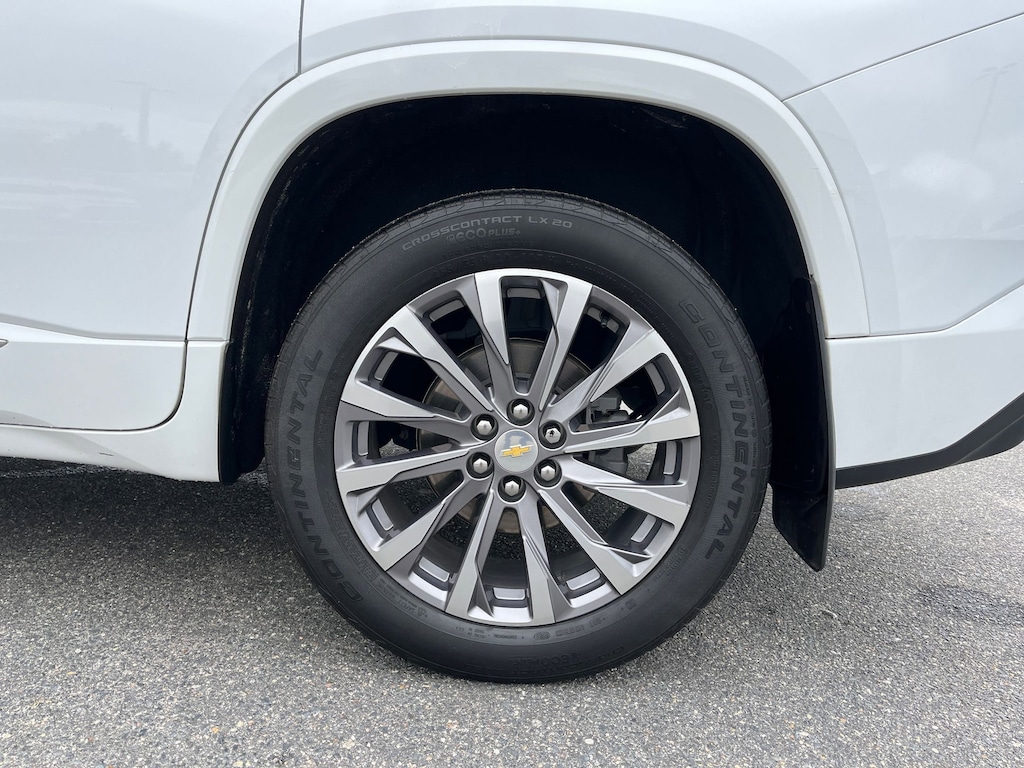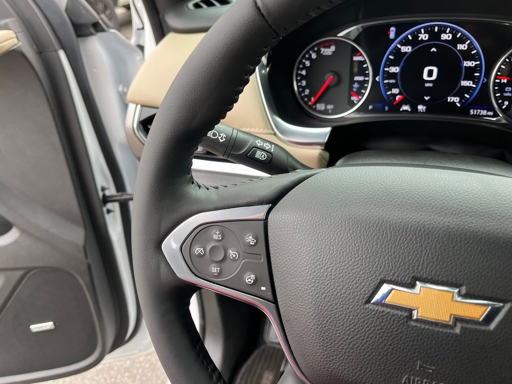 This vehicle comes equipped with : Front License Plate Bracket Mounting Package, Preferred Equipment Group 1LZ (Heated 2nd Row Outboard Position Seats, Heated Driver & Front Passenger Seats, Heated Steering Wheel, Rear Park Assist w/Audible Warning, and Ventilated Driver & Front Passenger Seats), Premium Carpet Floor Mat Package (LPO) (1st & 2nd Row Premium Carpeted Floor Mats (LPO) and 3rd Row Premium Carpeted Floor Mat (LPO)), 10 Speakers, 3.49 Axle Ratio, 3rd row seats: split-bench, 4-Wheel Disc Brakes, 6-Way Power Front Passenger Seat, 8-Way Power Driver Seat Adjuster, ABS brakes, Air Conditioning, Alloy wheels, AM/FM radio: SiriusXM with 360L, Apple CarPlay/Android Auto, Auto High-beam Headlights, Auto-dimming door mirrors, Auto-dimming Rear-View mirror, Automatic temperature control, Bose Premium 10-Speaker Audio System Feature, Brake assist, Bumpers: body-color, Compass, Delay-off headlights, Driver door bin, Driver vanity mirror, Dual front impact airbags, Dual front side impact airbags, Dual SkyScape 2-Panel Power Sunroof, Electronic Stability Control, Emergency communication system: OnStar Guidance, Four wheel independent suspension, Front anti-roll bar, Front Bucket Seats, Front Center Armrest, Front dual zone A/C, Front Passenger 2-Way Power Lumbar, Front reading lights, Fully automatic headlights, Garage door transmitter, Heated door mirrors, Heated front seats, Heated rear seats, Heated steering wheel, Illuminated entry, Leather steering wheel, Low tire pressure warning, Memory seat, Navigation System, Not Equipped w/Dr & Fr Pass Heated or Ventilated Seats, Not Equipped w/Heated Rear Outboard Seats (DISC), Not Equipped w/Heated Steering Wheel, Occupant sensing airbag, Outside temperature display, Overhead airbag, Overhead console, Panic alarm, Passenger door bin, Passenger vanity mirror, Perforated Leather-Appointed Seat Trim, Power door mirrors, Power Driver Lumbar Control, Power driver seat, Power Liftgate, Power passenger seat, Power steering, Power windows, Premium audio system: Chevrolet Infotainment 3 Plus, Radio data system, Radio: Chevrolet Infotainment 3 Plus System w/Navi, Rear air conditioning, Rear anti-roll bar, Rear reading lights, Rear window defroster, Rear window wiper, Remote keyless entry, Roof rack: rails only, Security system, SiriusXM w/360L, Speed control, Speed-sensing steering, Spoiler, Steering wheel memory, Steering wheel mounted audio controls, Tachometer, Telescoping steering wheel, Tilt steering wheel, Traction control, Trip computer, Turn signal indicator mirrors, Variably intermittent wipers, Ventilated front seats, Voltmeter, and Wheels: 20" Metallic Machined-Face Aluminum.