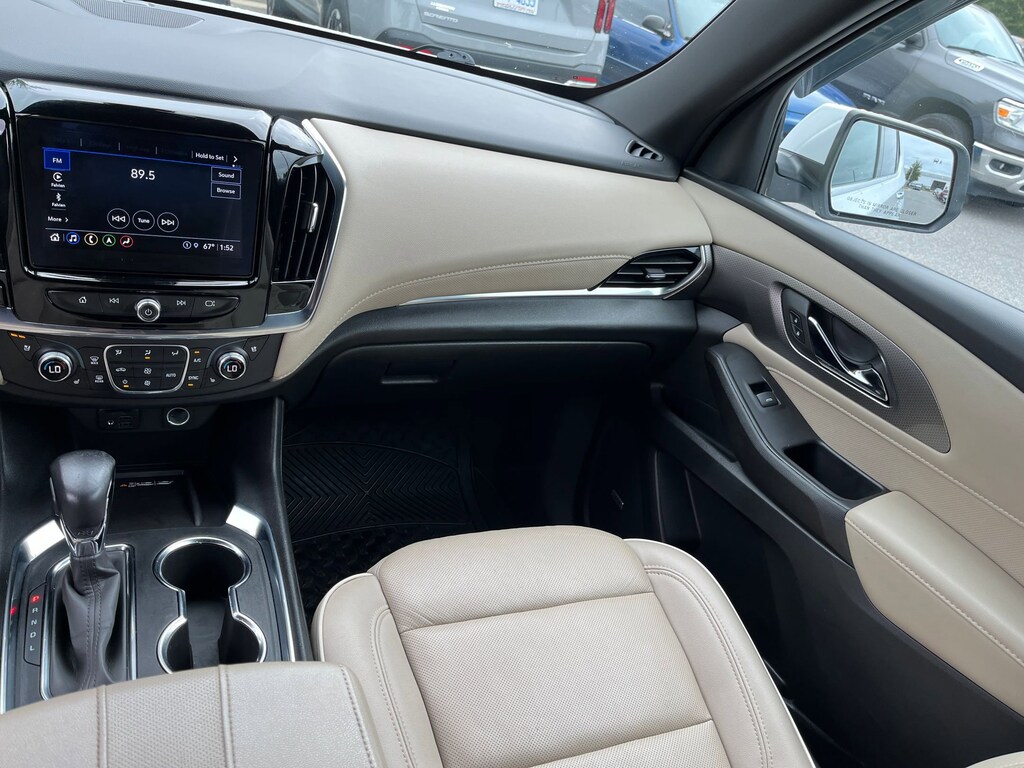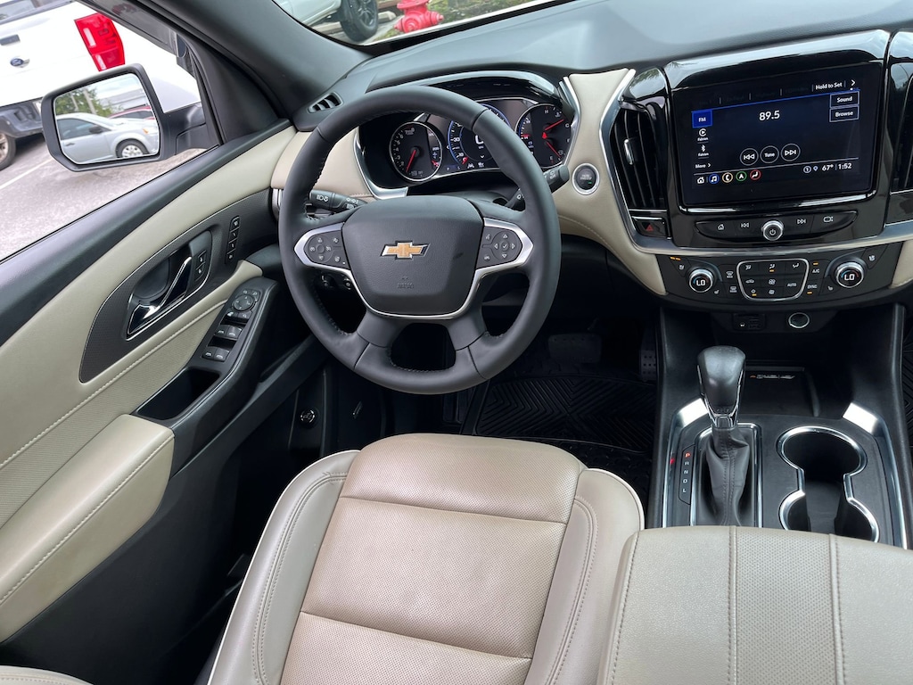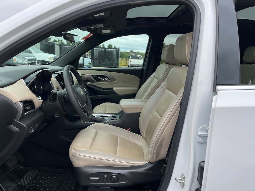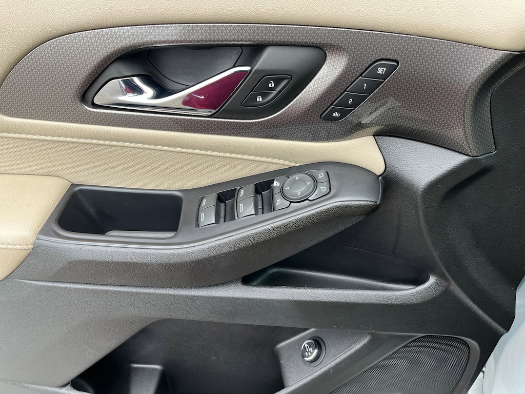 This vehicle comes equipped with : Front License Plate Bracket Mounting Package, Preferred Equipment Group 1LZ (Heated 2nd Row Outboard Position Seats, Heated Driver & Front Passenger Seats, Heated Steering Wheel, Rear Park Assist w/Audible Warning, and Ventilated Driver & Front Passenger Seats), Premium Carpet Floor Mat Package (LPO) (1st & 2nd Row Premium Carpeted Floor Mats (LPO) and 3rd Row Premium Carpeted Floor Mat (LPO)), 10 Speakers, 3.49 Axle Ratio, 3rd row seats: split-bench, 4-Wheel Disc Brakes, 6-Way Power Front Passenger Seat, 8-Way Power Driver Seat Adjuster, ABS brakes, Air Conditioning, Alloy wheels, AM/FM radio: SiriusXM with 360L, Apple CarPlay/Android Auto, Auto High-beam Headlights, Auto-dimming door mirrors, Auto-dimming Rear-View mirror, Automatic temperature control, Bose Premium 10-Speaker Audio System Feature, Brake assist, Bumpers: body-color, Compass, Delay-off headlights, Driver door bin, Driver vanity mirror, Dual front impact airbags, Dual front side impact airbags, Dual SkyScape 2-Panel Power Sunroof, Electronic Stability Control, Emergency communication system: OnStar Guidance, Four wheel independent suspension, Front anti-roll bar, Front Bucket Seats, Front Center Armrest, Front dual zone A/C, Front Passenger 2-Way Power Lumbar, Front reading lights, Fully automatic headlights, Garage door transmitter, Heated door mirrors, Heated front seats, Heated rear seats, Heated steering wheel, Illuminated entry, Leather steering wheel, Low tire pressure warning, Memory seat, Navigation System, Not Equipped w/Dr & Fr Pass Heated or Ventilated Seats, Not Equipped w/Heated Rear Outboard Seats (DISC), Not Equipped w/Heated Steering Wheel, Occupant sensing airbag, Outside temperature display, Overhead airbag, Overhead console, Panic alarm, Passenger door bin, Passenger vanity mirror, Perforated Leather-Appointed Seat Trim, Power door mirrors, Power Driver Lumbar Control, Power driver seat, Power Liftgate, Power passenger seat, Power steering, Power windows, Premium audio system: Chevrolet Infotainment 3 Plus, Radio data system, Radio: Chevrolet Infotainment 3 Plus System w/Navi, Rear air conditioning, Rear anti-roll bar, Rear reading lights, Rear window defroster, Rear window wiper, Remote keyless entry, Roof rack: rails only, Security system, SiriusXM w/360L, Speed control, Speed-sensing steering, Spoiler, Steering wheel memory, Steering wheel mounted audio controls, Tachometer, Telescoping steering wheel, Tilt steering wheel, Traction control, Trip computer, Turn signal indicator mirrors, Variably intermittent wipers, Ventilated front seats, Voltmeter, and Wheels: 20" Metallic Machined-Face Aluminum.