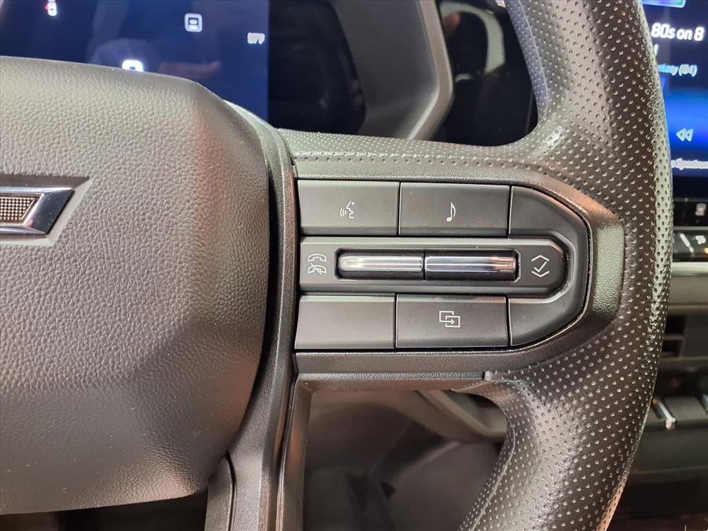 This vehicle comes equipped with: Advanced Trailering Package (Trailering App), Heavy-Duty Trailering Package (Integrated Trailer Brake Controller), Preferred Equipment Group 0TR (Automatic Emergency Braking, Chevy Safety Assist, Following Distance Indicator, Forward Collision Alert, Front Pedestrian & Bicyclist Braking, IntelliBeam Automatic High Beam On/Off, and Lane Keep Assist w/Lane Departure Warning), Trail Boss Convenience Package (Electronic Automatic Cruise Control, Manual Rear-Sliding Window, and Rear-Window Electric Defogger), 4WD, 220 Amp Generator, 3.42 Rear Axle Ratio, 4-Way Manual Passenger Seat Adjuster, 4-Wheel Disc Brakes, 6 Speakers, 6-Speaker Audio System Feature, 6-Way Manual Driver Seat Adjuster, ABS brakes, Air Conditioning, Alloy wheels, AM/FM radio: SiriusXM, Apple CarPlay/Android Auto, Auto High-beam Headlights, Black Bowtie Emblem (LPO) (DISC), Brake assist, Cloth Seat Trim, Compass, Delay-off headlights, Driver door bin, Driver vanity mirror, Dual front impact airbags, Dual front side impact airbags, Electronic Stability Control, Front anti-roll bar, Front Bucket Seats, Front Center Armrest, Front License Plate Kit, Front wheel independent suspension, Illuminated entry, Low tire pressure warning, Navigation System, Occupant sensing airbag, Off-Road Assist Steps (LPO), Outside temperature display, Overhead airbag, Overhead console, Panic alarm, Passenger door bin, Passenger vanity mirror, Power door mirrors, Power steering, Power windows, Radio data system, Radio: 11.3 Diagonal Advanced Color LCD Display, Rear reading lights, Rear step bumper, Remote keyless entry, Security system, SiriusXM Radio, Speed-sensing steering, Split folding rear seat, Steering Wheel Mounted Audio Controls, Steering wheel mounted audio controls, Tachometer, Tech Bronze Recovery Hooks (LPO), Tilt steering wheel, Traction control, Trip computer, Variably intermittent wipers, Wheels: 18 x 8.5 Black High Gloss Aluminum, and Wireless Phone Projection.