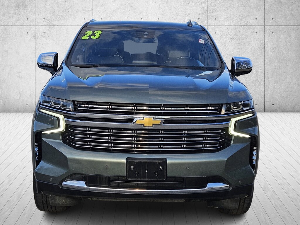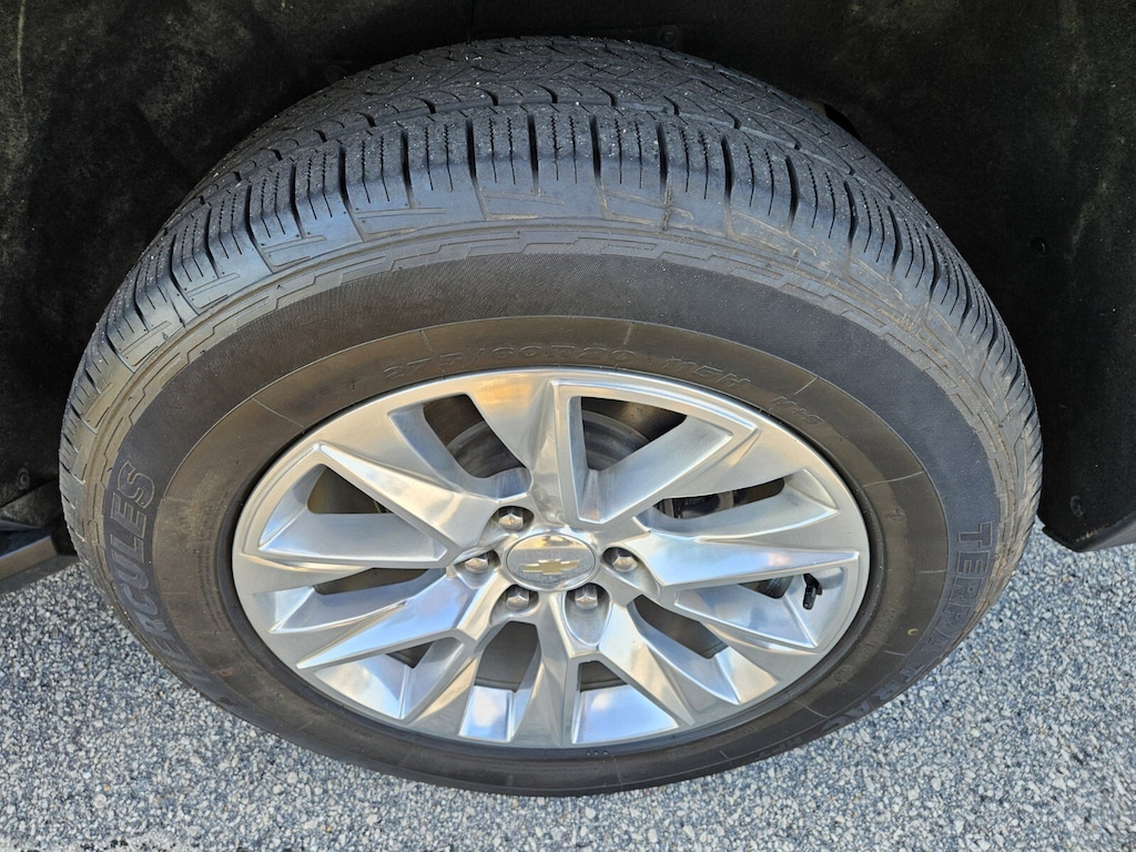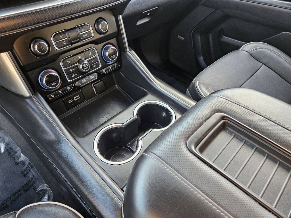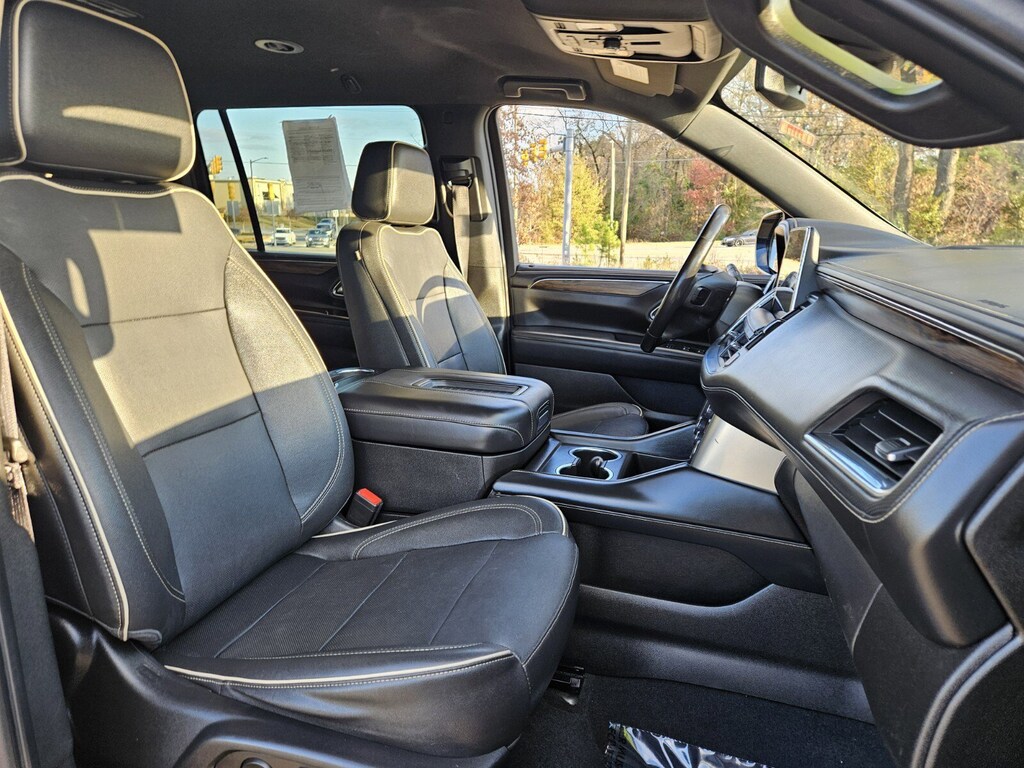 This vehicle comes equipped with License Plate Front Mounting Package, Preferred Equipment Group 1LZ (1st & 2nd Row Color-Keyed Carpeted Floor Mats, 2-Speed Active Electronic AutoTrac Transfer Case, 3rd Row 60/40 Power-Folding Split-Bench, Auto-Dimming Inside Rear-View Mirror, Bose 10-Speaker Surround w/CenterPoint, Bright Front & Rear Door Sill Plates, Chrome Door Handles w/Body-Color Strip, Chrome Mirror Caps, Color-Keyed Carpeting Floor Covering, Driver & Front Outboard Passenger Airbags, Dual Exhaust System, Enhanced Driver Information Center, Floor Console, Hands-Free Rear Power Programmable Liftgate, Heated & Ventilated Driver & Front Passenger Seats, Heated 2nd Row Outboard Seats, Heated Driver & Front Passenger Seats, Heated Steering Wheel, Hill Descent Control, Infotainment Display, Lane Change Alert w/Side Blind Zone Alert, LED Daytime Running Lamps, Memory Settings, Outside Heated Power-Adjustable Mirrors, Power Release 2nd Row Bucket Seats, Power Tilt & Telescopic Steering Column, Rear Cross Traffic Alert, Remote Start, Safety Alert Seat, SiriusXM Radio w/360L, Universal Home Remote, Wireless Charging, and Wrapped Steering Wheel), Navigation System, 10 Speakers, 20" x 9" Polished Aluminum Wheels, 3.23 Rear Axle Ratio, 3rd row seats: split-bench, 4-Wheel Disc Brakes, ABS brakes, Adaptive suspension, Air Conditioning, Alloy wheels, AM/FM radio: SiriusXM with 360L, Apple CarPlay/Android Auto, Auto High-beam Headlights, Auto-dimming door mirrors, Auto-dimming Rear-View mirror, Auto-leveling suspension, Automatic temperature control, Brake assist, Bumpers: body-color, Compass, Delay-off headlights, Driver door bin, Driver vanity mirror, Dual front impact airbags, Dual front side impact airbags, Electronic Stability Control, Emergency communication system: OnStar and Chevrolet connected services capable, Four wheel independent suspension, Front anti-roll bar, Front Bucket Seats, Front Center Armrest, Front dual zone A/C, Front reading lights, Fully automatic headlights, Garage door transmitter, Heated door mirrors, Heated front seats, Heated rear seats, Heated steering wheel, Illuminated entry, Low tire pressure warning, Magnetic Ride Control Suspension, Memory seat, Not Equip w/Ventilated Seat Cushion Blower Motor, Not Equipped w/4-Way Driver & Fr Pass Pwr Lumbar, Occupant sensing airbag, Outside temperature display, Overhead airbag, Overhead console, Panic alarm, Passenger door bin, Passenger vanity mirror, Perforated Leather Seating Surfaces, Power door mirrors, Power drive