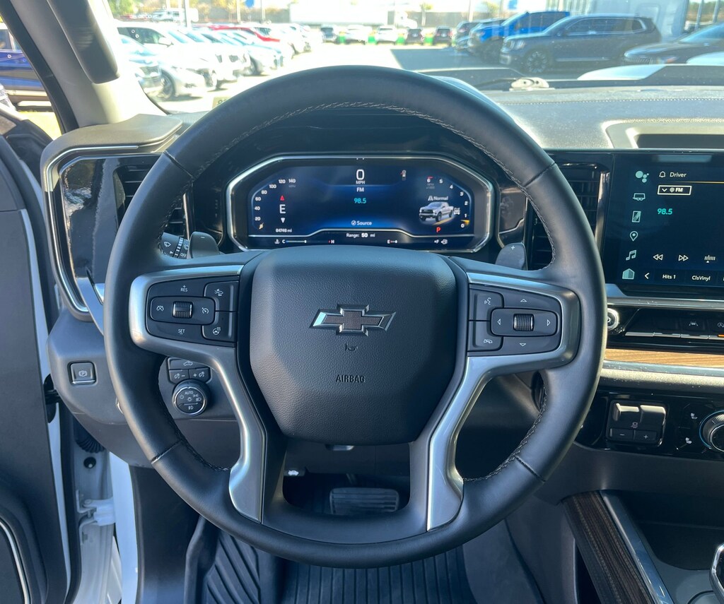 This vehicle comes equipped with : Convenience Package (10-Way Power Driver Seat w/Lumbar, 120-Volt Bed Mounted Power Outlet, 120-Volt Interior Power Outlet, Dual Rear USB Ports (Charge Only), Dual-Zone Automatic Climate Control, Electric Rear-Window Defogger, Heated Driver & Front Outboard Passenger Seats, Heated Steering Wheel, Keyless Open & Start, Remote Vehicle Starter System, Theft Deterrent System (Unauthorized Entry), and Wrapped Steering Wheel), Preferred Equipment Group 2LT (12.3" Multicolor Reconfigurable Digital Display, 6-Speaker Audio System, All-Weather Floor Liner (LPO) (AAK), Auto-Locking Rear Differential, Bluetooth® For Phone, Chevrolet Connected Access Capable, Color-Keyed Carpeting Floor Covering, Deep-Tinted Glass, Electrical Steering Column Lock, Electronic Cruise Control, EZ Lift Power Lock & Release Tailgate, Front LED Fog Lamps, HD Rear Vision Camera, Heated Power-Adjustable Outside Mirrors, High Gloss Black Mirror Caps, Inside Rear-View Mirror w/Tilt, LED Cargo Area Lighting, OnStar & Chevrolet Connected Services Capable, Performance Red Recovery Hooks, Power Front Windows w/Driver Express Up/Down, Power Front Windows w/Passenger Express Down, Power Rear Windows w/Express Down, Rear 60/40 Folding Bench Seat (Folds Up), SiriusXM w/360L, Standard Tailgate, Steering Wheel Audio Controls, and Wi-Fi Hot Spot Capable), Protection Package (Chevytec Spray-On Black Bedliner and Rear Wheelhouse Liners), Suspension Package (Heavy-Duty Air Filter and Hill Descent Control), Trailering Package (Hitch Guidance), 10-Speed Automatic, 4WD, Black Cloth, 170 Amp Alternator, 2 USB Data Ports, 220 Amp Alternator, 4-Wheel Disc Brakes, 40/20/40 Front Split-Bench Seat, 6 Speakers, 6" Rectangular Black Tubular Assist Steps (LPO), ABS brakes, Air Conditioning, Alloy wheels, AM/FM radio: SiriusXM with 360L, Auto High-beam Headlights, Automatic Emergency Braking, Automatic temperature control, Auxiliary External Transmission Oil Cooler, Brake assist, Cloth Seat Trim, Compass, Delay-off headlights, Driver door bin, Driver vanity mirror, Dual Exhaust w/Polished Outlets, Dual front impact airbags, Dual front side impact airbags, Electronic Stability Control, Electronic Transmission Range Selector Shifter, External Engine Oil Cooler, Floor Mounted Center Console, Following Distance Indicator, Forward Collision Alert, Front anti-roll bar, Front Bucket Seats, Front Center Armrest w/Storage, Front dual zone A/C, Front fog lights, Front Pedestrian Braking, Front reading lights, Front wheel independent suspension, Fully automatic headlights, Heated door mirrors, Heated front seats, Heated steering wheel, Illuminated entry, Integrated Trailer Brake Controller, IntelliBeam Automatic High Beam On/Off, Lane Keep Assist w/Lane Departure Warning, Low tire pressure warning, Occupant sensing airbag, Outside temperature display, Overhead airbag, Overhead console, Panic alarm, Passenger door bin, Passenger vanity mirror, Power door mirrors, Power driver seat, Power steering, Power windows, Premium audio system: Chevrolet Infotainment 3 Premium, Radio data system, Radio: Chevrolet Infotainment 3 Premium System, Rear reading lights, Rear step bumper, Rear window defroster, Remote keyless entry, Security system, Single Outlet Exhaust, Speed control, Speed-sensing steering, Split folding rear seat, Steering wheel mounted audio controls, Tachometer, Telescoping steering wheel, Tilt steering wheel, Traction control, Trip computer, Variably intermittent wipers, Voltmet