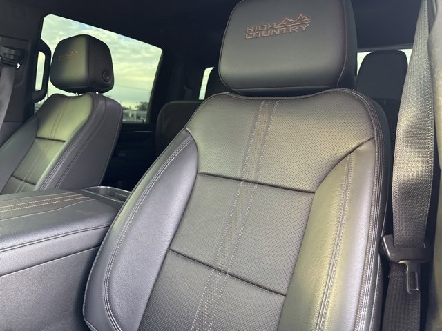This vehicle comes equipped with: Suspension Package, Up-Level Rear Seat w/Storage Package, 10-Speed Automatic, 4WD, Jet Black Leather, 10-Way Power Driver Seat Adjuster w/Lumbar, 10-Way Power Passenger Seat Adjuster w/Lumbar, 120-Volt Bed Mounted Power Outlet, 120-Volt Interior Power Outlet, 170 Amp Alternator, 3.73 Rear Axle Ratio, 4-Wheel Disc Brakes, 6 Rectangular Chromed Tubular Assist Steps, 7 Speakers, ABS brakes, Air Conditioning, Alloy wheels, AM/FM radio: SiriusXM with 360L, Apple CarPlay/Android Auto, Auto High-beam Headlights, Auto-dimming door mirrors, Auto-Dimming Inside Rear-View Mirror, Auto-dimming Rear-View mirror, Automatic temperature control, Bed View Camera w/2 Trailer Camera Provisions, Bluetooth® For Phone, Bodyside moldings, Bose Premium 7-Speaker Sound System, Brake assist, Bumpers: body-color, Chevrolet Connected Access Capable, Chevytec Spray-On Black Bedliner, Chrome Door Handles, Chrome Mirror Caps, Color-Keyed Carpeting Floor Covering, Compass, Compass Located In Instrument Cluster, Deep-Tinted Glass, Delay-off headlights, Driver door bin, Driver Memory, Driver vanity mirror, Dual front impact airbags, Dual front side impact airbags, Durabed Pickup Bed, Electric Rear-Window Defogger, Electronic Stability Control, Floor-Mounted Center Console, Front anti-roll bar, Front Bucket Seats, Front Carpeted Floor Mats, Front Center Armrest, Front Chrome Recovery Hooks, Front dual zone A/C, Front fog lights, Front LED Fog Lamps, Front Rain-Sensing Wipers, Front reading lights, Front wheel independent suspension, Fully automatic headlights, Garage door transmitter, Genuine wood console insert, Genuine wood dashboard insert, Genuine wood door panel insert, Heated 2nd Row Outboard Seats, Heated door mirrors, Heated Driver & Front Outboard Passenger Seats, Heated front seats, Heated rear seats, Heated Steering Wheel, Heated steering wheel, Heavy-Duty 80 Amp-Hr Battery, Hitch Guidance w/Hitch View, Illuminated entry, In-Vehicle Trailering App System, Keyless Open & Start, LED Cargo Area Lighting, Low tire pressure warning, Manual Tilt-Wheel/Telescoping Steering Column, Memory seat, Occupant sensing airbag, OnStar & Chevrolet Connected Services Capable, Outside temperature display, Overhead airbag, Overhead console, Panic alarm, Passenger door bin, Passenger vanity mirror, Perforated Leather Seating Surfaces, Polished Exhaust Tip, Power Door Locks, Power door mirrors, Power driver seat, Power Front Windows w/Driver Express Up/Down, Power Front Windows w/Passenger Express Up/Down, Power passenger seat, Power Rear Windows w/Express Down, Power Sliding Rear Window w/Defogger, Power steering, Power Tailgate, Power windows, Premium audio system: Chevrolet Infotainment 3 Premium, Push Button Start, Radio: Chevrolet Infotainment 3 Premium System, Rain sensing wipers, Rear Carpeted Floor Mats, Rear Cross Traffic Alert, Rear reading lights, Rear seat center armrest, Rear step bumper, Rear Wheelhouse Liners, Rear window defroster, Remote keyless entry, Remote Vehicle Starter System, Security system, SiriusXM w/360L, Speed control, Speed-sensing steering, Split folding rear seat, Standard Tailgate, Steering Wheel Audio Controls, Steering wheel mounted audio controls, Steering Wheel Mounted Electronic Cruise Control, Tachometer, Telescoping steering wheel, Tilt steering wheel, Traction control, Trailer Camera Provisions, Trailer Side Blind Zone Alert, Trip computer, Turn signal indicator mirrors, Ultrasonic Front & Rear Park Assist, Unauthorized Entry Theft-Deterrent System, Universal Home Remote, Variably intermittent wipers, Ventilated Driver & Front Passenger Seats, Ventilated front seats, Voltmeter, Wheels: 20 8-Spoke Polished, Wi-Fi Hotspot Capable, Wireless Charging, and Wrapped Steering Wheel.