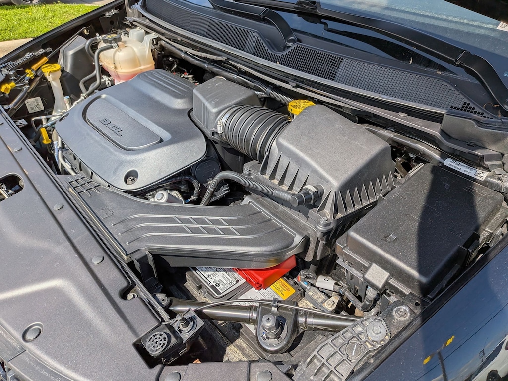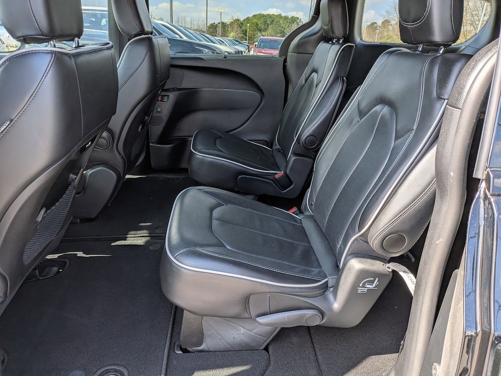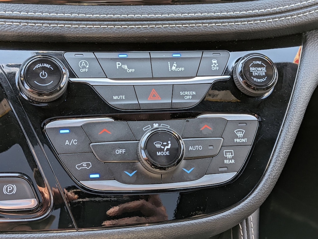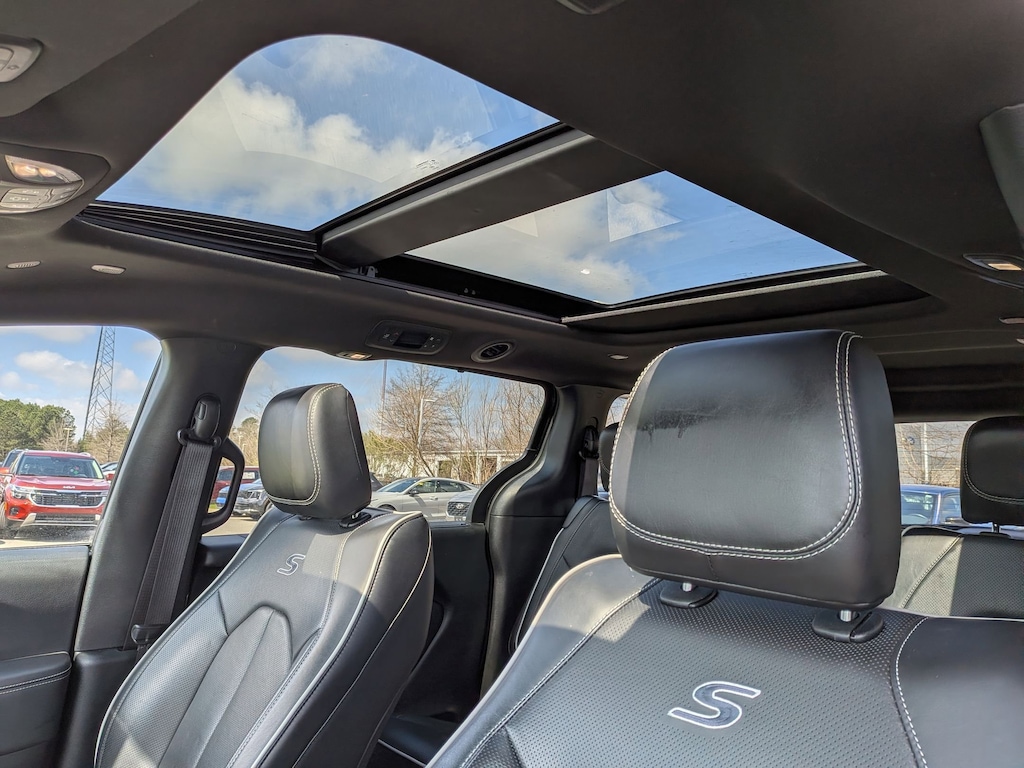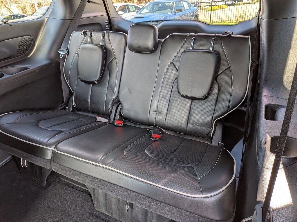 This vehicle comes equipped with : Quick Order Package 27P, 13 Speakers, 3.25 Axle Ratio, 3rd row seats: split-bench, 4-Wheel Disc Brakes, ABS brakes, Air Conditioning, Alloy wheels, AM/FM radio: SiriusXM 360L, Apple CarPlay/Android Auto, Audio memory, Auto-dimming Rear-View mirror, Automatic temperature control, Black Seats, Brake assist, Bumpers: body-color, Compass, Delay-off headlights, Driver door bin, Driver vanity mirror, Driver's Seat Mounted Armrest, Dual front impact airbags, Dual front side impact airbags, Electronic Stability Control, Emergency communication system: Chrysler Connect, Four wheel independent suspension, Front anti-roll bar, Front Bucket Seats, Front dual zone A/C, Front fog lights, Front reading lights, Fully automatic headlights, Garage door transmitter, Heated door mirrors, Heated front seats, Heated rear seats, Heated steering wheel, Illuminated entry, Integrated Active Noise Cancellation, Knee airbag, Low tire pressure warning, Manufacturer's Statement of Origin, Memory seat, Nappa Leather Bucket Seats with S Logo, Navigation System, Occupant sensing airbag, Outside temperature display, Overhead airbag, Overhead console, Panic alarm, ParkView Rear Back-Up Camera, Passenger door bin, Passenger seat mounted armrest, Passenger vanity mirror, Power door mirrors, Power driver seat, Power Liftgate, Power moonroof, Power passenger seat, Power steering, Power windows, Radio data system, Radio: Uconnect 5 Nav with 10.1" Display, Rain sensing wipers, Rear air conditioning, Rear reading lights, Rear window defroster, Rear window wiper, Reclining 3rd row seat, Remote keyless entry, Roof rack, Security system, Speed control, Split folding rear seat, Spoiler, Steering wheel mounted audio controls, Tachometer, Telescoping steering wheel, Tilt steering wheel, Touring Suspension, Traction control, Trip computer, Turn signal indicator mirrors, Variably intermittent wipers, Ventilated front seats, Voltmeter, and Wheels: 20" x 7.5" S-Model Aluminum Design 1.