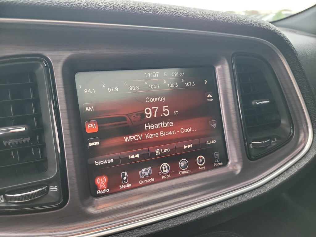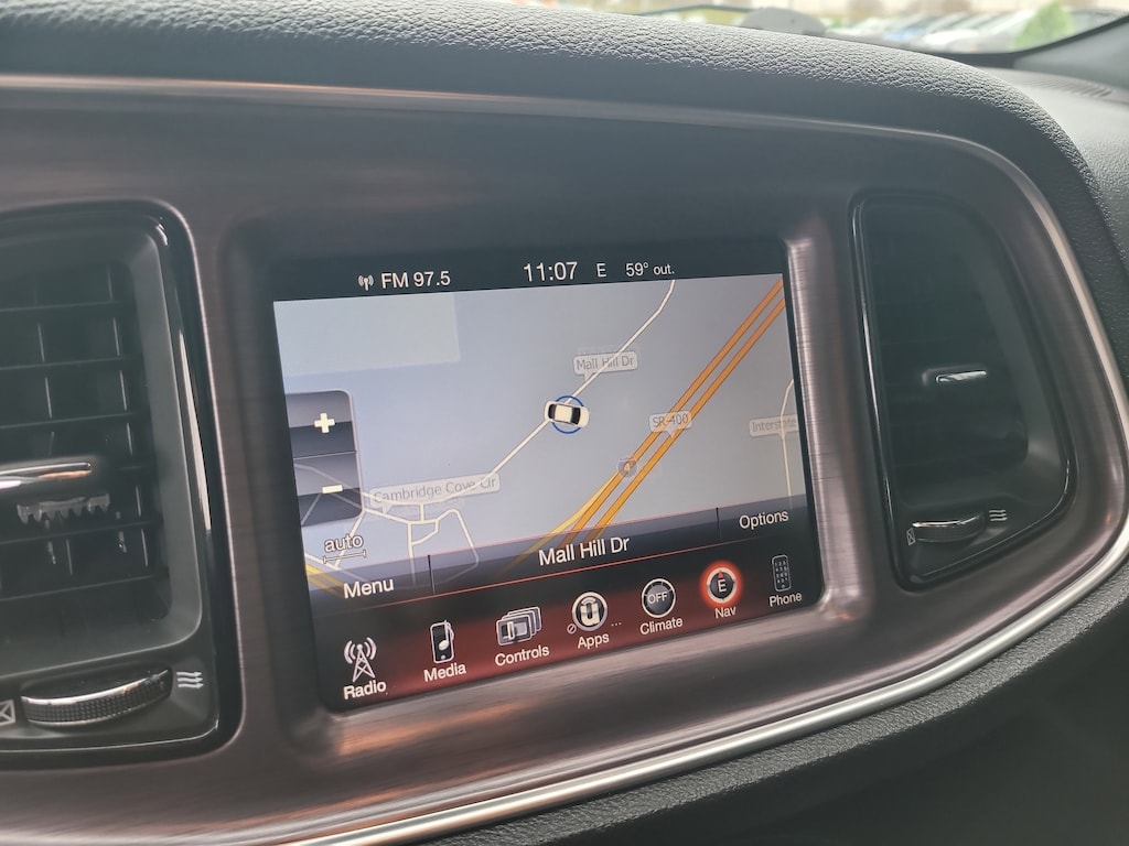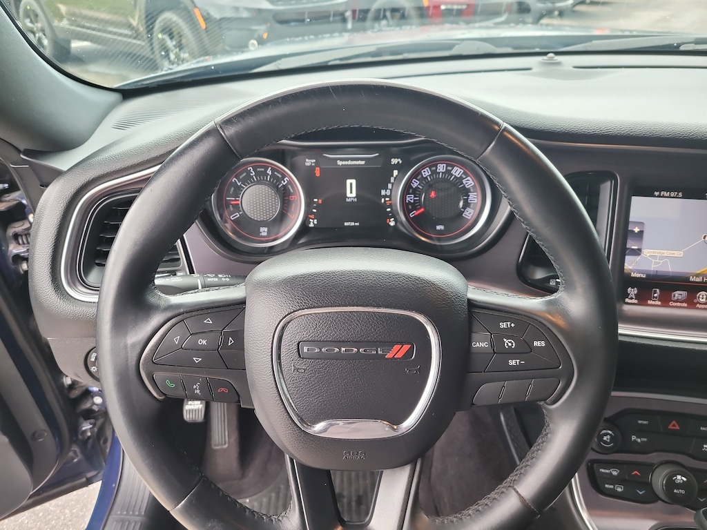 THIS VEHCILE INCLUDES THE FOLLOWING OPTIONS AND FEATURES: Driver Convenience Group, Quick Order Package 28H R/T (Trunklid Spoiler), Sound Group (276 Watt Amplifier), 4-Wheel Disc Brakes, 6 Speakers, ABS brakes, Air Conditioning, Alloy wheels, AM/FM radio, Anti-Lock Brakes, Anti-whiplash front head restraints, Auto-dimming Rear-View mirror, Automatic temperature control, Brake assist, Bright Pedals, Bumpers: body-color, Compass, Delay-off headlights, Driver door bin, Driver vanity mirror, Dual front impact airbags, Dual front side impact airbags, Electronic Stability Control, Four wheel independent suspension, Front anti-roll bar, Front Bucket Seats, Front Center Armrest, Front dual zone A/C, Front fog lights, Front reading lights, Fully automatic headlights, Heated door mirrors, Houndstooth Cloth Sport Seats, Illuminated entry, Integrated Voice Command w/Bluetooth, Leather Shift Knob, Low tire pressure warning, Media Hub (SD, USB, AUX Ports), Nav Capable! See Dealer For Details, Outside temperature display, Overhead airbag, Overhead console, Panic alarm, Passenger door bin, Passenger vanity mirror, Power door mirrors, Power driver seat, Power steering, Power Sunroof, Power windows, Radio data system, Radio: Uconnect 5.0, Radio: Uconnect 8.4 NAV, Rear anti-roll bar, Rear reading lights, Rear seat center armrest, Rear window defroster, Remote keyless entry, Security system, SiriusXM Satellite Radio, Speed control, Speed-sensing steering, Split folding rear seat, Spoiler, Steering wheel mounted audio controls, Tachometer, Telescoping steering wheel, Tilt steering wheel, Traction control, Trip computer, Variably intermittent wipers, Wheels: 20" x 8.0" Premium Painted Aluminum, and Wheels: 20" x 9.0" Forged/Painted Aluminum.