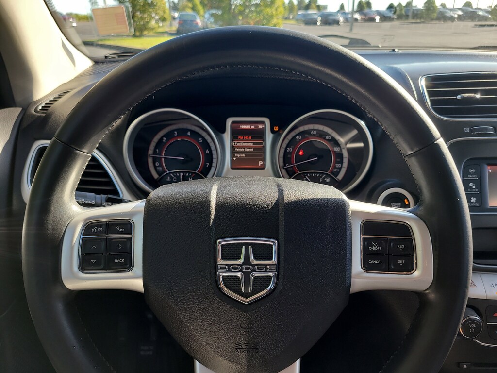 This Vehicle is nicely equipped with the following features: Blacktop Package (Black Headlamp Bezels, Gloss Black Exterior Mirrors, Gloss Black Grille, Gloss Black Rear Fascia Applique, Touring Suspension, and Wheels: 17" x 6.5" Fully Painted Black), Connectivity Group (Leather Wrapped Steering Wheel and Uconnect Voice Command w/Bluetooth), Quick Order Package 22A, 1-Year SiriusXM Radio Service, 17" Wheel Covers, 17" x 6.5" Steel Wheels, 3rd row seats: bench, 4-Wheel Disc Brakes, 4.28 Axle Ratio, 4.3" Touch Screen Display, 6 Speakers, ABS brakes, Air Conditioning, AM/FM radio, Anti-whiplash front head restraints, Audio Jack Input for Mobile Devices, Auto-dimming Rear-View mirror, AutoStick Automatic Transmission, Brake assist, Bumpers: body-color, CD player, Delay-off headlights, Dodge Performance Body Color Fascias, Driver door bin, Driver vanity mirror, Dual front impact airbags, Dual front side impact airbags, Electronic Stability Control, Four wheel independent suspension, Front anti-roll bar, Front Bucket Seats, Front Center Armrest, Front dual zone A/C, Front fog lights, Front reading lights, Fully automatic headlights, Heated door mirrors, Illuminated entry, Knee airbag, Low tire pressure warning, Normal Duty Suspension, Occupant sensing airbag, Outside temperature display, Overhead airbag, Panic alarm, ParkView Rear Back-Up Camera, Passenger door bin, Power door mirrors, Power steering, Power windows, Premium Cloth Low-Back Bucket Seats, Radio: 4.3, Radio: 4.3S, Rear air conditioning, Rear anti-roll bar, Rear reading lights, Rear seat center armrest, Rear window defroster, Rear window wiper, Reclining 3rd row seat, Remote keyless entry, Remote USB Port, Roof rack: rails only, Sirius Satellite Radio, Speed control, Speed-sensing steering, Speed-Sensitive Wipers, Split folding rear seat, Steering wheel mounted audio controls, Tachometer, Telescoping steering wheel, Tilt steering wheel, TIP Start, Traction control, Trip computer, and Variably intermittent wipers.