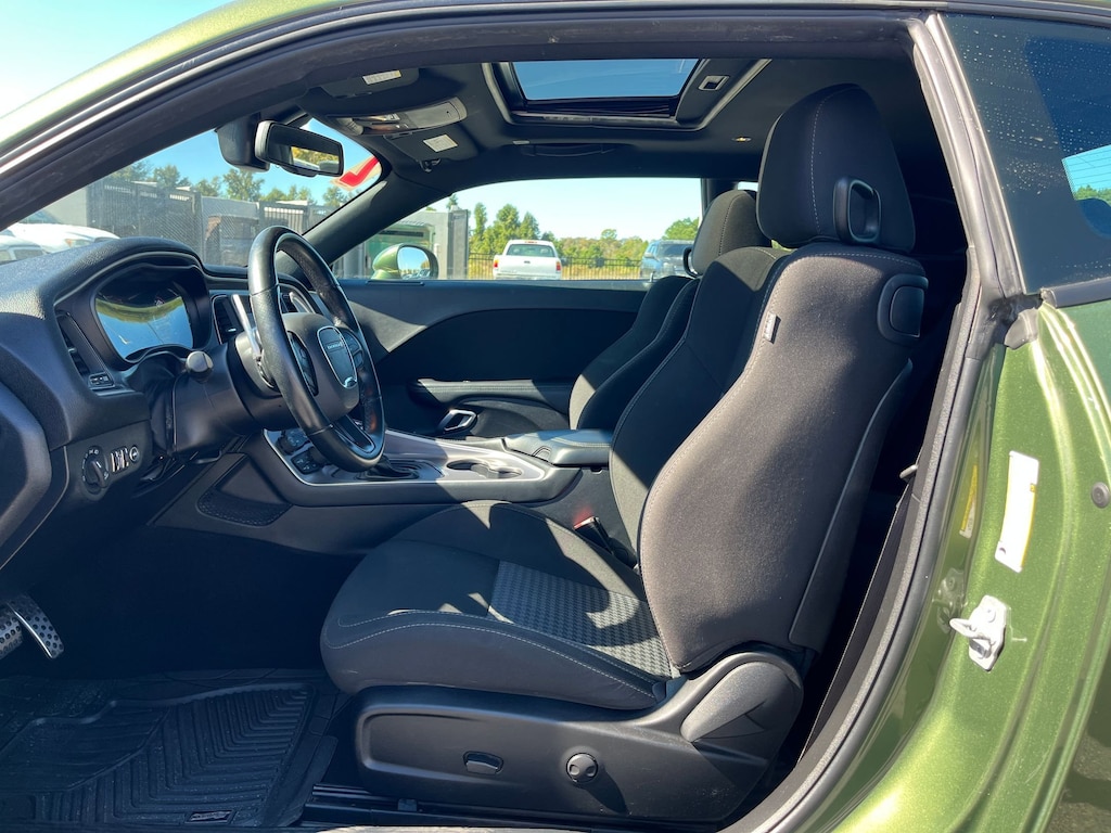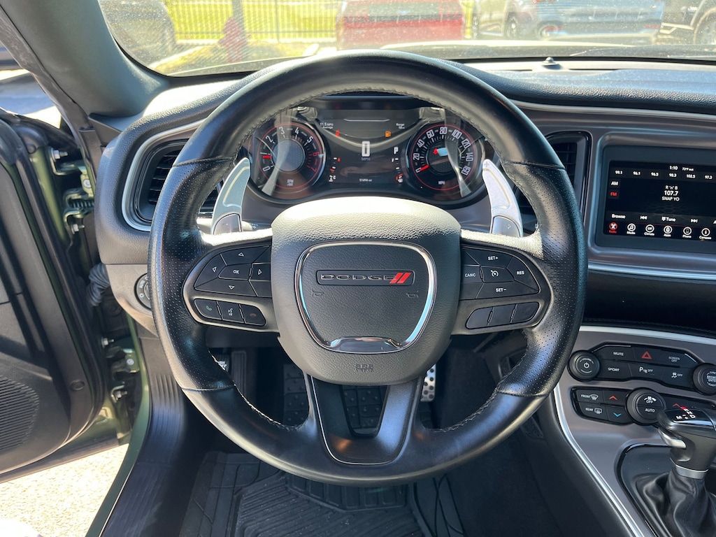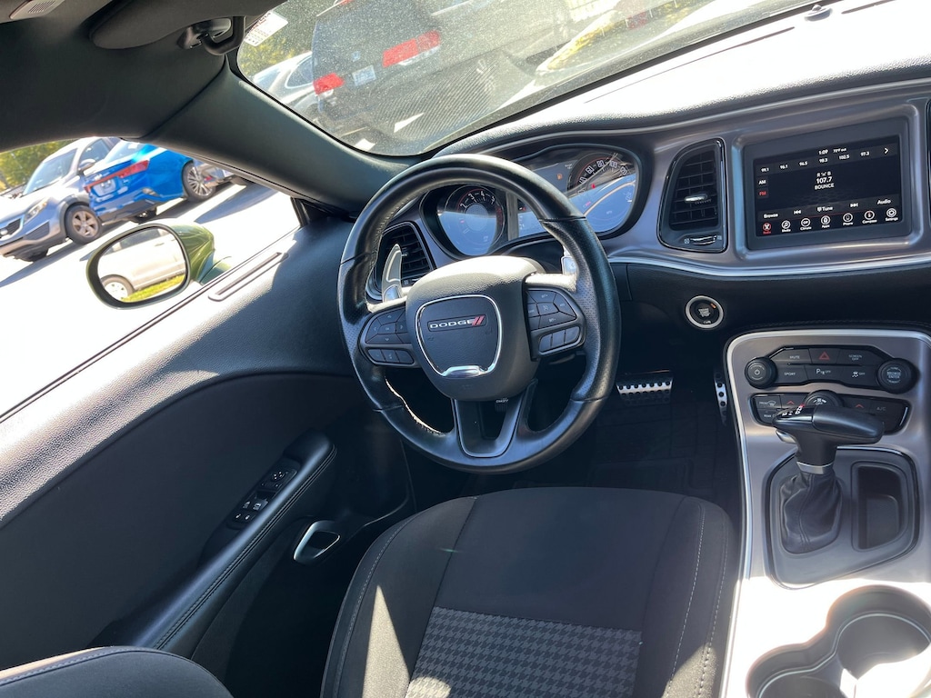 This vehicle comes equipped with : Blacktop Package (Rear Black Spoiler and Wheels: 20" x 8.0" Black Noise Painted), Quick Order Package 28H, 4-Wheel Disc Brakes, 6 Speakers, ABS brakes, Air Conditioning, Alloy wheels, AM/FM radio, Anti-whiplash front head restraints, Apple CarPlay, Apple CarPlay/Android Auto, Auto-dimming Rear-View mirror, Automatic temperature control, Brake assist, Bumpers: body-color, Compass, Compass Gauge, Delay-off headlights, Driver door bin, Driver vanity mirror, Dual front impact airbags, Dual front side impact airbags, Electronic Stability Control, Four wheel independent suspension, Front anti-roll bar, Front Bucket Seats, Front Center Armrest, Front dual zone A/C, Front fog lights, Front License Plate Bracket, Front reading lights, Fully automatic headlights, Garage door transmitter, Google Android Auto, GPS Antenna Input, Heated door mirrors, Houndstooth Cloth Performance Seats, Illuminated entry, Integrated Center Stack Radio, Integrated Voice Command w/Bluetooth, Leather Shift Knob, Low tire pressure warning, Media Hub (2 USB, AUX), Outside temperature display, Overhead airbag, Overhead console, Panic alarm, ParkView Rear Back-Up Camera, Passenger door bin, Passenger vanity mirror, Power door mirrors, Power driver seat, Power steering, Power Sunroof, Power windows, Radio data system, Radio: Uconnect 4 w/7" Display, Rear anti-roll bar, Rear reading lights, Rear seat center armrest, Rear window defroster, Remote keyless entry, Security system, Speed control, Speed-sensing steering, Split folding rear seat, Spoiler, Sport steering wheel, Steering wheel mounted audio controls, Tachometer, Telescoping steering wheel, Tilt steering wheel, Traction control, Trip computer, USB Host Flip, Variably intermittent wipers, and Wheels: 20" x 8.0" Satin Carbon Aluminum.