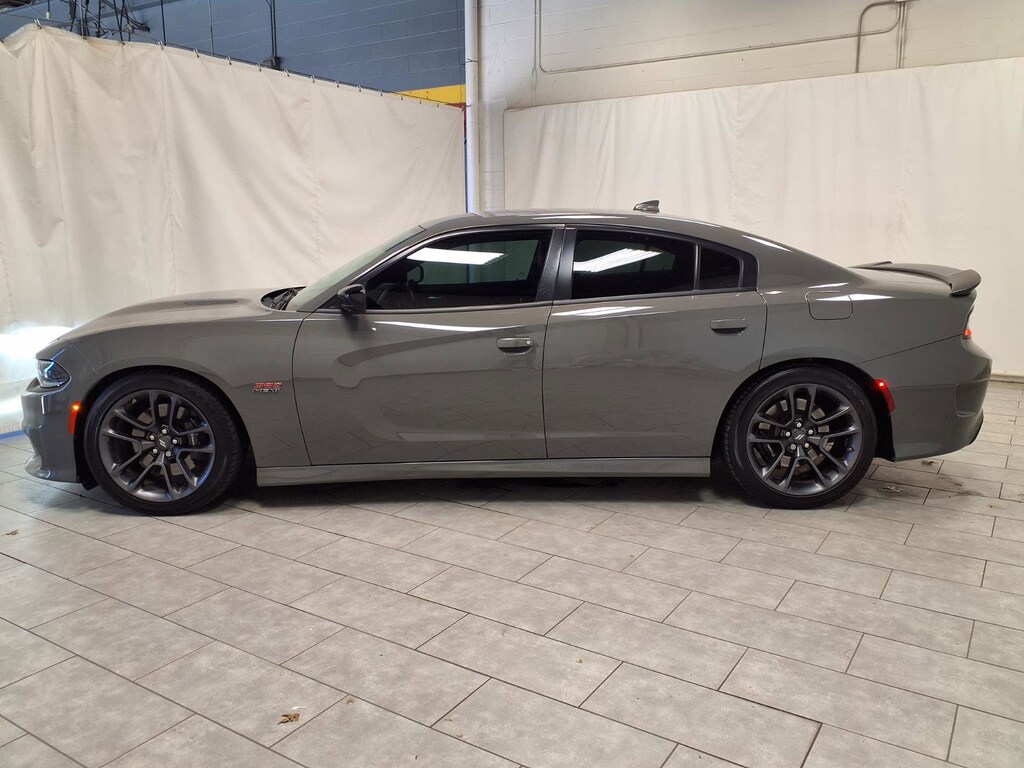 This vehicle comes equipped with: Plus Group (Auto Adjust In Reverse Exterior Mirrors, Auto-Dimming Exterior Driver Mirror, Black-Edged Premium Floormats, Blind Spot & Cross Path Detection, Blind Spot Memory/Power/Heat Mirror, Driver & Passenger Lower LED Lamps, Exterior Mirrors Courtesy Lamps, Exterior Mirrors w/Heating Element, Front Overhead LED Lighting, Heated Front Seats, Power 2-Way Driver Lumbar Adjust, Power 2-Way Passenger Lumbar Adjust, Power Front Driver/Passenger Seats, Power Tilt/Telescope Steering Column, Premium-Stitched Dash Panel, Radio/Driver Seat/Mirrors Memory, Rear Armrest w/Cupholder Seat, Scat Pack Logo Nappa/Alcantara Seat, and Ventilated Front Seats), Quick Order Package 21W Scat Pack, Technology Group (Adaptive Cruise Control w/Stop, Advanced Brake Assist, Auto High Beam Headlamp Control, Full Speed FWD Collision Warn Plus, Lane Departure Warning Plus, and Rain Sensitive Windshield Wipers), Black Artificial Leather, 1-Yr SiriusXM Guardian Trial, 2-Piece Shark Fin Antenna, 4-Wheel Disc Brakes, 4G LTE Wi-Fi Hot Spot, 6 Speakers, 8.4 Touchscreen Display, ABS brakes, Air Conditioning, Alloy wheels, AM/FM radio: SiriusXM, Anti-whiplash front head restraints, Apple CarPlay, Apple CarPlay/Android Auto, Auto-dimming Rear-View mirror, Automatic temperature control, Brake assist, Bumpers: body-color, Cloth Performance Seats w/Heat, Compass, Delay-off headlights, Driver door bin, Driver vanity mirror, Dual front impact airbags, Dual front side impact airbags, Electronic Stability Control, Emergency communication system: SiriusXM Guardian, For Details, Visit DriveUconnect.com, Four wheel independent suspension, Front anti-roll bar, Front Bucket Seats, Front Center Armrest, Front dual zone A/C, Front fog lights, Front License Plate Bracket, Front reading lights, Fully automatic headlights, Garage door transmitter: HomeLink, Google Android Auto, GPS Antenna Input, HD Radio, Heated door mirrors, Heated front seats, Heated steering wheel, Illuminated entry, Integrated Center Stack Radio, Integrated Voice Command w/Bluetooth, Knee airbag, Leather Shift Knob, Low tire pressure warning, Media Hub (2 USB, AUX), Occupant sensing airbag, Outside temperature display, Overhead airbag, Overhead console, Panic alarm, ParkView Rear Back-Up Camera, Passenger door bin, Passenger vanity mirror, Power door mirrors, Power driver seat, Power steering, Power windows, Radio: Uconnect 4C w/8.4 Display, Rear anti-roll bar, Rear reading lights, Rear seat center armrest, Rear window defroster, Remote keyless entry, Security system, Speed control, Speed-Sensitive Wipers, Split folding rear seat, Spoiler, Sport steering wheel, Steering wheel mounted audio controls, Tachometer, Telescoping steering wheel, Tilt steering wheel, Traction control, Trip computer, USB Host Flip, Variably intermittent wipers, and Wheels: 20 x 9 Lo Gloss Granite CrystaL.