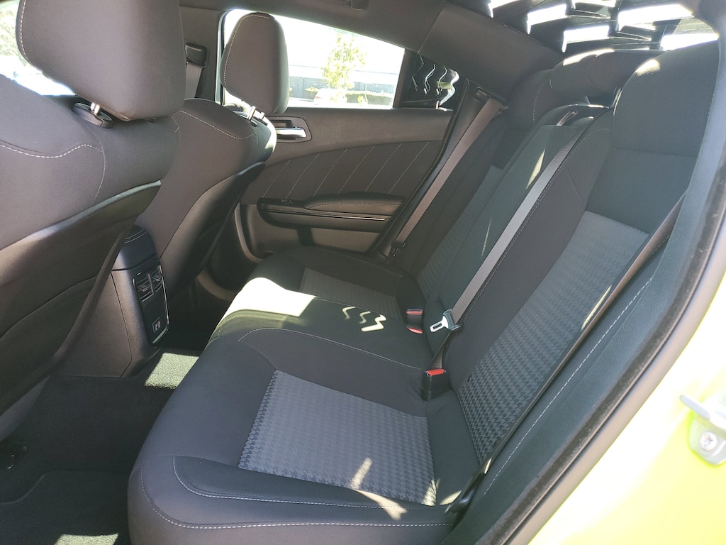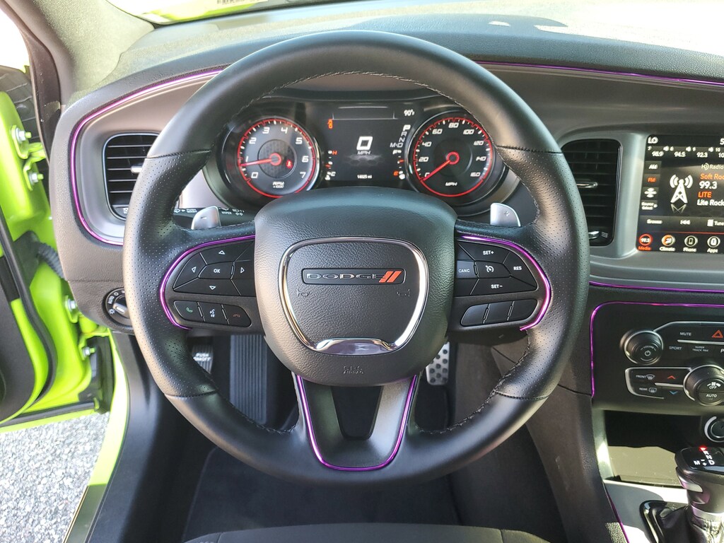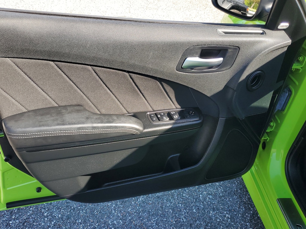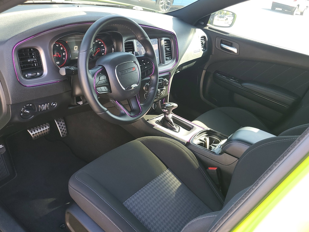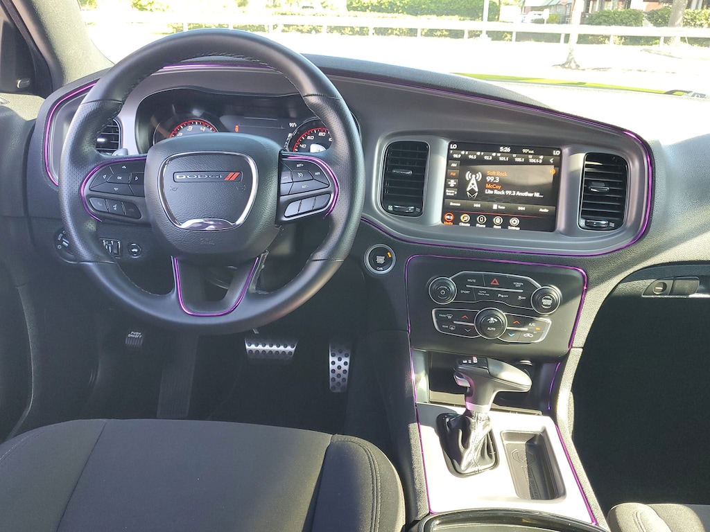 This Vehicle comes equipped with: Blacktop Package (Black 1-Piece Performance Spoiler, Black Dodge Grille Badge, Blacktop R/T Badge, Gloss Black I/P Cluster Trim Rings, Rhombi 2-Pc Wheel Center Cap, Satin Black Charger Decklid Badge, Satin Black Dodge Tail Lamp Badge, and Wheels: 20" x 8" Black Noise Painted), Quick Order Package 26N, Black Cloth, 1-Yr SiriusXM Guardian Trial, 2-Piece Shark Fin Antenna, 4-Wheel Disc Brakes, 4G LTE Wi-Fi Hot Spot, 6 Speakers, 8.4" Touchscreen Display, ABS brakes, Air Conditioning, Alloy wheels, AM/FM radio: SiriusXM, Anti-whiplash front head restraints, Apple CarPlay, Apple CarPlay/Android Auto, Auto-dimming Rear-View mirror, Automatic temperature control, Brake assist, Bumpers: body-color, Cargo Net, Cloth Performance Seats, Compass, Delay-off headlights, Driver door bin, Driver vanity mirror, Dual front impact airbags, Dual front side impact airbags, Electronic Stability Control, Emergency communication system: SiriusXM Guardian, For Details, Visit DriveUconnect.com, Four wheel independent suspension, Front anti-roll bar, Front Bucket Seats, Front Center Armrest, Front dual zone A/C, Front reading lights, Fully automatic headlights, Garage door transmitter: HomeLink, Google Android Auto, GPS Antenna Input, HD Radio, Heated door mirrors, Illuminated entry, Integrated Center Stack Radio, Integrated Voice Command w/Bluetooth, Knee airbag, Leather Shift Knob, Low tire pressure warning, Manufacturer's Statement of Origin, Media Hub (2 USB, AUX), Occupant sensing airbag, Outside temperature display, Overhead airbag, Overhead console, Panic alarm, ParkView Rear Back-Up Camera, Passenger door bin, Passenger vanity mirror, Power 2-Way Driver Lumbar Adjust, Power 8-Way Driver Seat, Power door mirrors, Power driver seat, Power steering, Power windows, Radio: Uconnect 4C w/8.4" Display, Rear anti-roll bar, Rear Armrest w/Cupholder Seat, Rear reading lights, Rear seat center armrest, Rear window defroster, Remote keyless entry, Speed control, Speed-Sensitive Wipers, Split folding rear seat, Spoiler, Sport steering wheel, Steering wheel mounted audio controls, Tachometer, Telescoping steering wheel, Tilt steering wheel, Traction control, Trip computer, USB Host Flip, Variably intermittent wipers, and Wheels: 20" x 8" Machined w/Granite PockeT.